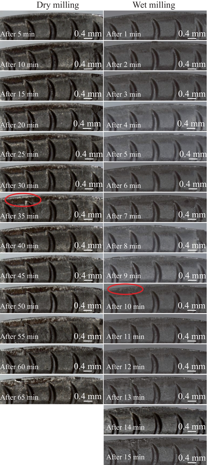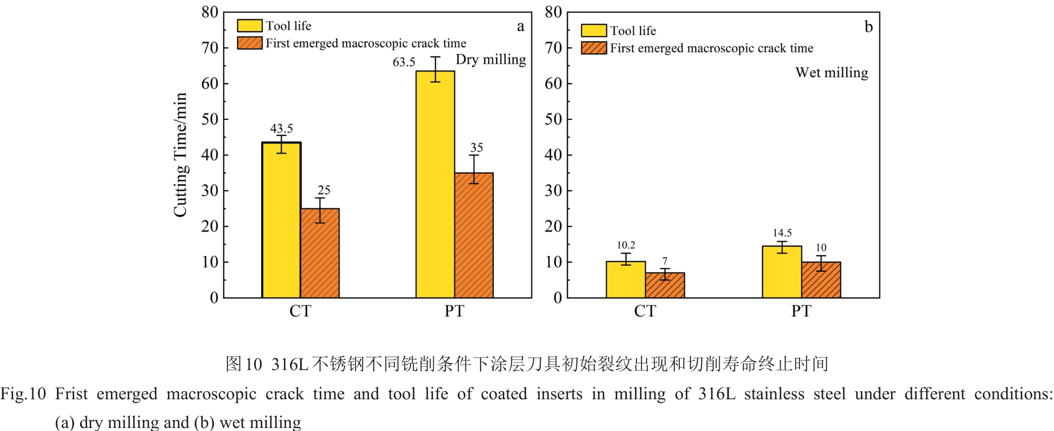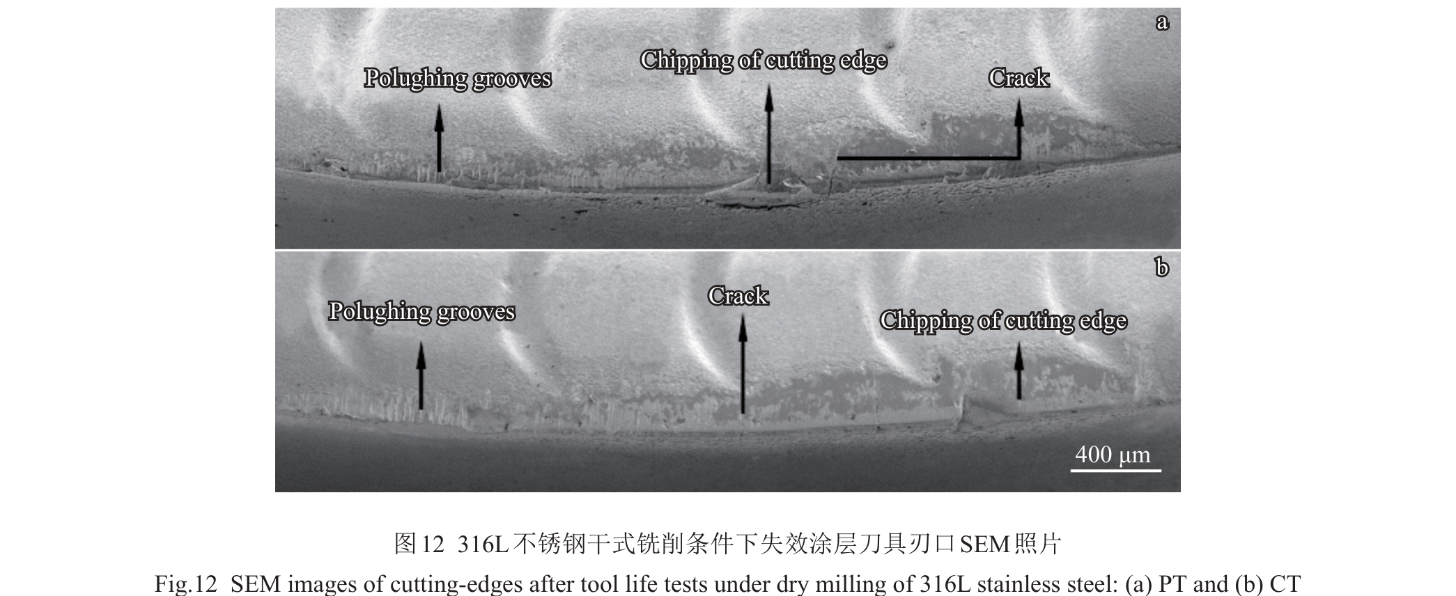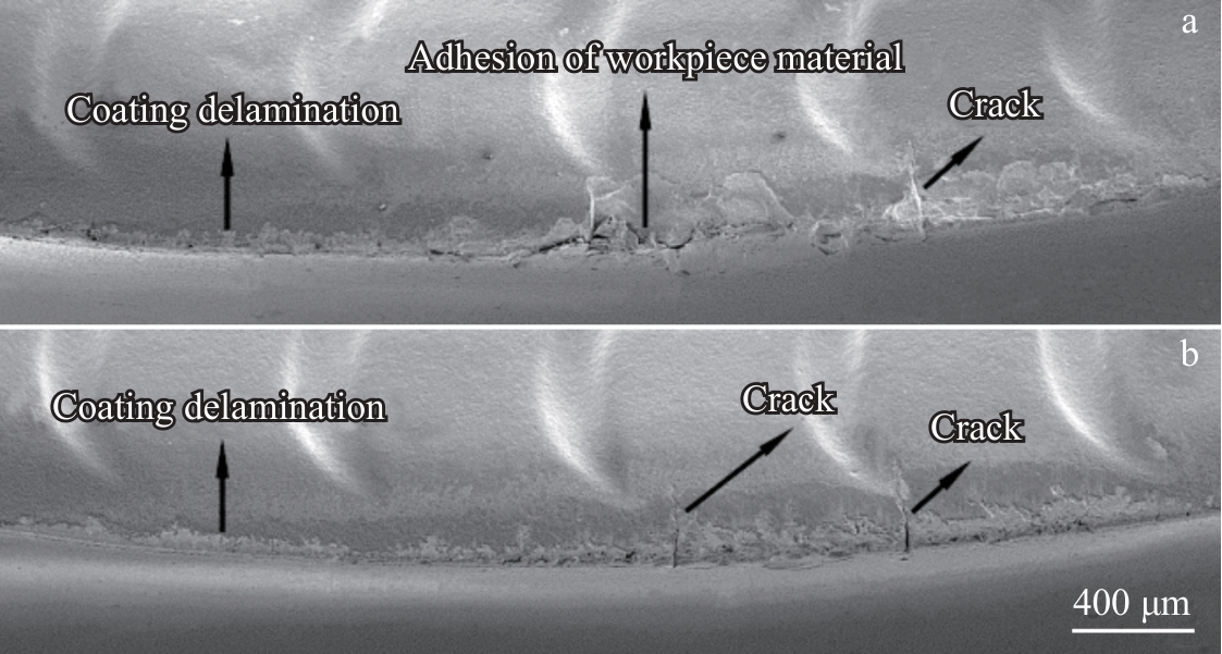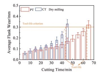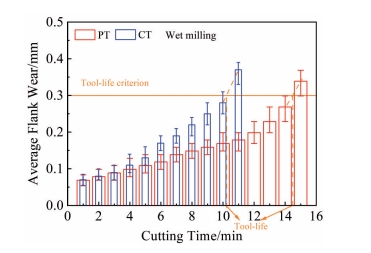 Abstract:Taking the traditional cemented carbide WC-10Co-0.6Cr3C2 (wt%) substrate as the reference object, WC-10Co-0.4TiC-0.6Cr3C2 (wt%) plate-grained cemented carbide tools were prepared by Ti induction method, and PVD-TiN/AlTiN nano multilayer composite coatings were deposited on the surfaces of the two groups of tools. The milling behavior of two coated tools in the machining process of 316L stainless steel was studied. The results show that under dry milling, the main failure mode of tools are wear and edge collapse, and the milling life of PT tool (based on the plate-grained cemented carbide) is 48% longer than that of CT tool (based on the traditional cemented carbide). Under wet milling, the main failure modes of tools are coating peeling and edge collapse, and the milling life of PT tools is 41% higher than that of CT tools. Under both dry and wet milling conditions, the first macro thermal crack time on the surface of PT tool is later than that of CT tool. PT tool has a longer wear stability period in the milling process. Its excellent ability to resist crack initiation and propagation is an important reason for the improvement in the milling life of coated tool (PT) based on plate-grained cemented carbide.
