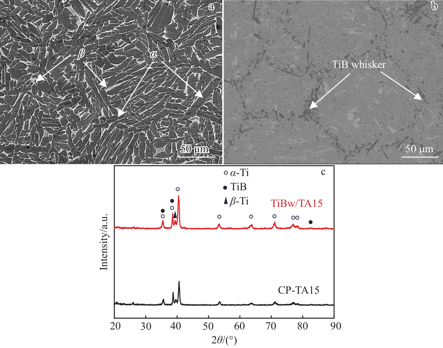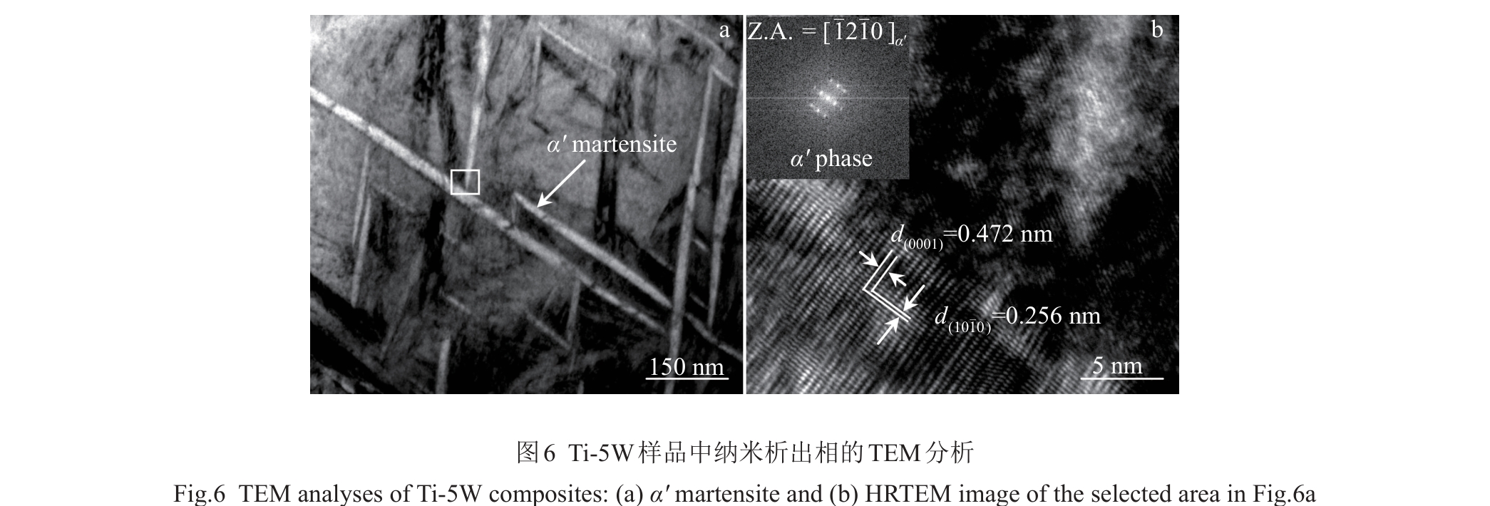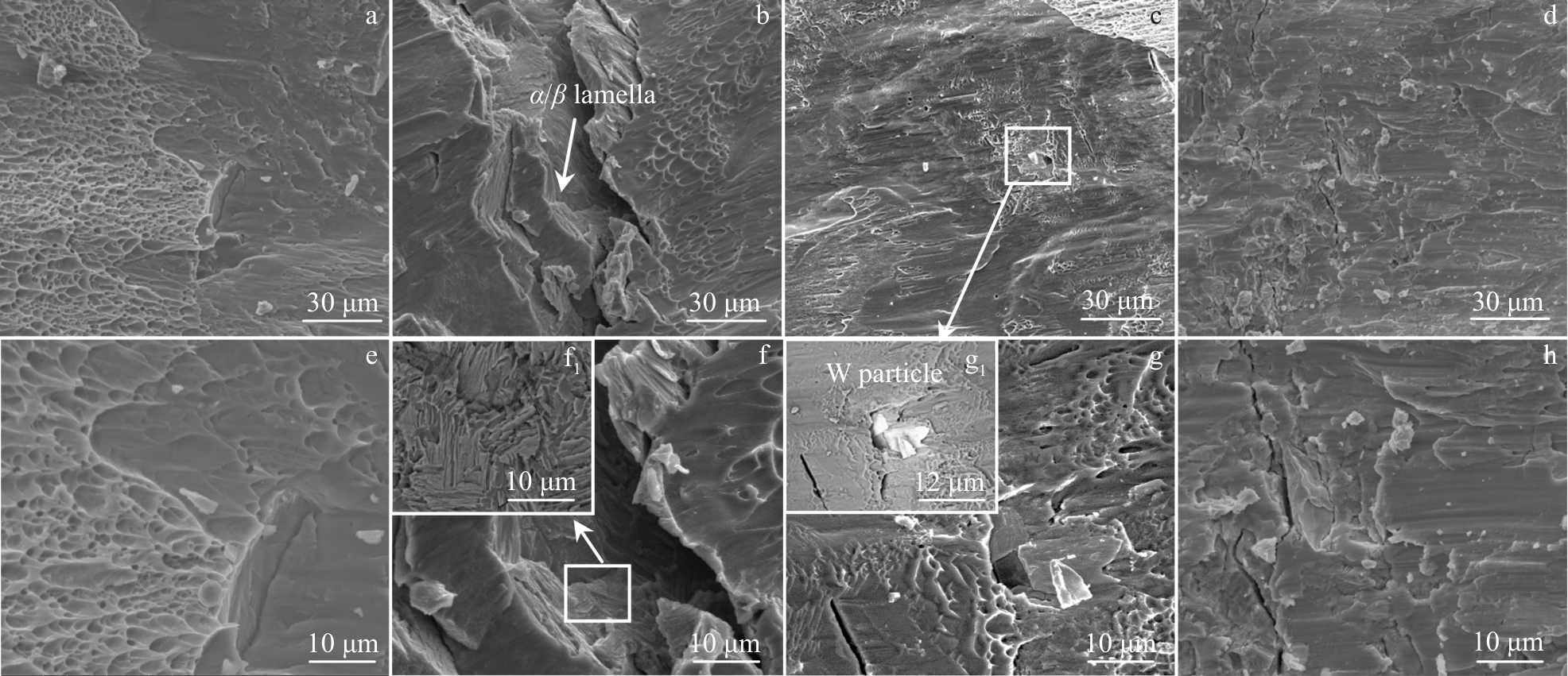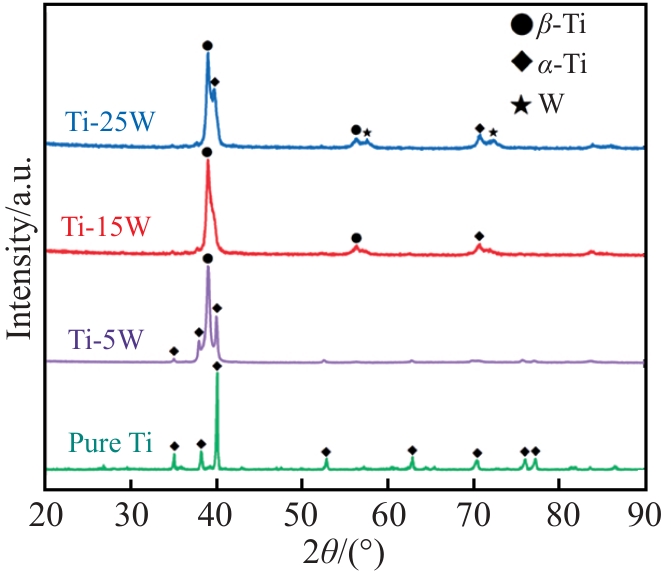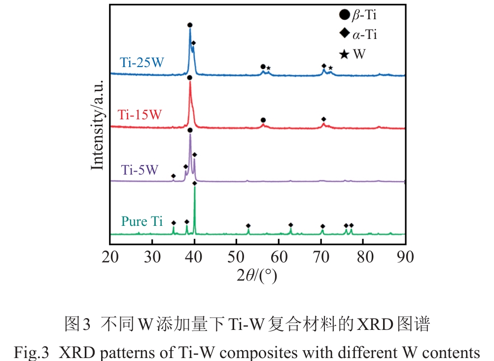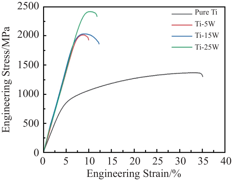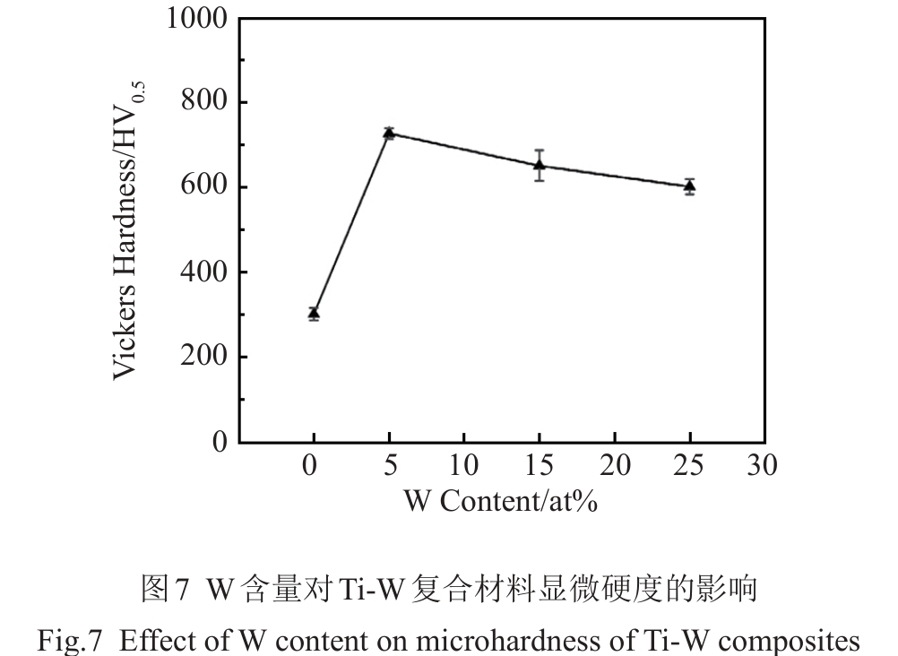 Abstract:Ti-W composites with different W additions were prepared by spark plasma sintering technique and their phase composition, microscopic morphology, mechanical property, and fracture morphology were investigated. The results show that W element can refine the particle size of composite powder and promote the interfacial bonding. The relative density of Ti-W composite with 5at% W addition content increases from 92.33% (pure Ti) to 98.49%, the microhardness increases from HV0.5 315 to HV0.5 740. The compressive strength of Ti-W composites is also significantly improved, and the compressive yield strength of Ti-W composite with 25at% W addition content (Ti-25W) is as high as 2267 MPa. When the W content is lower than 20at%, the lamellar α/β-Ti phase and precipitated nano-martensite play a major role in strengthening; when the W content is 25at%, the unsolidified W particles and W-rich solid solution play a role in particle strengthening and solid solution strengthening.