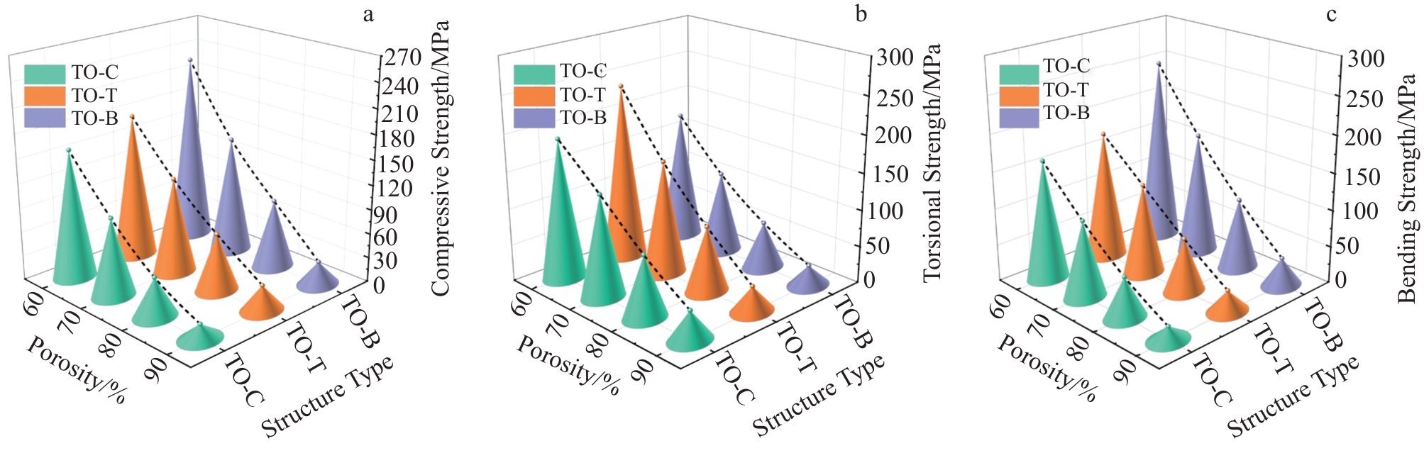 Abstract:The stress of human bone in daily activities is complex. To obtain the optimal porous titanium alloy structure suitable for bone implants, it is necessary to analyze the mechanical properties of porous structures. According to the compression, torsion, and bending loads of human bone, three kinds of porous structures (TO-C, TO-T, and TO-B) were designed and reconstructed by topology optimization method. The mechanical properties of different porous structures were studied by finite element simulation in compression, torsion and bending states. Finally, the compression test of porous specimens prepared by selective laser melting technique was carried out. The simulation results show that the compressive strength and bending strength of TO-B structure are optimal, while the torsional strength of TO-T structure is optimal. The compression test shows that the compressive strength of three structures at a porosity of 60% ranges from 188.35 MPa to 258.88 MPa and the elastic modulus ranges from 2.51 GPa to 4.16 GPa, all of which meet the requirements of human bones. By combining simulation and compression test to comprehensively analyze the mechanical properties of porous structures, it is found that TO-B structure has the best comprehensive performance and is the optimal type of porous structure for orthopedic implants.