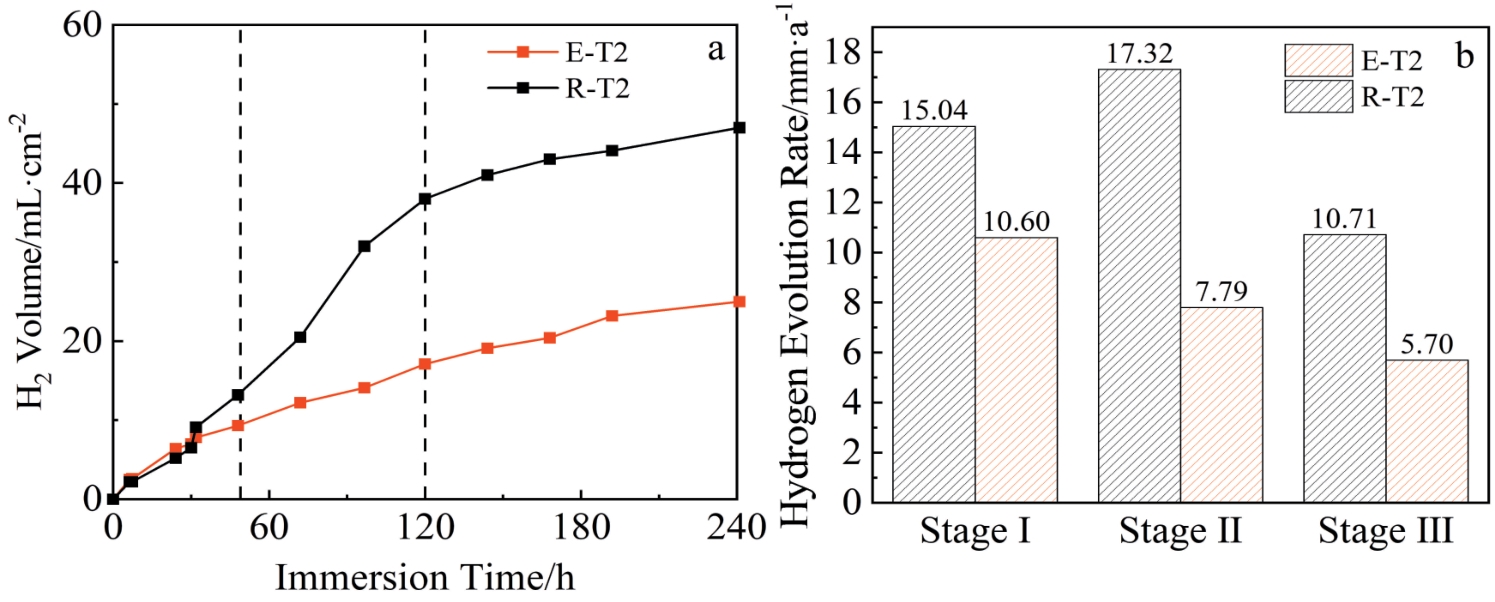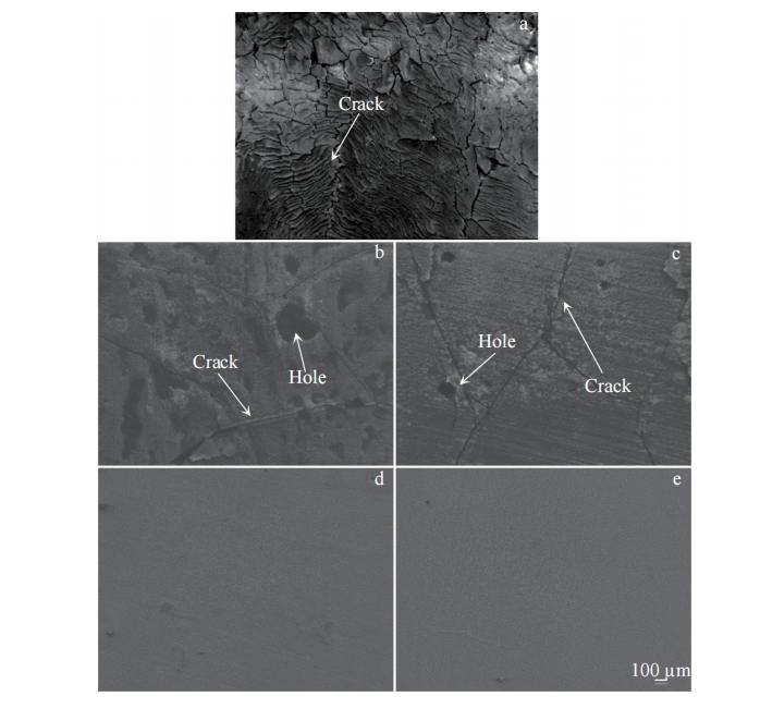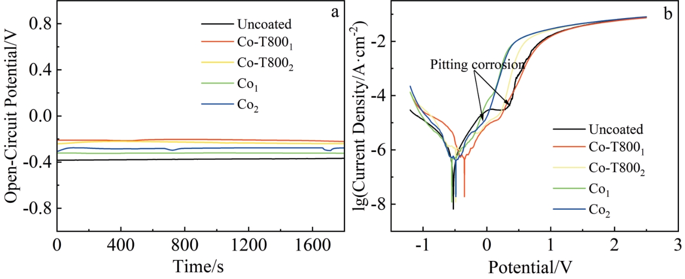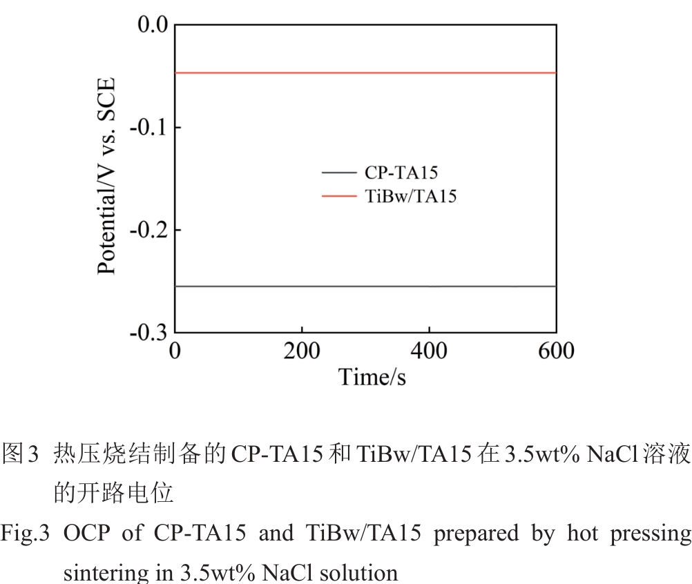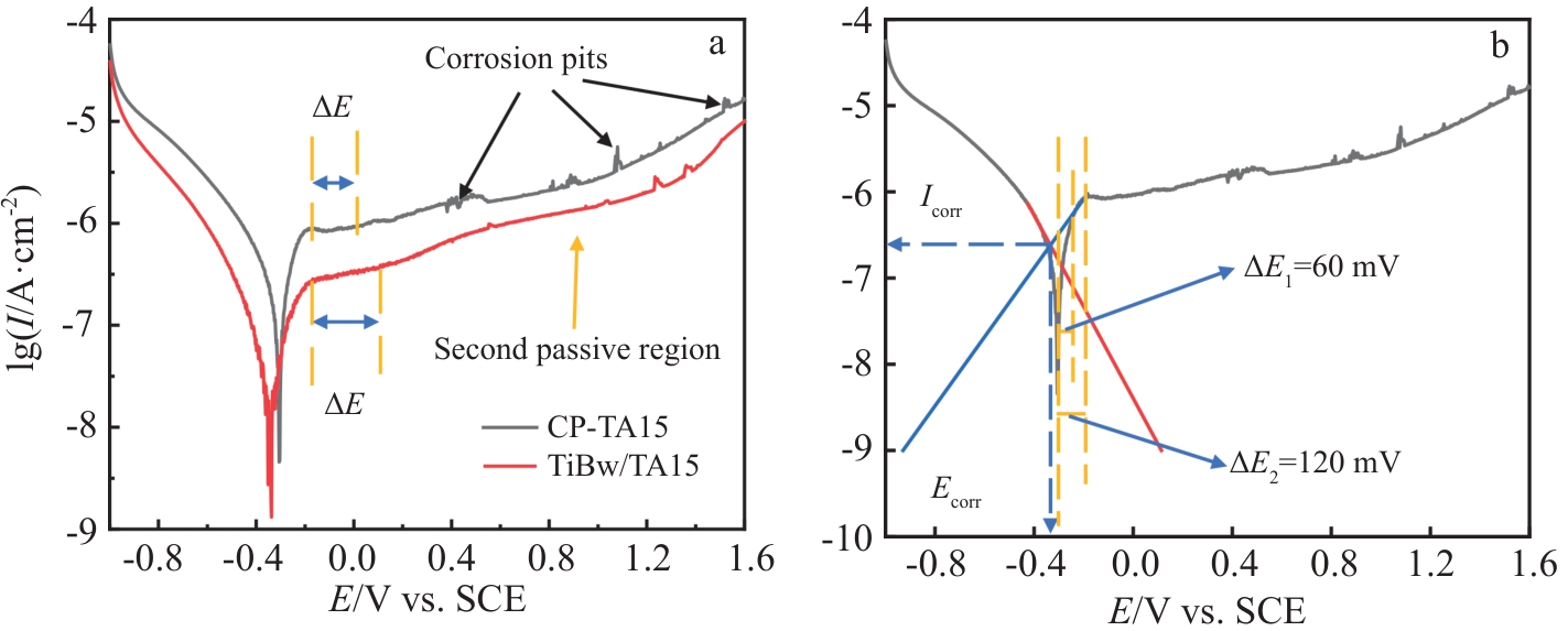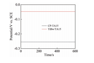 Abstract:The 5vol%TiBw/TA15 composite with mesh structure was prepared by low-energy ball milling in conjunction with vacuum hot pressing sintering technique, and its corrosion resistance was investigated. Pure TA15 and 5vol%TiBw/TA15 composite were subjected to electrochemical corrosion tests. The open circuit potential, polarization curves, and electrochemical impedance spectra of the two materials were measured and compared in 3.5wt% NaCl corrosion solution. The results show that compared with pure TA15, the composite reinforced by 5vol% TiBw with mesh structure has a lower self-corrosion current density (0.033 μA·cm-2), higher polarization resistance value (42 993 kΩ·cm2), and fewer corrosion pits, demonstrating superior corrosion resistance. This phenomenon is attributed to the presence of TiBw reinforcement, which accelerates the formation of a stable TiO2 passivation film on the surface of the 5vol%TiBw/TA15 composite compared to pure TA15 during the electrochemical corrosion process.
