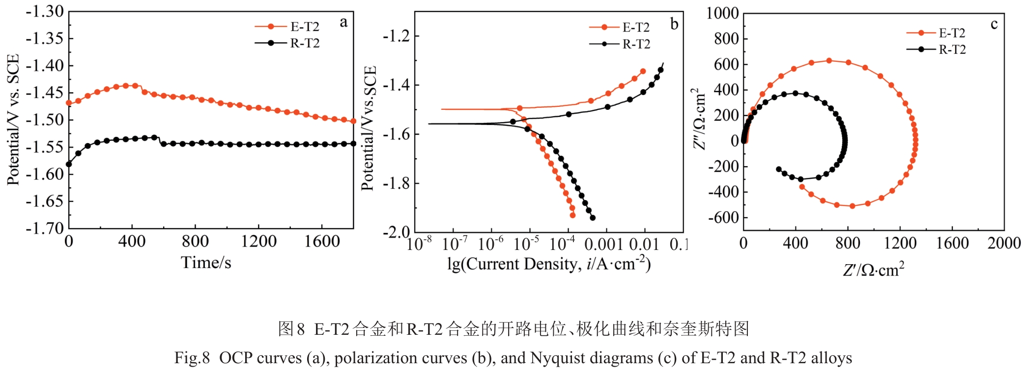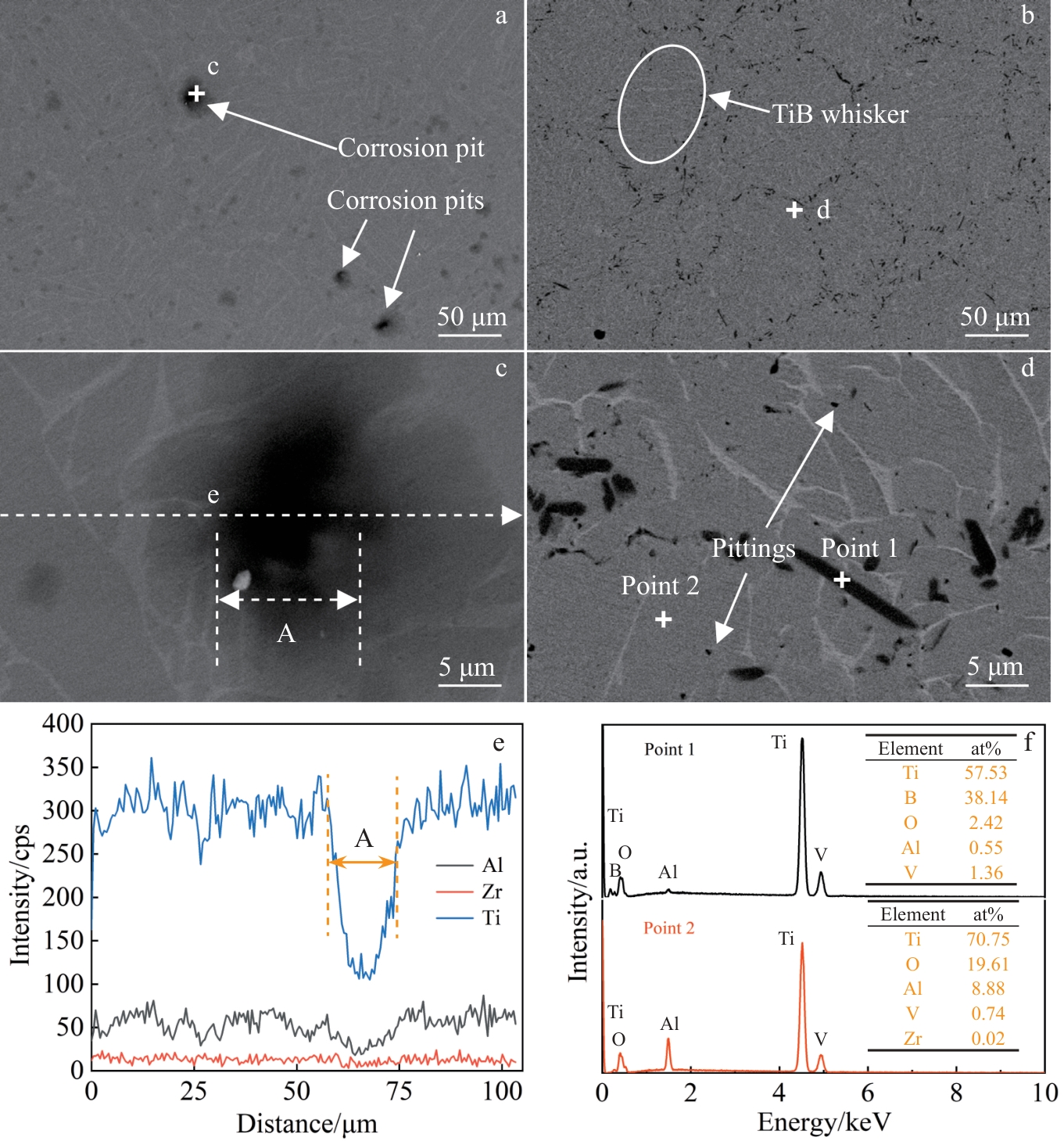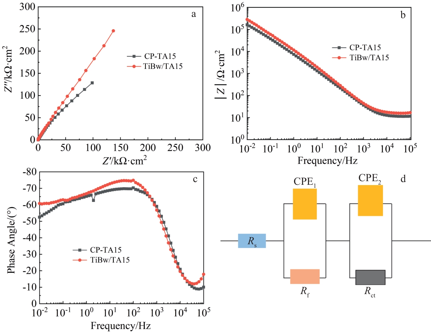 Abstract:The 5vol%TiBw/TA15 composite with mesh structure was prepared by low-energy ball milling in conjunction with vacuum hot pressing sintering technique, and its corrosion resistance was investigated. Pure TA15 and 5vol%TiBw/TA15 composite were subjected to electrochemical corrosion tests. The open circuit potential, polarization curves, and electrochemical impedance spectra of the two materials were measured and compared in 3.5wt% NaCl corrosion solution. The results show that compared with pure TA15, the composite reinforced by 5vol% TiBw with mesh structure has a lower self-corrosion current density (0.033 μA·cm-2), higher polarization resistance value (42 993 kΩ·cm2), and fewer corrosion pits, demonstrating superior corrosion resistance. This phenomenon is attributed to the presence of TiBw reinforcement, which accelerates the formation of a stable TiO2 passivation film on the surface of the 5vol%TiBw/TA15 composite compared to pure TA15 during the electrochemical corrosion process.