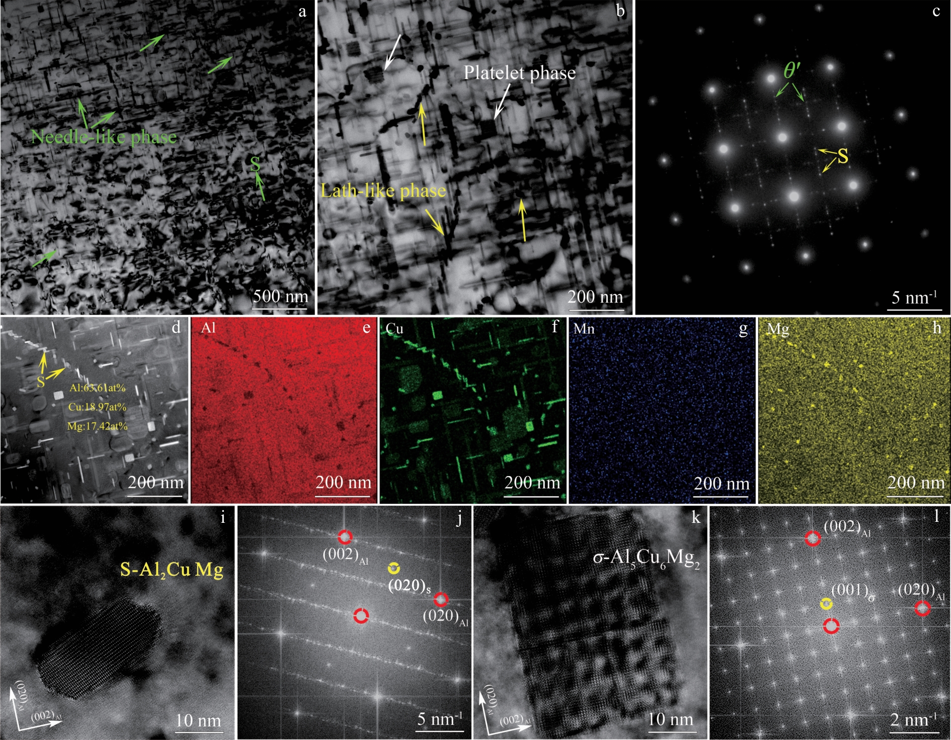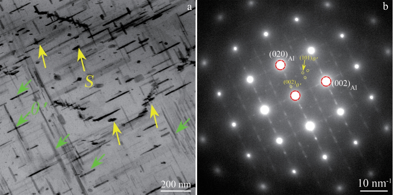 Abstract:In this work, the effects of 0, 0.15%, 0.35%, 0.55% and 0.75% Mg (mass fraction) on the mechanical properties and microstructure of the Al-5Cu-0.7Mn alloy processed by foundry were investigated using microhardness test, tensile test, scanning electron microscope (SEM) and transmission electron microscope (TEM). The evolution of precipitation behavior was discussed, revealing the relationship between yield strength and aging precipitates. The results demonstrate that the aging precipitates of the Al-Cu-Mn-Mg alloys are transformed from the θ′′ phase (Al3Cu) to the θ′ phase (Al2Cu), with the appearance of the S phase (Al2CuMg) and the σ phase (Al5Cu6Mg2) after Mg addition. Mg-added alloys have a wider variety of phases compared to 0% Mg alloys with only the θ′′ phase, which significantly enhances the strength of the alloys. The alloy with 0.55% Mg added has excellent mechanical properties, with yield strength, tensile strength and elongation are 348 MPa, 496 MPa and 14.1%, respectively. Based on the quantitative statistics on the strengthening contribution of the precipitates, the yield strength of the 0.55% Mg alloy increases by 251.7 MPa due to aging precipitates, which is higher than that of the 0% Mg alloy (147.5 MPa). This indicates that the addition of Mg has a positive effect on the enhancement of the comprehensive mechanical properties of Al-Cu-Mn alloy.