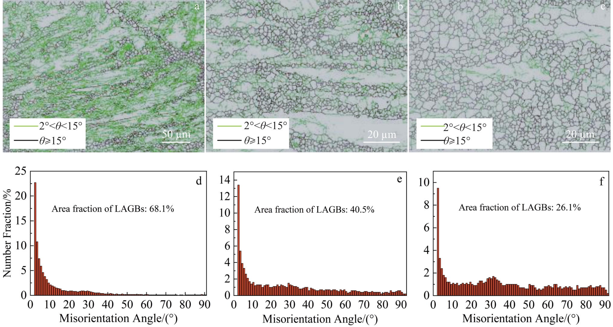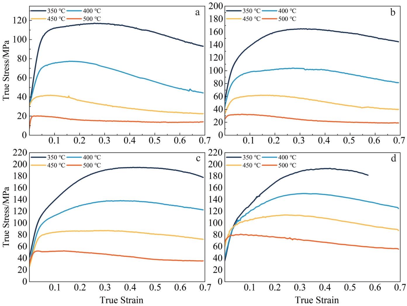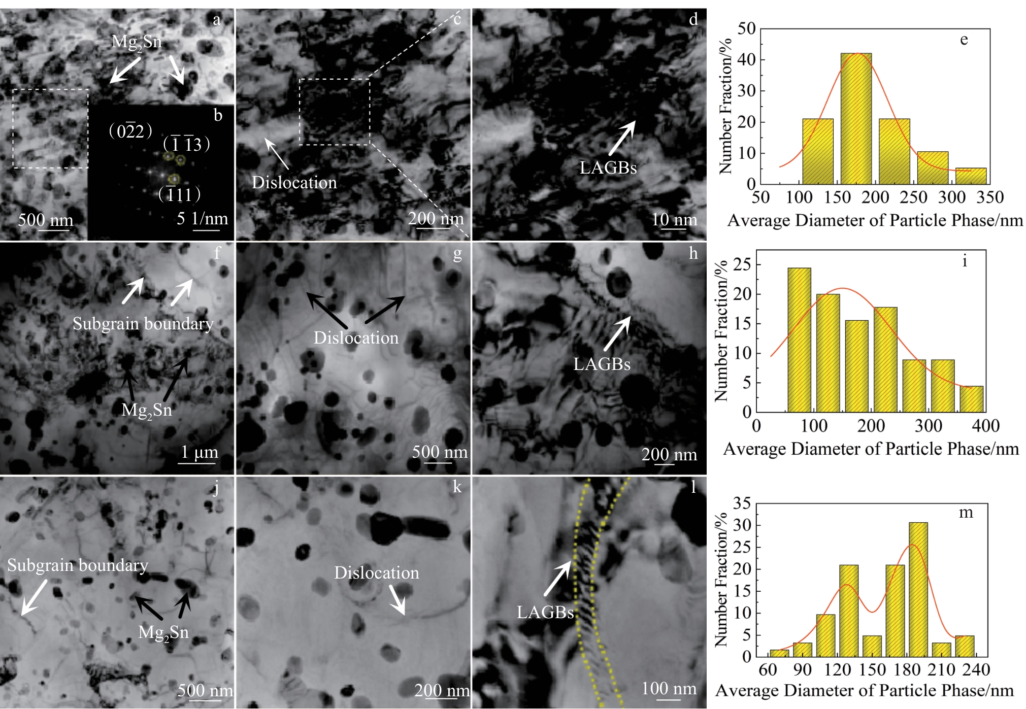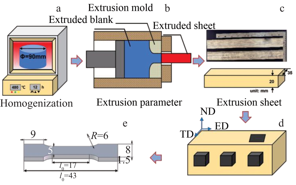 Abstract:The effects of different extrusion temperatures (160, 220 and 230 ℃) on the microstructure and mechanical properties of Mg-7Sn alloy with heterogeneous grain structure were investigated using optical microscope, X-ray diffractometer, electron backscatter diffractometer, transmission electron microscope, and a universal experimental tensile machine. All three extruded alloys contain fine dynamic recrystallized grains and coarse hot-worked grains. The difference in deformability between coarse and fine grains leads to the formation of hetero-deformation induced stress (HDI). The extruded alloys form a typical basal texture, and the texture strength of the basal texture is weakened with increasing extrusion temperature, which is mainly attributed to the fact that the increase in extrusion temperature promotes the dynamic recrystallization and the activation of non-basal slip. The extruded 9E160 alloy exhibits high tensile strength at room temperature (σb=341.83 MPa) due to HDI strengthening, fine grain strengthening and high volume fraction of nanoscale Mg2Sn phase precipitation strength. The increase in extrusion temperature facilitates dynamic recrystallization, resulting in grain refinement and further enhancement of the alloy's plasticity. The improved plasticity of the alloy can be attributed to both grain refinement and activation of non-basal slip systems.