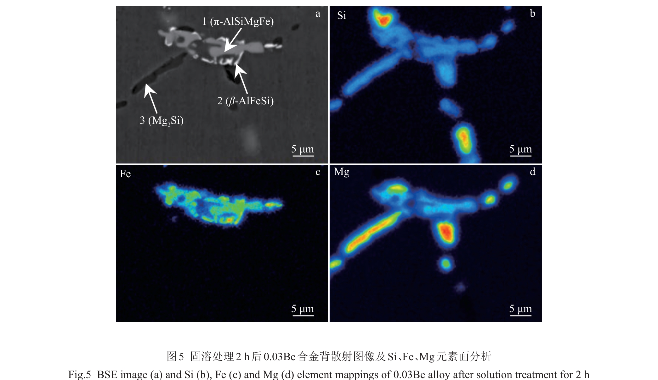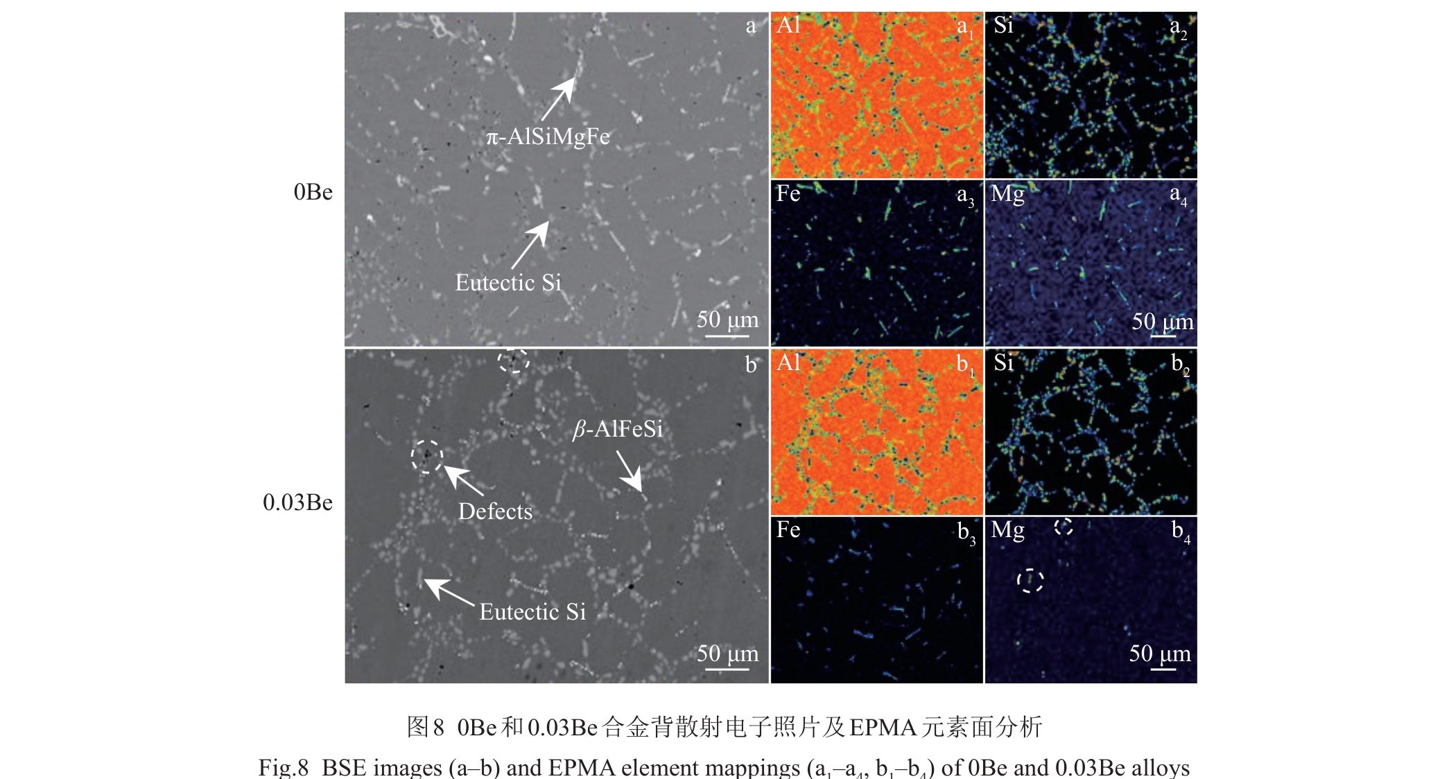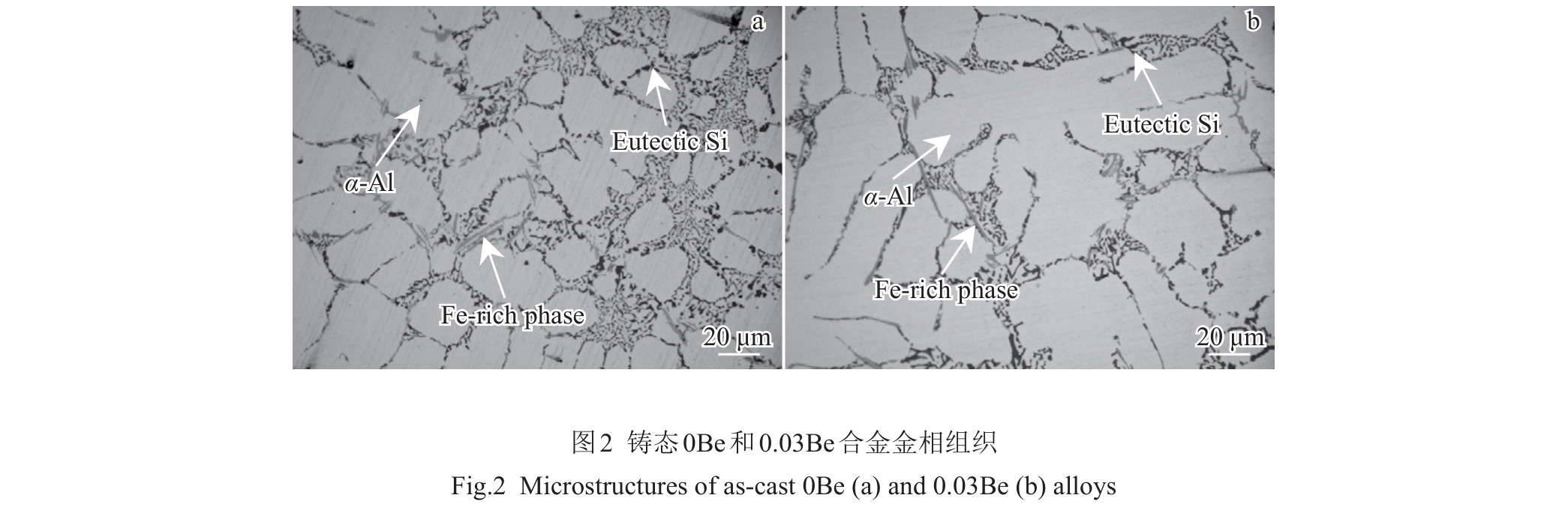 Abstract:To investigate the effect of Be on the transformation of Fe-containing phases during solution treatment, a series of experiments combining Be with different solution treatment processes were designed, and the intrinsic relationship between its effect on the morphology of eutectic silicon and Fe-containing phases and the mechanical properties was studied, aiming to improve the overall performance of the hypoeutectic Al-Si-Mg alloy. The results show that Be delays the decomposition of Mg2Si phase and promotes the transformation of π-AlSiMgFe phase to β-AlFeSi phase. The accelerated transformation of the structure and morphology of π-AlSiMgFe phase not only enhances the strengthening effect, but also weakens the cleavage effect of π-AlSiMgFe phase on the matrix, thus synchronously improving the strength and plasticity of the alloy.