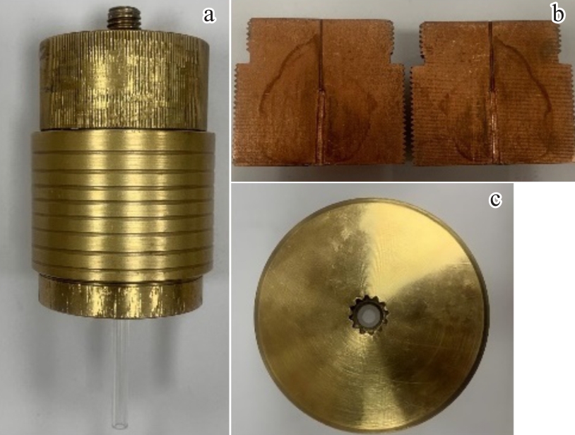 Abstract:A suction casting experiment was conducted on Zr55Cu30Al10Ni5 (at%) amorphous alloy. Using ProCAST software, numerical simulations were performed to analyze the filling and solidification processes. The velocity field during the filling process and the temperature field during the solidification process of the alloy melt under different process parameters were obtained. Based on the simulation results, a Zr-based amorphous alloy micro-gear was prepared via casting. The results indicate that increasing the suction casting temperature enhances the fluidity of alloy melt but induces unstable flow rate during filling, which is detrimental to complete filling. Zr-based amorphous micro-gears with a module of 0.6 mm, a tooth top diameter of 8 mm, and 10 teeth were prepared through the suction casting. X-ray diffraction and differential scanning calorimetry analyses confirm that the fabricated micro-gear exhibits characteristic amorphous structural features, demonstrating well-defined geometrical contours and satisfactory forming completeness.