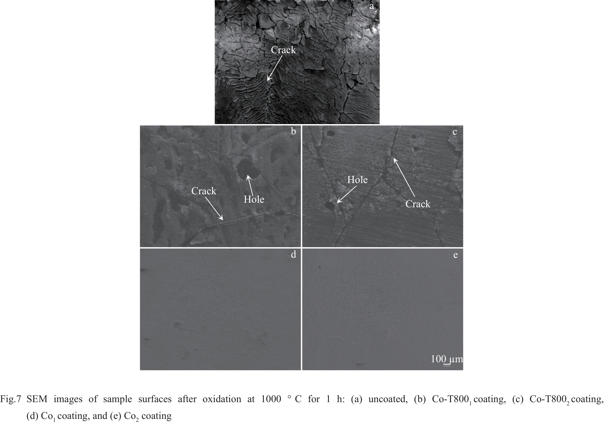Abstract:Co-based alloy coating was prepared on Zr alloy using laser melting and cladding technique to study the difference in the high-temperature oxidation behavior between pure metal Co coatings and Co-T800 alloy coatings, as well as the wear resistance of the coatings. Besides, the effect of changing the laser melting process on the coatings was also investigated. The oxidation mass gain at 800–1200 °C and the high-temperature oxidation behavior during high-temperature treatment for 1 h of two coated Zr alloy samples were studied. Results show that the Co coating and the Co-T800 coating have better resistance against high-temperature oxidation. After oxidizing at 1000 °C for 1 h, the thickness of the oxide layer of the uncoated sample was 241.0 μm, whereas that of the sample with Co-based coating is only 11.8–35.5 μm. The friction wear test shows that the depth of the abrasion mark of the coated sample is only 1/2 of that of the substrate, indicating that the hardness and wear resistance of the Zr substrate are greatly improved. The disadvantage of Co-based coatings is the inferior corrosion resistance in 3.5wt% NaCl solution.