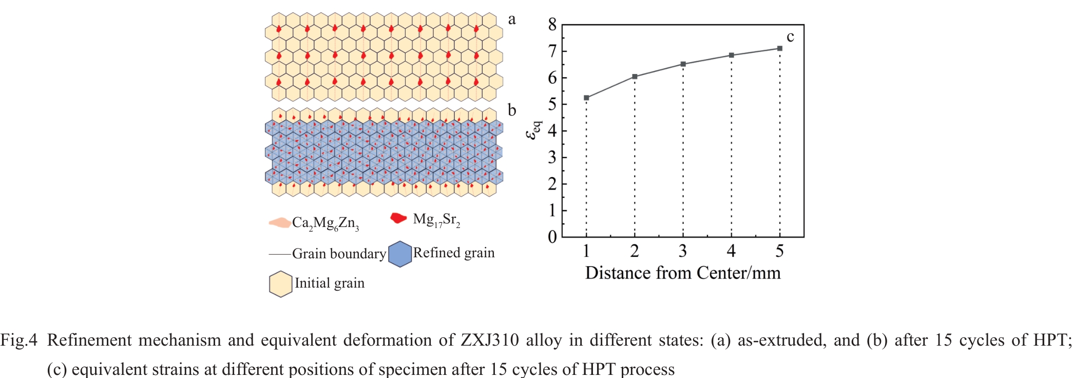 Abstract:Degradable metals, represented by magnesium and magnesium alloys, have attracted significant attention as fracture internal fixation and bone defect repairing materials due to their good biocompatibility, suitable elastic modulus and degradable properties. The Mg-3Zn-1Ca-0.5Sr (wt%) alloy is considered a competitor in the biomaterial field thanks to its unique composition of essential nutrients and excellent mechanical properties. However, the presence of coarse second-phase particles in the alloy accelerates its degradation rate and causes excessive gas formation during implantation, which restricts the alloy's potential for clinical device applications. In order to further optimize the properties of the alloy, extrusion combined with high-pressure torsion (HPT) was adopted for deformation processing. The results show that by optimizing the material processing means, the grain can be refined and broken, and the second-phase distribution can be improved, thus improving the microstructure, mechanical properties, and corrosion resistance of the alloy. After 15 cycles of HPT processing, the grains of the alloy are significantly refined to the nanometer scale, reaching approximately 98 nm. Additionally, the second-phase distribution is greatly improved, transforming the original streamlined structure into a more dispersed distribution. This change in microstructure leads to a significant strengthening effect on the alloy, with a noticeable increase in hardness from 60.3 HV in the as-extruded state to 98.5 HV.