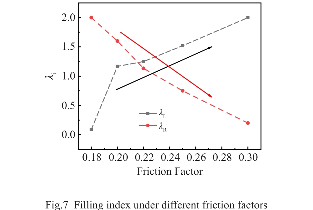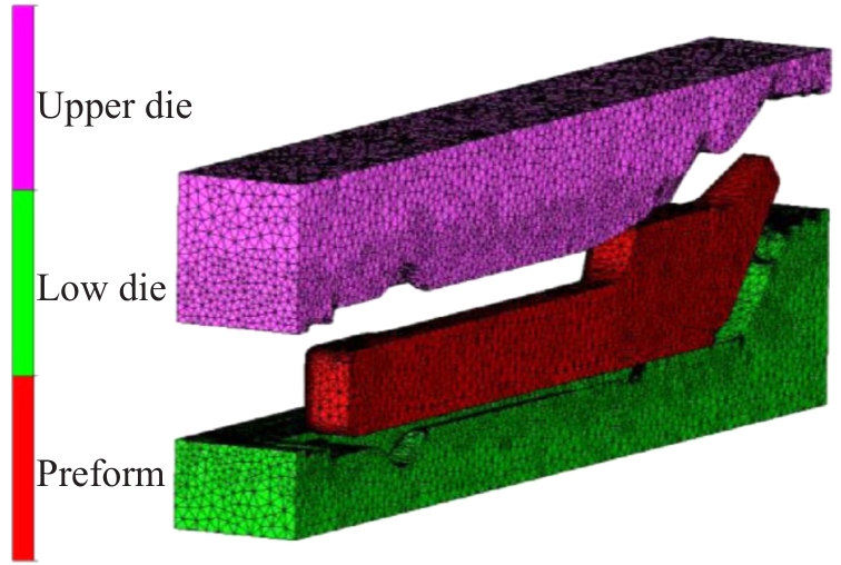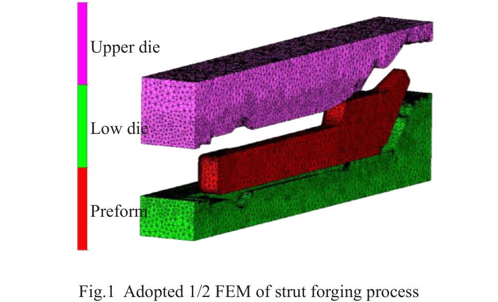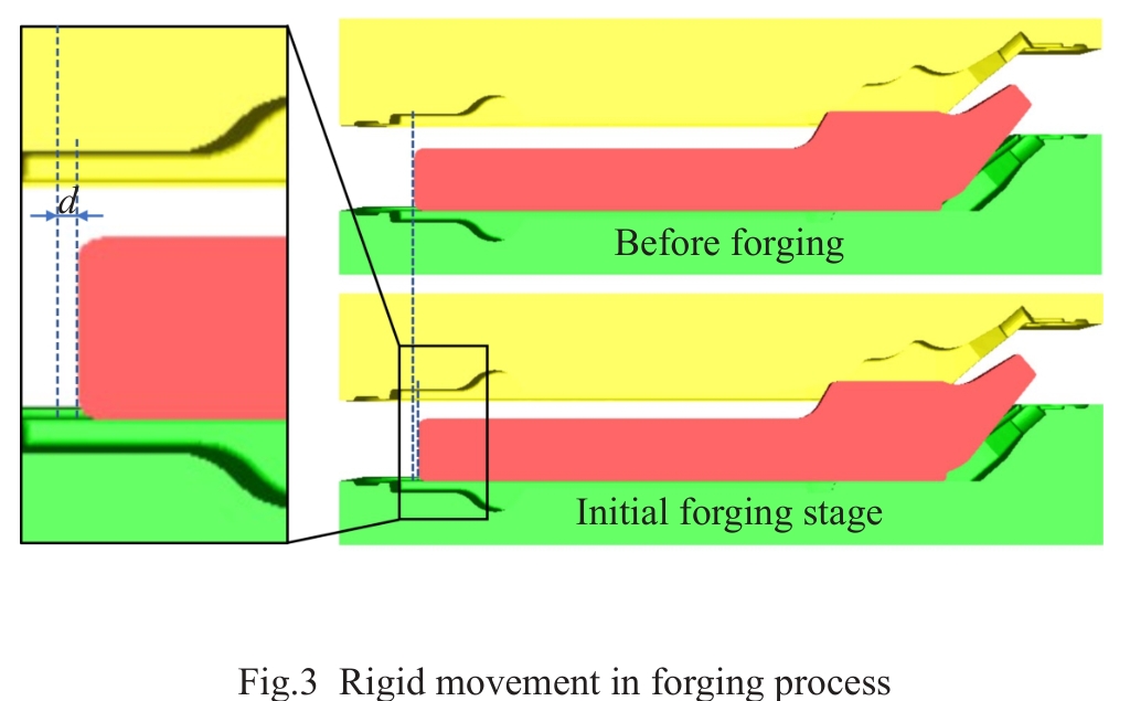 Abstract:The titanium alloy strut serves as a key load-bearing component of aircraft landing gear, typically manufactured via forging. The friction condition has important influence on material flow and cavity filling during the forging process. Using the previously optimized shape and initial position of preform, the influence of the friction condition (friction factor m=0.1–0.3) on material flow and cavity filling was studied by numerical method with a shear friction model. A novel filling index was defined to reflect material flow into left and right flashes and zoom in on friction-induced results. The results indicate that the workpiece moves rigidly to the right direction, with the displacement decreasing as m increases. When m<0.18, the underfilling defect will occur in the left side of strut forging, while overflow occurs in the right forging die cavity. By combining the filling index and analyses of material flow and filling status, a reasonable friction factor interval of m=0.21–0.24 can be determined. Within this interval, the cavity filling behavior demonstrates robustness, with friction fluctuations exerting minimal influence.