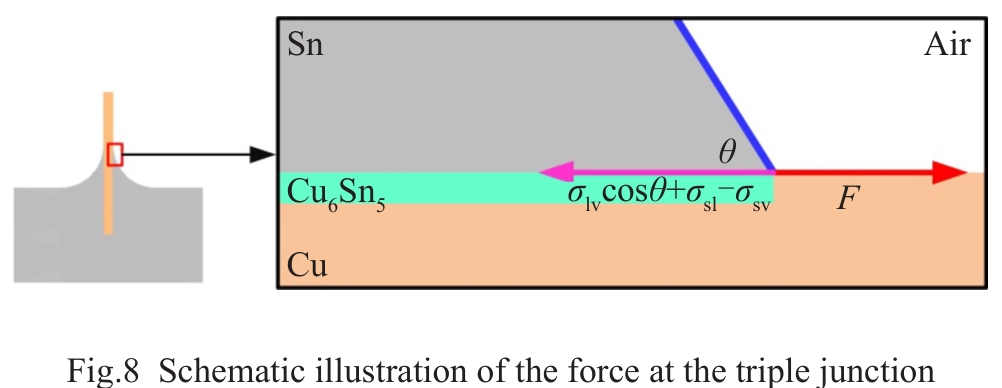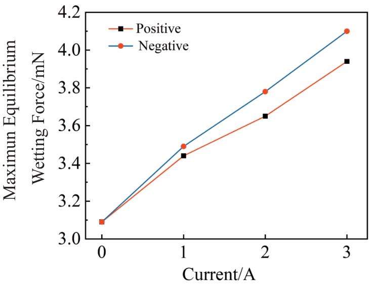 Abstract:The wetting behavior of liquid tin (Sn) solder on copper (Cu) substrate at 250 ℃ was investigated by the wetting balance method under the action of direct current (DC). The curves of wetting balance were measured and the morphology of the intermetallic compound (IMC) precipitated at the interface were observed. Results show that DC has a significant effect on the wettability and IMC. As the current increases, the balance wetting force and the thickness of the IMC layer increase. The direction of the DC also has a certain effect on the balance wetting force and IMC layer. When the current is negative, the final balance wetting force and the thickness of the Cu6Sn5 layer are significantly higher than those in the positive current case, which is attributed to electromigration. The IMC precipitation at the interface provides a chemical driving force for the movement of the triple junction. The interaction of the interface atoms and the chemical reaction are enhanced by DC, thereby improving wettability. Meanwhile, the Marangoni convection caused by DC inside liquid Sn solder changes the structure of triple junction, which provides a physical driving force for the spread of the liquid Sn solder on the Cu substrate.