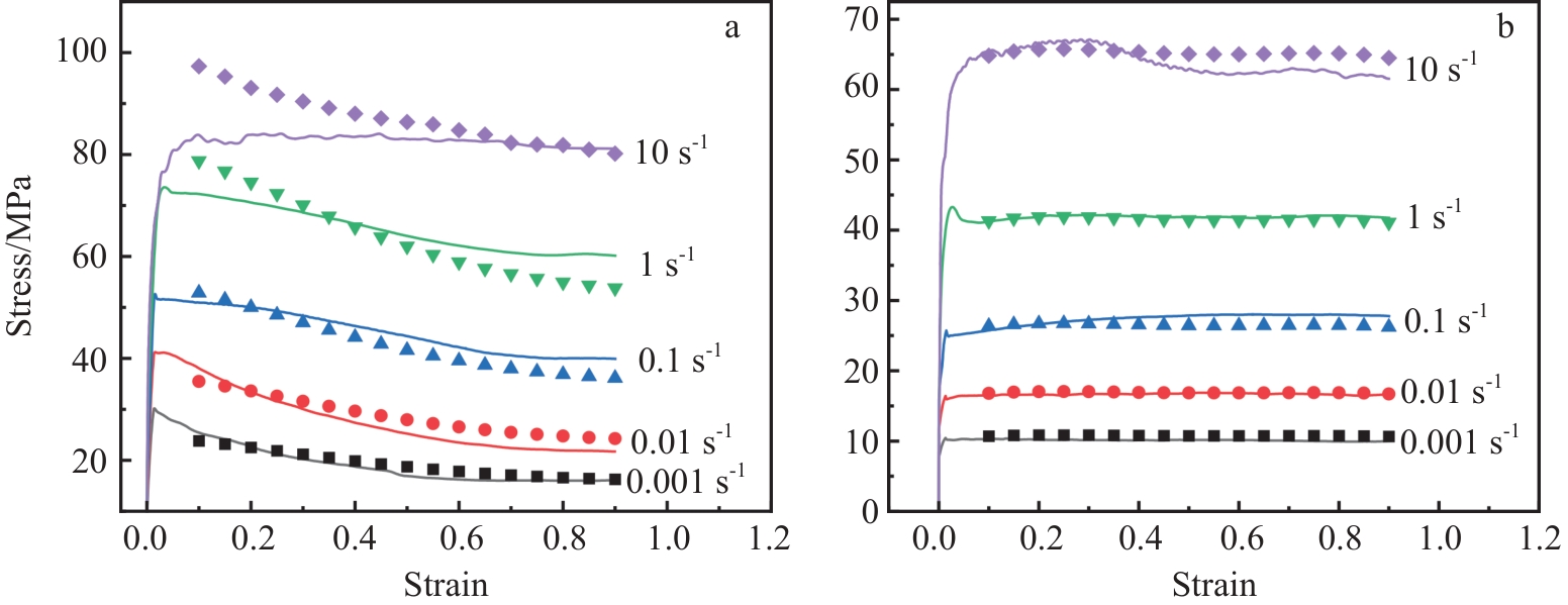 Abstract:The hot compression test of TA18 titanium alloy was carried out by Gleeble-3500 thermal simulation testing machine. The hot deformation behavior of TA18 titanium alloy was studied under the deformation temperature of 1073–1323 K and strain rate of 0.001–10 s-1. According to the obtained true stress-true strain curve, a modified nonlinear regression constitutive model of TA18 titanium alloy was established. The results show that the flow stress of TA18 titanium alloy is sensitive to strain rate and deformation temperature. The stress-strain curves show continuous dynamic softening characteristics in the dual-phase region, and the softening mechanism is mainly dynamic recrystallization. In the single-phase region, the characteristics of steady-state flow are presented, and the softening mechanism is mainly dynamic recovery. The hot deformation activation energy of TA18 titanium alloy in dual-phase region and single-phase region is 643.2 and 148.1 kJ/mol, respectively. The correlation coefficient R and the average absolute relative error AARE of the modified nonlinear regression constitutive model are 0.986 and 7.66%, respectively, indicating that the model can accurately predict the change of flow stress of TA18 titanium alloy. Additionally, with the increase in strain rate, the dynamic recrystallization degree of TA18 titanium alloy decreases first and then increases, and the dynamic recrystallization grain size decreases gradually. With the increase in temperature, the alloy undergoes isomerism transformation, and the alloy structure changes from equiaxed structure to basketweave structure.