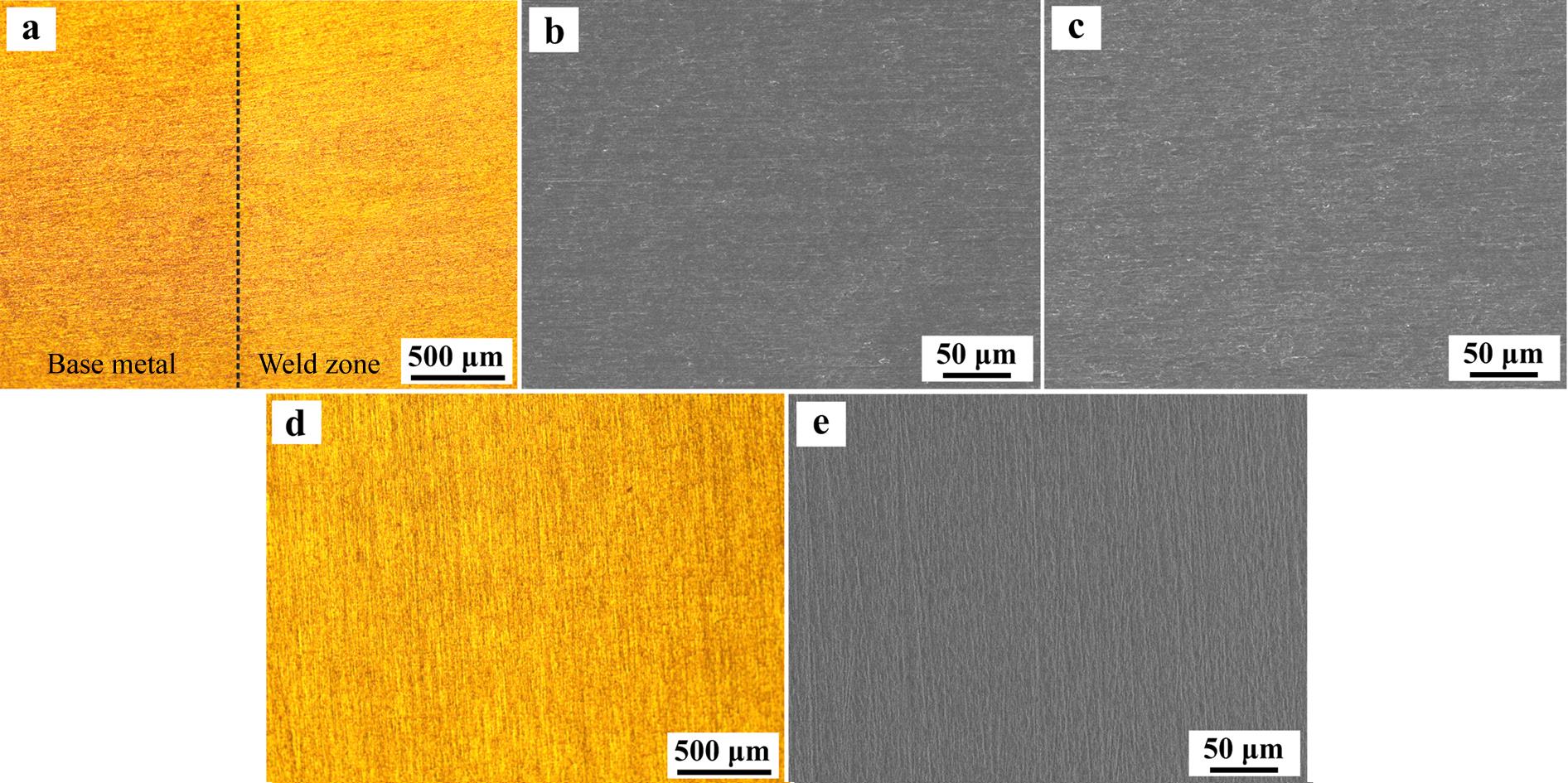 Abstract:Based on the regulation of joint microstructure, electrochemical impedance spectroscopy, kinetic potential polarization and immersion corrosion were used to comparatively analyze the differences in the electrochemical corrosion morphology and post-foil formation surface morphology of laser beam weld (LBW) sample and spin formed sample, and to compare the corrosion resistance and Cu foil-forming ability of two samples in H2SO4/NaCl solution and CuSO4 reducing electrolyte. Results show that in H2SO4 and NaCl solutions, LBW sample and spin formed sample exhibit excellent passivation ability and corrosion resistance. Both samples show uniform corrosion morphologies and similar corrosion resistance in the strong acidic solution containing Cl-. Meanwhile, the Cu foil formation ability of the welded joint is similar to that of the spin formed sample, and both samples obtain intact Cu foils with high-quality surfaces and small differences in properties.