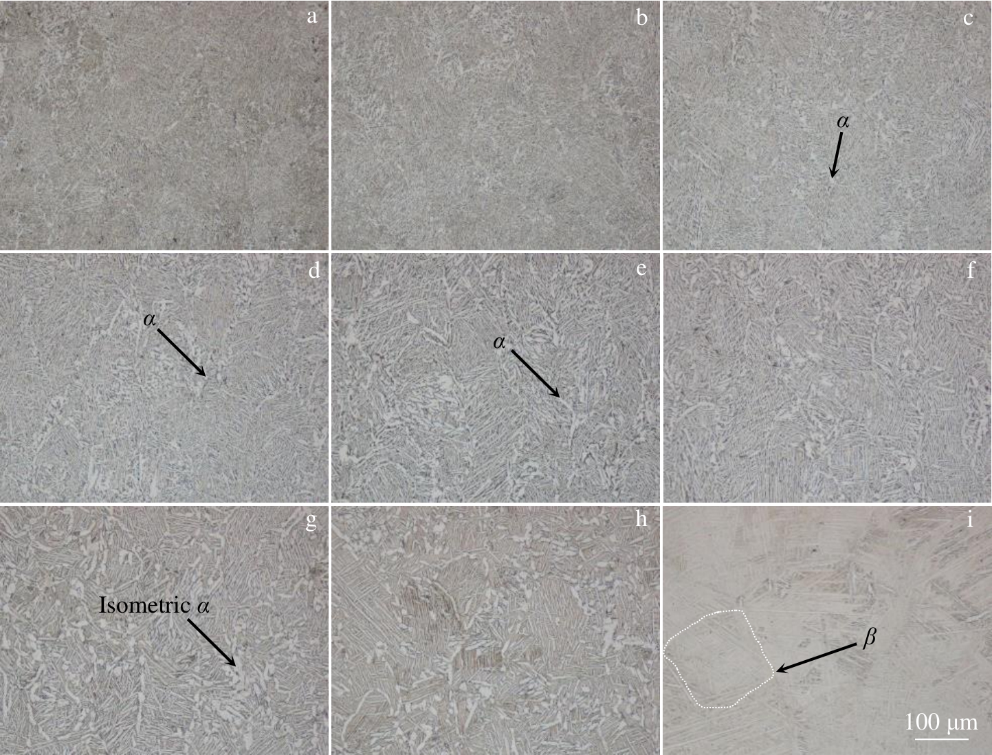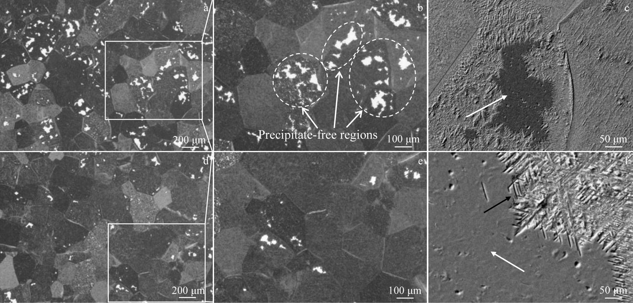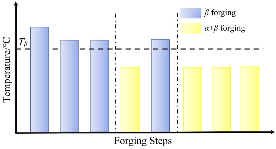 Abstract:The effect of hot deformation on α-phase precipitation during the subsequent heat treatment, as well as the mechanical properties of TB18 Ti-alloy, was investigated. Results show that the round bar obtained by the dual-phase field forging of the cast ingot exhibits uniform composition distribution on its cross-section. However, various degrees of deformation are detected at different positions on the cross-section, which is attributed to the characteristics of the forging process. Under the forging condition, the microstructure is mainly composed of β-phase matrix and coarsened discontinuous primary α-phases. After solution and following artificial aging treatment, the primary α-phases disappear, while needle-like secondary α-phases precipitate in the matrix. Additionally, dispersed white zones are observed in the samples after aging, which are analyzed to be the precipitation-free zones of secondary α-phase. Despite a uniform compositional distribution among various regions, these dispersed white zones exhibit higher content and larger size in the positions that have undergone lower forging deformation. It indicates that the insufficient forging deformation inhibits the precipitation of the secondary α-phase, ultimately resulting in the lower strengthening effect by heat treatment. Thus, consistent with the characteristics of the forging process, a periodic variation of sample in strength is detected along the circumferential direction of the forged round bar.
