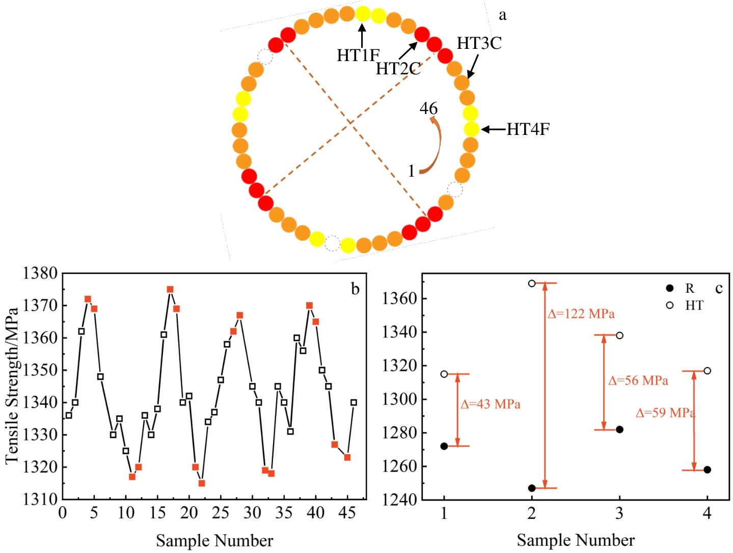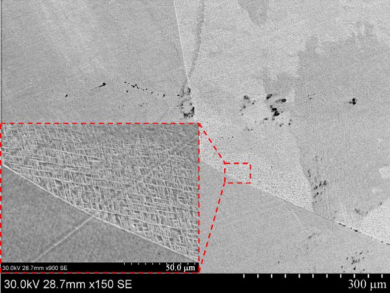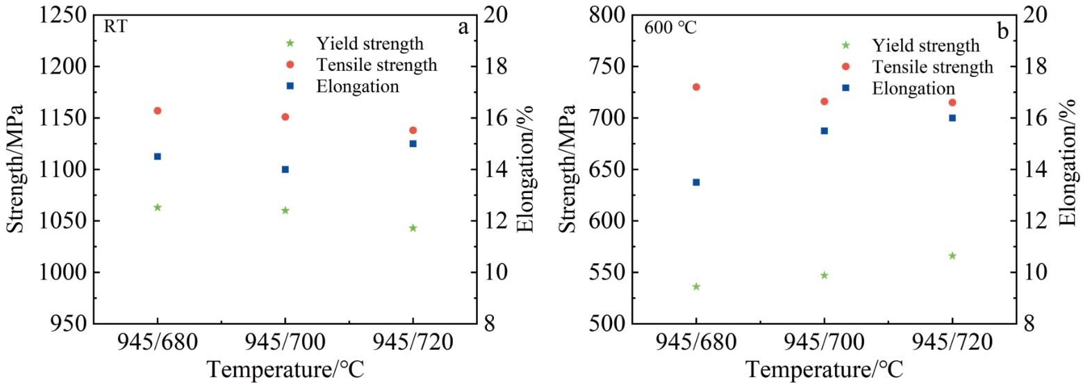 Abstract:High temperature titanium alloy was prepared by selective laser melting (SLM). The effect of heat treatment on the microstructure and mechanical properties of the alloy was studied via OM, SEM, XRD and mechanical tensile. The results show that the metastable acicular martensite α′ is transformed into α phase and β phase after solid solution heat treatment. With the increase in solution temperature, the ratio of length to width of α phase decreases, and fracture occurs along the grain boundary and phase boundary, and some α phase breaks from strips to short rods or equiaxed grains. The tensile strength and yield strength of the formed alloy decrease gradually with the increase in heat treatment temperature, while the elongation increases. Different from the case of the solid solution state, the second phase appears in the microstructure of the alloy after aging heat treatment, which leads to a significant increase in tensile strength and yield strength at room temperature, accompanied by a decrease in elongation. The aging temperature has little effect on the tensile properties of the alloy at room temperature and high temperature. After the solution of 945 ℃/2 h/AC and aging heat treatment of 700 ℃/8 h/AC, the alloy demonstrates good comprehensive mechanical properties.