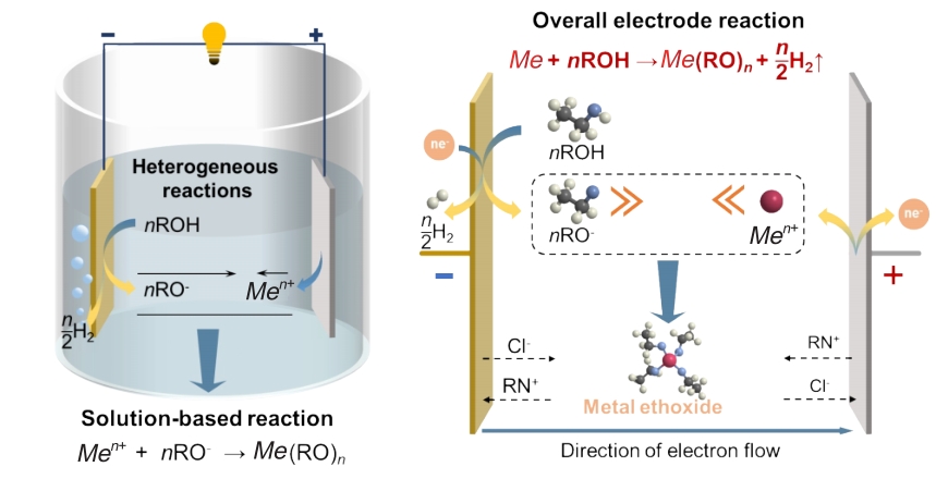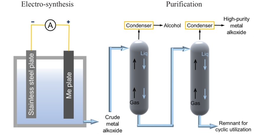 Abstract:Rare metal alkoxides, as key precursors for gate dielectric materials in semiconductor chips, particularly involving the oxides of rare metals such as zirconium, hafnium, tantalum, and niobium, play a crucial role in high-tech fields. Although the traditional halide synthesis method for preparing alkoxides has been widely used, it has drawbacks such as complex processes and low yield. In contrast, electrochemical synthesis is gaining attention due to its simpler process and higher yield, offering significant cost advantages over traditional methods and enhancing the economic benefits for related enterprises. The review summaries our group, research over the past two decades on the electrochemical synthesis of zirconium, hafnium, tantalum, and niobium alkoxides was reviewed, including studies on the electrode reaction mechanisms, determination of process parameters, and physicochemical characterization of the products. The aim is to drive the optimization of the electro-synthesis technology for rare metal alkoxides, provide solid technical support to relevant enterprises, and accelerate the rapid development of integration of production, education, research, and application.
