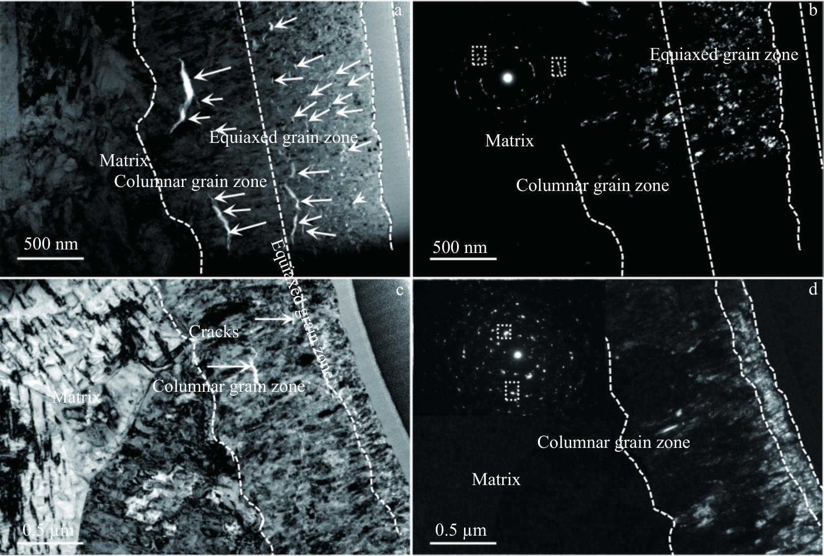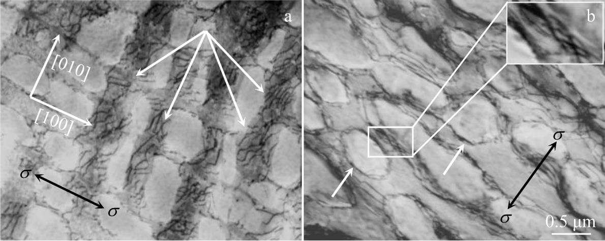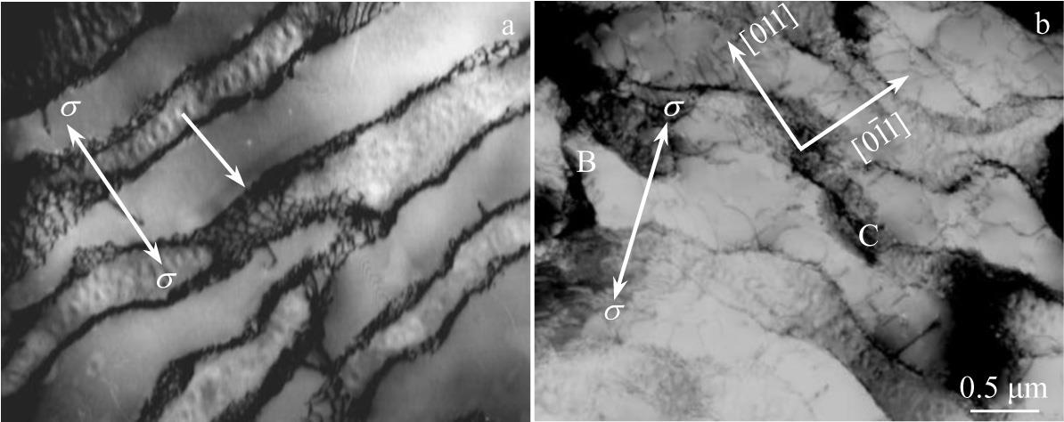Abstract:The microstructure evolution and deformation mechanism of a DZ125 superalloy during high-temperature creep were studied by means of microstructure observation and creep-property tests. The results show that at the initial stage of high-temperature creep, two sets of dislocations with different Burgers vectors move and meet in γ matrix channels, and react to form a quadrilateral dislocation network. And γ′ phases with raft-like microstructure are generated after the formation of dislocation networks. As creep progresses, the quadrilateral dislocation network is gradually transformed into hexagonal and quadrilateral dislocation networks. During steady stage of creep, the superalloy undergoes deformation with the mechanism that a great number of dislocations slip and climb in the matrix across the raft-like γ′ phases. At the later stage of creep, the raft-like γ′ phases are sheared by dislocations at the breakage of dislocation networks, and then alternate slip occurs, which distorts and breaks the raft-like γ′/γ phases, resulting in the accumulation of micropores at the raft-like γ′/γ interfaces and the formation of microcracks. As creep continues, the microcracks continue to expand until creep fracture occurs, which is the damage and fracture mechanism of the alloy at the later stage of creep at high temperature.