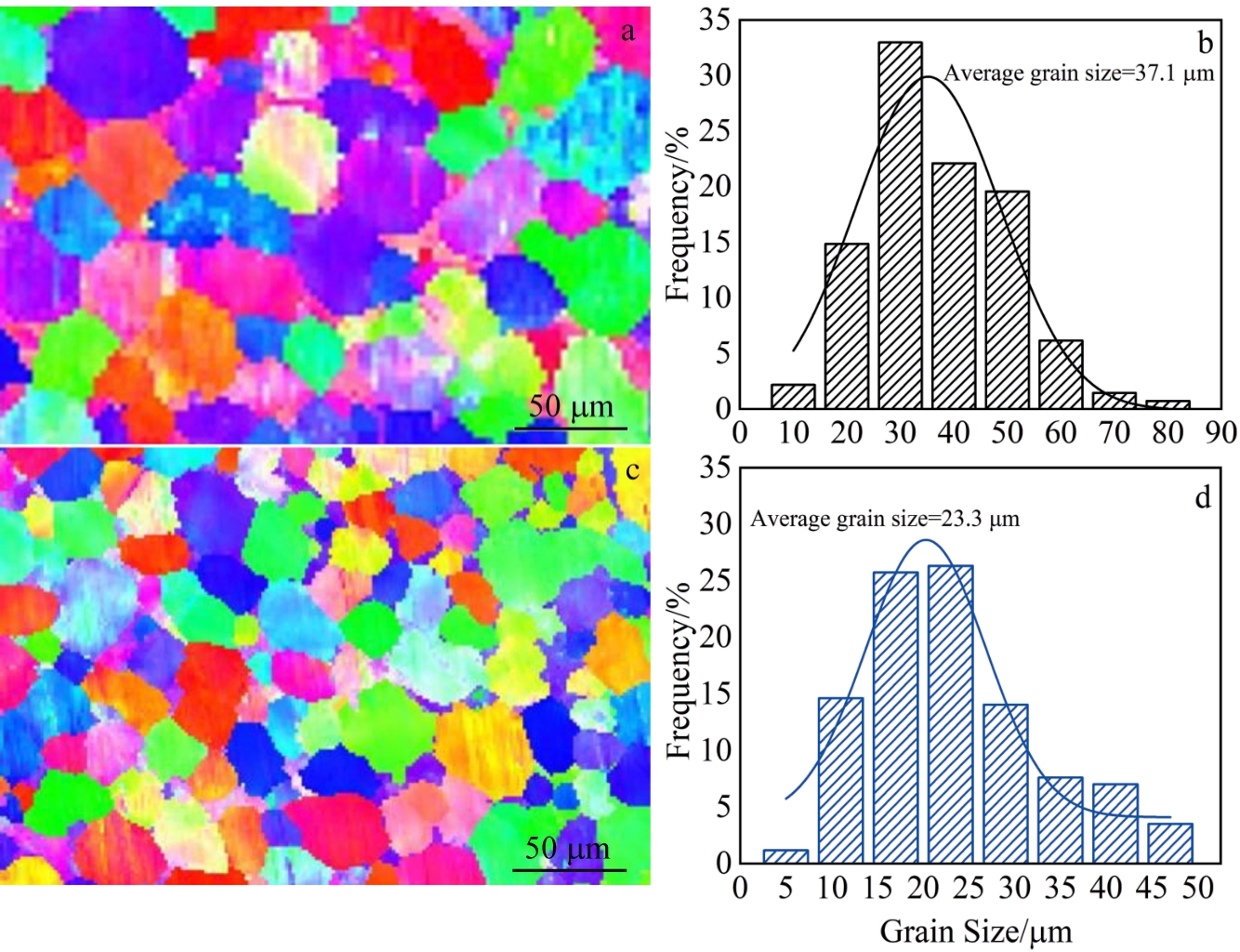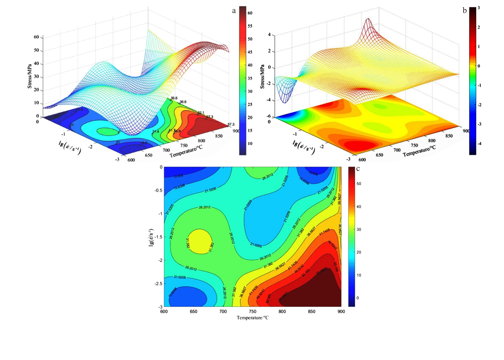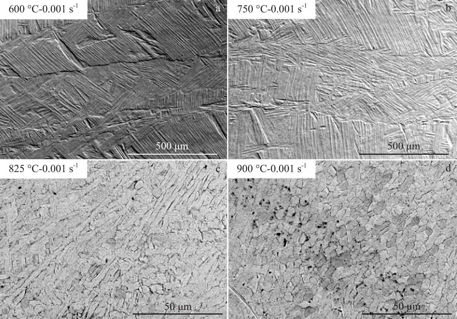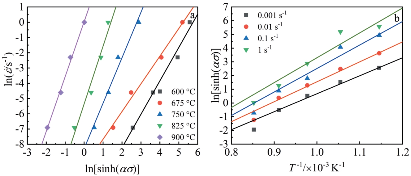 Abstract:The thermal deformation behavior of the GH4169 alloy diffusion-bonded region was investigated using a Gleeble 3800 thermal-mechanical simulation test machine at deformation temperatures of 1213–1333 K with strain rates of 0.01–10 s-1. The results show that the "bond line" in the diffusion bonding region of GH4169 alloy can be effectively eliminated through thermal deformation. The evolution of the δ phase in the diffusion bonding interface region is affected by deformation conditions. When the deformation temperature is lower than the solution temperature of the δ phase, the residual spheroidized δ phase prevents the growth of recrystallization nucleation grains and affects the subsequent recrystallization process. The spheroidization degree of the δ phase can be enhanced by reducing the strain rate. When the deformation temperature exceeds the dissolution temperature of the δ phase, the dissolution of the δ phase creates an extra driving force for recrystallization, thereby significantly enhancing the extent of recrystallization. A hyperbolic sinusoidal Arrhenius constitutive equation with incorporating strain compensation was used to describe the correlation between flow stress and deformation conditions in the diffusion-bonded region of the GH4169 alloy. The calculated values of the constitutive equation agree with the experimental values. According to the dynamic model of the GH4169 alloy diffusion bonded region, the optimal processing parameters are determined as the deformation temperature between 1310–1333 K, and the strain rate between 0.01–0.05 s-1.
