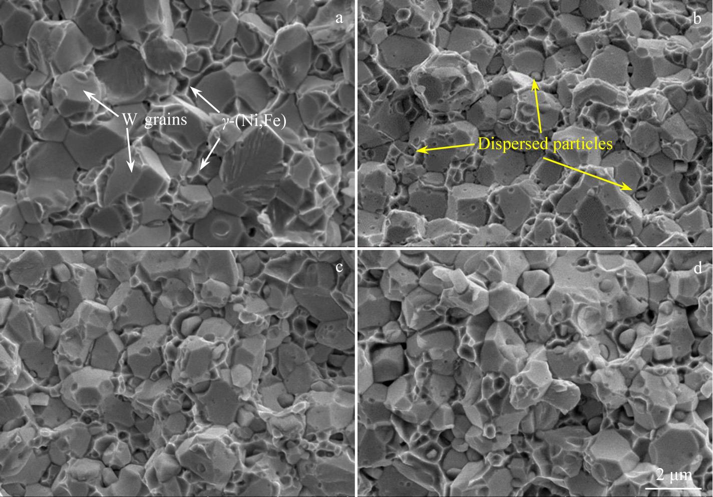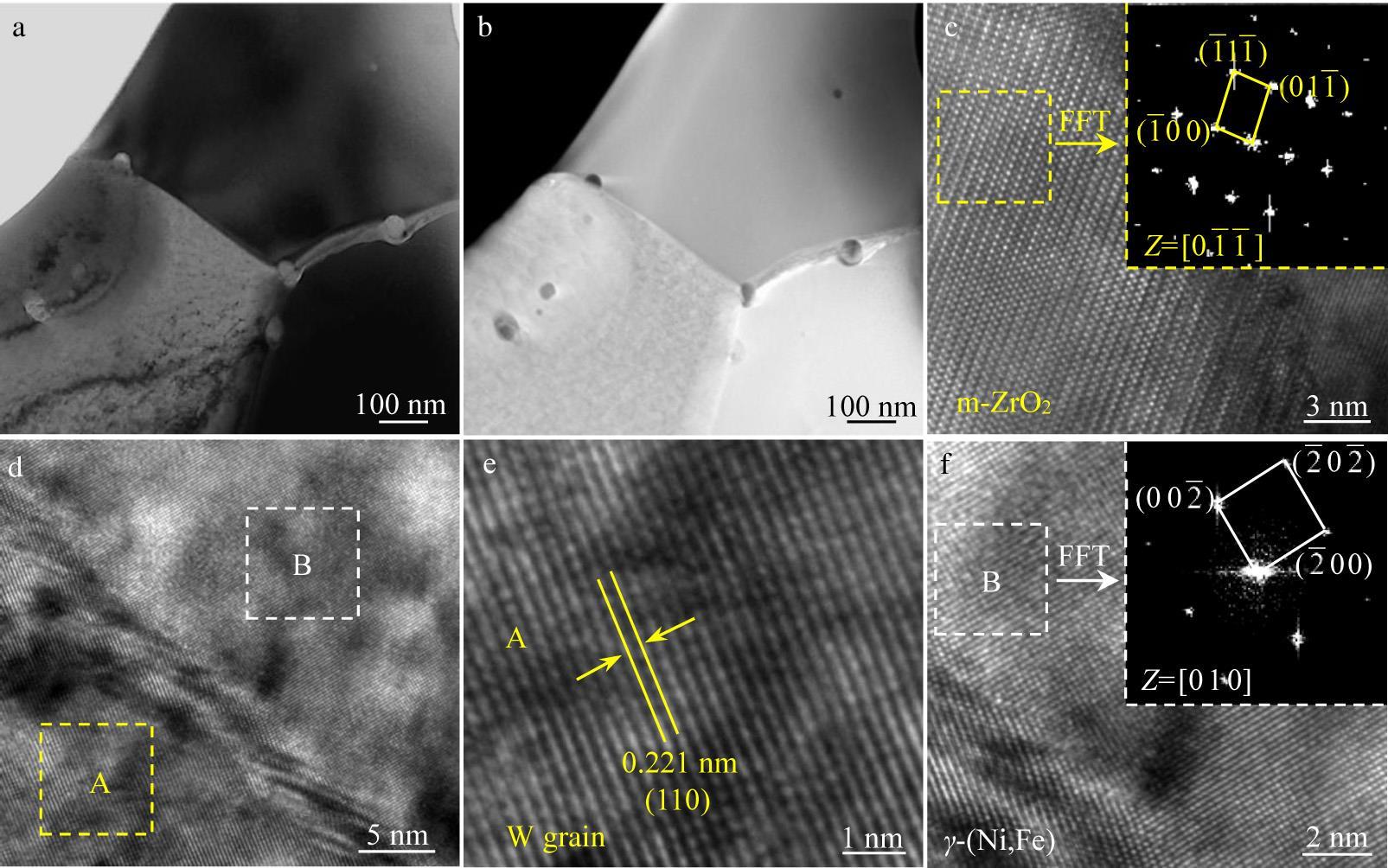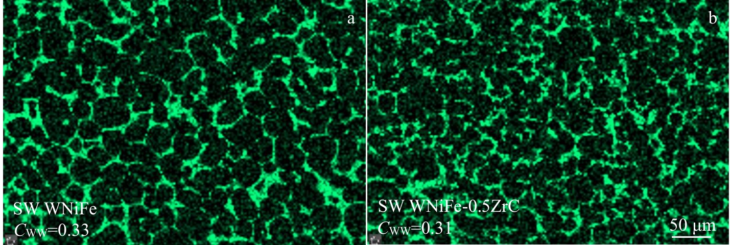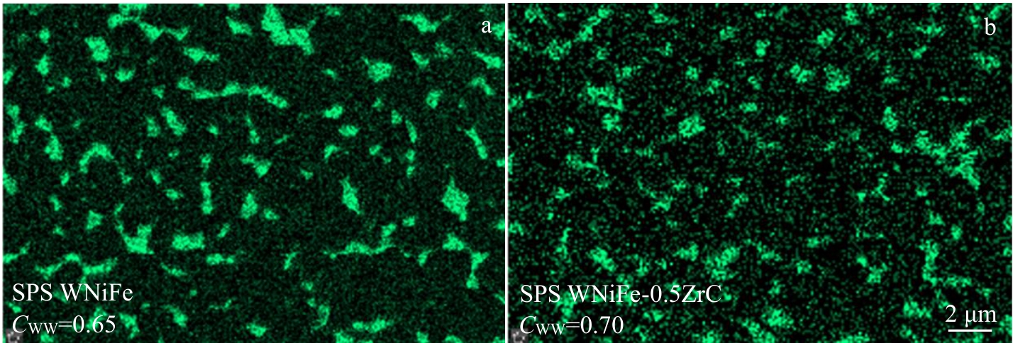 Abstract:93W-4.9Ni-2.1Fe alloys strengthened by nanoscale ZrC particles were prepared by spark-plasma-sintering (SPS) and hot rotary swaging, separately. Results show that the addition of a small number of ZrC nanoparticles can refine grains and increase the hardness of the WNiFe alloys, but hinder the formation of the γ-(Ni, Fe) phase during SPS. SPSed WNiFe and WNiFe-ZrC alloys are brittle at room temperature, while the swaged WNiFe and WNiFe-0.5ZrC (wt%) alloys are ductile. At 400 °C, the swaged WNiFe-0.5ZrC alloy exhibits both higher tensile strength and better ductility than the swaged WNiFe. The nanoscale particles distributed in the W grains and γ-(Ni, Fe) phase provide a good pinning effect, which enhances the strength. The thermal conductivity of swaged WNiFe-0.5ZrC is only 71 W·m-1·K-1 at room temperature, but it increases to about 100 W·m-1·K-1 at 800 °C, which is close to that of pure W (121 W·m-1·K-1). These results show the potential of WNiFe alloys as plasma-facing materials in fusion reactor.
