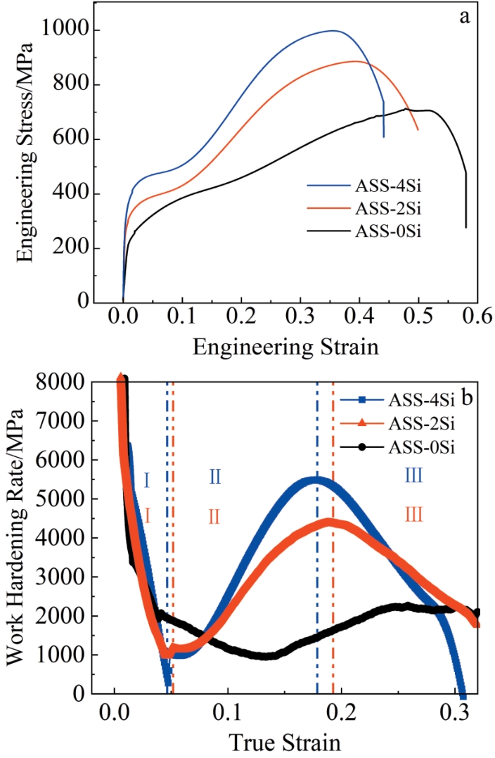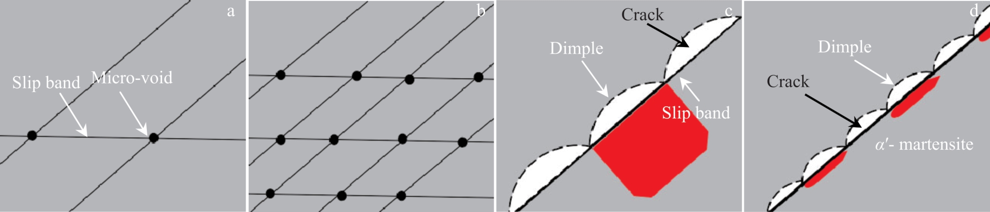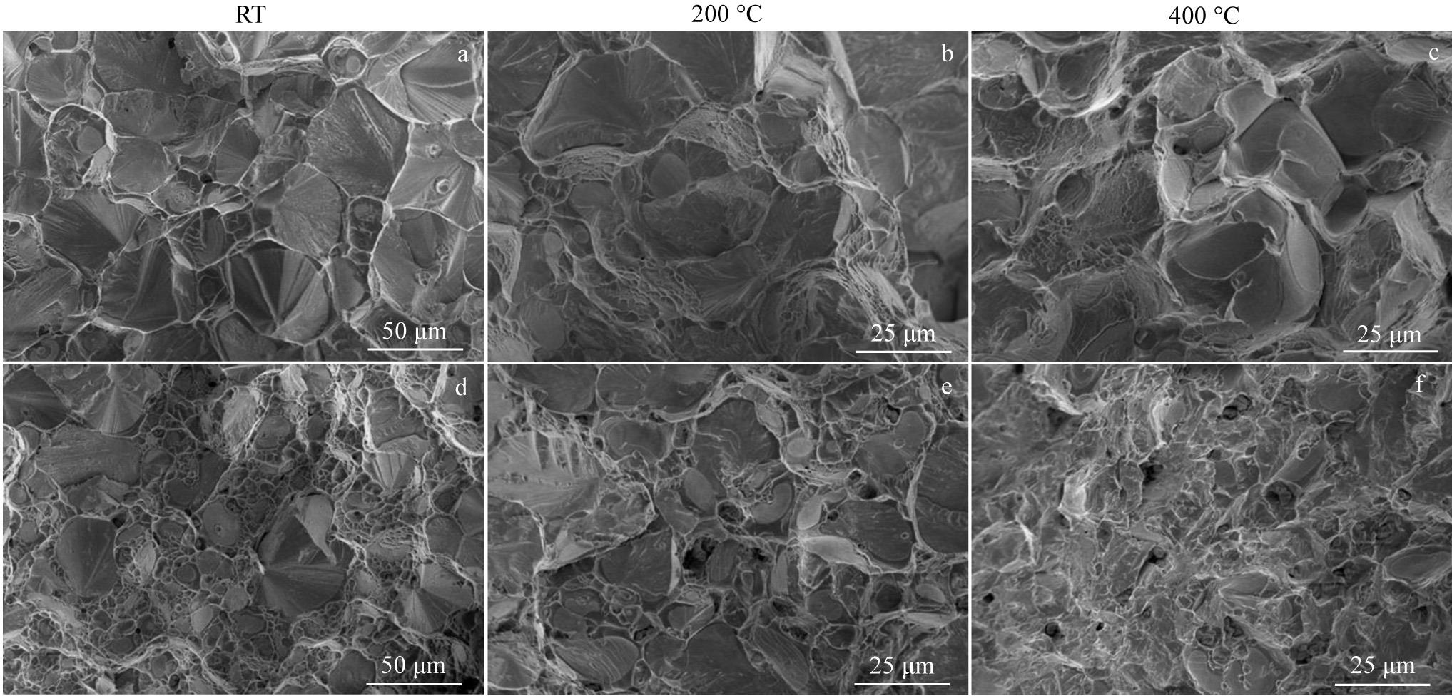 Abstract:The microstructure, tensile properties, and impact toughness of niobium-stabilized austenitic stainless steel with Si content of 0.076wt%–3.80wt% were characterized by OM, SEM, and TEM. The results show that variations in Si content exert minimal influence on grain size and primary NbC, and the formation of δ-ferrite is promoted as the Si content reaches 3.80wt%. The planar slip of dislocation is the dominant deformation mechanism of the three steels, and deformation-induced martensitic transformation is induced by the high local plastic strain in the slip band. The increase in Si content promotes the planar slip of dislocation, and the local plastic strain in the slip band is decreased, resulting in the suppression of the deformation-induced martensitic transformation. As a consequence, the transformation from massive martensite to fine lath martensite is promoted with the increase in Si content. The enhancement effect of Si addition on the tensile strength is due to the secondary strain hardening, which is caused by dislocation plane slip and deformation induced martensitic transformation. However, the increased probability of secondary crack formation at the NbC/austenite interface leads to the decrease in elongation. The increase in Si content reduces impact toughness. The decrease in slip band spacing can increase the nucleation sites of void, resulting in a decrease in crack initiation energy. At the same time, the increase in the number of martensite/austenite interfaces leads to a decrease in crack propagation energy.