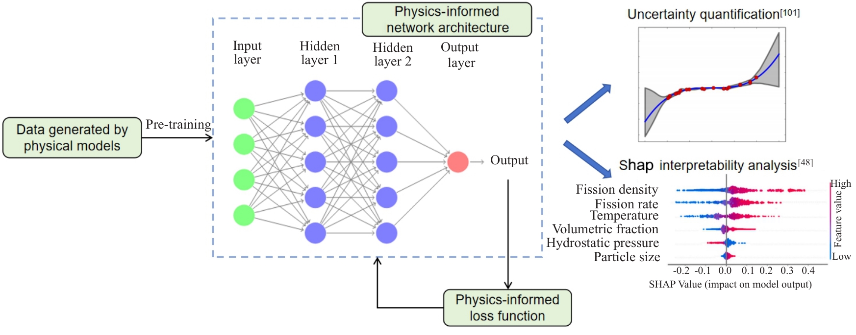 Abstract:With the rapid development of artificial intelligence (AI), its application in the field of nuclear fuel and materials is gradually becoming a new driving force for the advancement of nuclear energy technology. This article comprehensively reviews the current state of AI research in the field of nuclear fuel and materials and conducts an in-depth analysis of future development trends. It first introduces AI methods applied to scientific research, discussing from two aspects: network architecture and learning paradigms. Next it systematically summarizes the current state of AI applications in performance prediction at the material and structure levels of nuclear fuel materials, design optimization of materials and structures, and computer vision in fuel production and operation. The review then looks forward to the future development trends of the combination of AI with nuclear fuel and materials. At the algorithm level, it discusses methods to enhance the interpretability of machine learning models, quantify uncertainty, and the importance of limited supervised learning technology in reducing data requirements. At the application level, it discusses key technologies such as acceleration of multi-scale multi-physics field simulations, topological optimization and generative design, universal pre-trained models for nuclear material properties, and automated laboratories. Finally, several suggestions are proposed to further promote the application of AI in the field of nuclear fuel and materials.