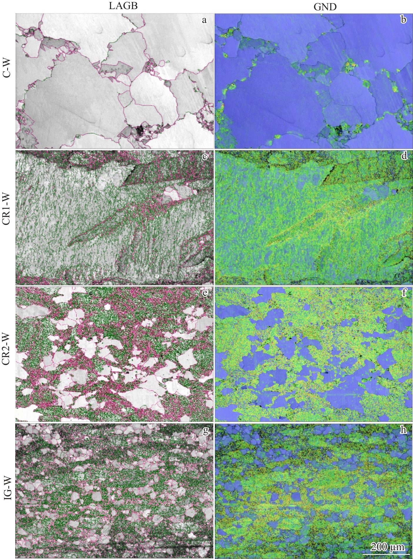 Abstract:The high heat load in nuclear fusion reactors constantly threatens the service safety of plasma-facing materials. Developing new tungsten materials resistant to transient thermal shock is crucial for advancing the application of fusion energy. This study breaks through the traditional commercial tungsten material preparation process of powder metallurgy billet and hot processing, and proposes an innovative process: first, billets are prepared via chemical vapor deposition (CVD), and then cross rolling is carried out. This process aims to prepare tungsten materials with superior performance. The microstructure, thermal conductivity, mechanical properties, and electron beam thermal shock of new and traditional tungsten materials with different rolling deformation rates were tested. The results indicate that tungsten with a low rolling deformation rate has <100>∥ND texture and exhibits high thermal conductivity. At the same time, the proportion of small angle grain boundaries between the grains of the material is as high as 78.8%, which lead to good comprehensive mechanical properties in the high temperature zone. Good thermal conductivity and mechanical properties result in a transient thermal shock cracking threshold of 0.44–0.55 GW/m2, significantly exceeding that of traditional materials.