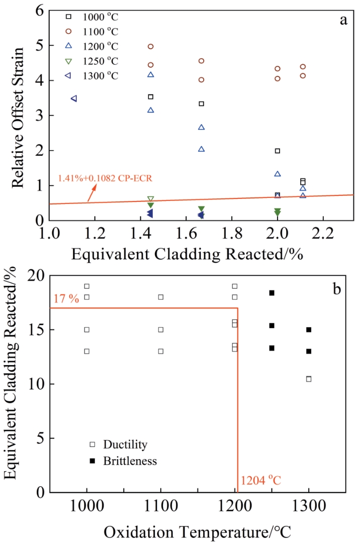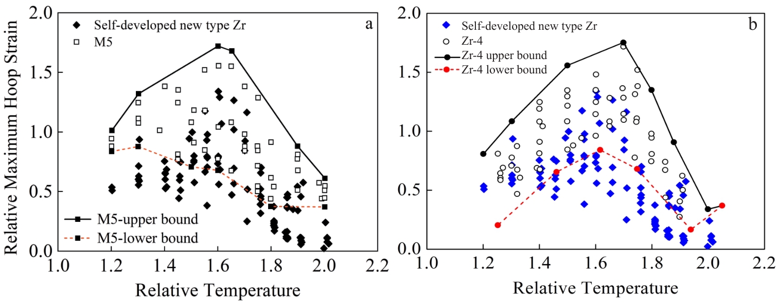 Abstract:High-temperature thermo-mechanical experiments were conducted to investigate the behavior of self-developed new type zirconium cladding under loss-of-coolant accident (LOCA) conditions, including high-temperature oxidation, high-temperature creep, high-temperature burst, and embrittlement experiment. Results show that the high-temperature oxidation rate of self-developed new type zirconium cladding is comparable to that of ZIRLO, M5, and Zr-4 cladding when the oxidation temperature exceeds 1000 °C, which can be estimated by Cathcart-Pawel model. Notably, the self-developed new type zirconium cladding exhibits significantly lower high-temperature creep-burst strain than M5 and Zr-4 cladding, which can decrease fuel assembly blockage during LOCA, thus contributing to a more favorable outcome in LOCA analysis. Additionally, the embrittlement criteria of the self-developed new type zirconium cladding meet the requirements of a peak cladding temperature of ≤1204 ℃ and the maximum cladding oxidation rate of ≤17%.