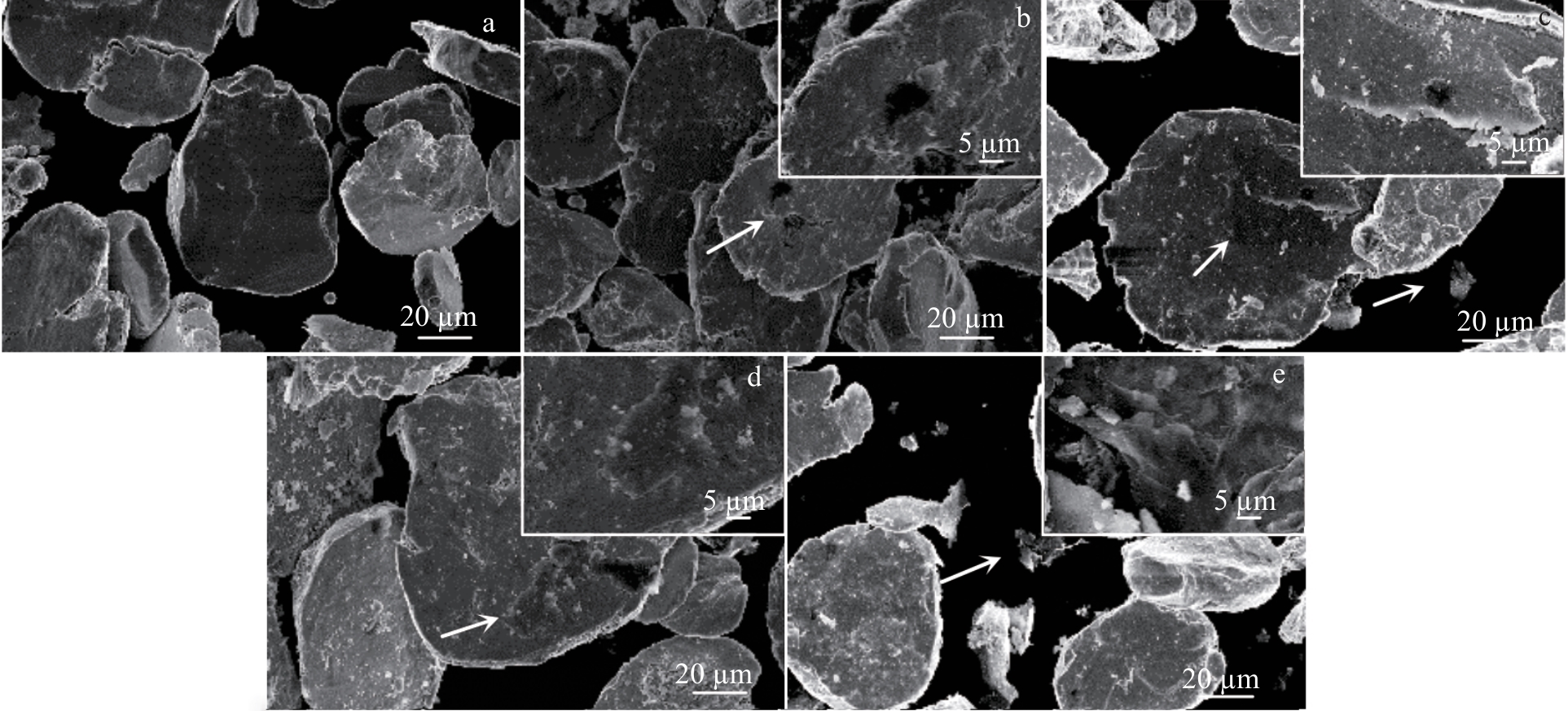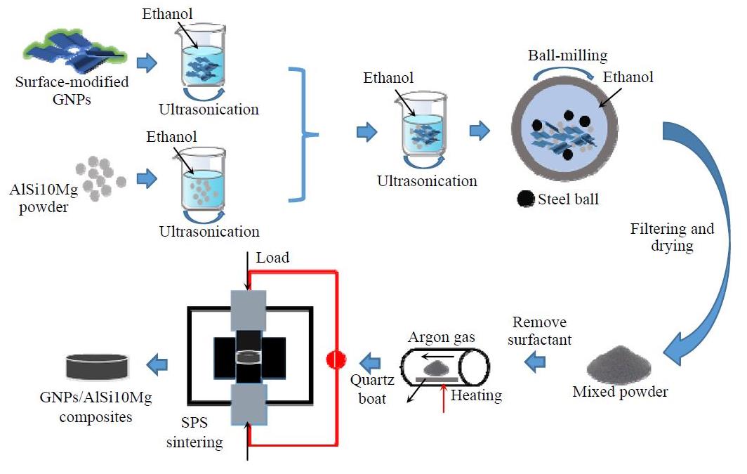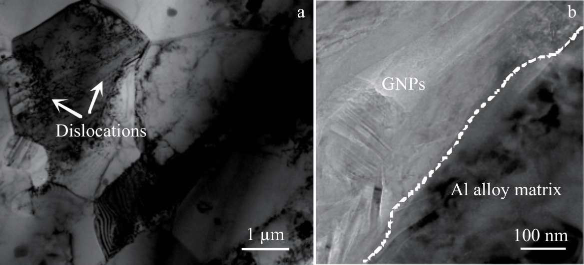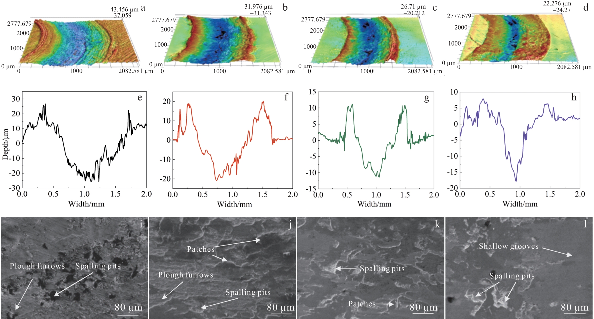 摘要:通过乙基纤维素(EC)对石墨烯纳米片(GNPs)表面改性,结合溶液超声分散和湿法球磨的方法,既实现GNPs和铝基体均匀混合,又抑制GNPs损伤,然后采用放电等离子快速烧结抑制界面反应,制备高耐磨的GNPs/AlSi10Mg复合材料。通过扫描电镜、透射电镜和摩擦试验机等设备对GNPs/AlSi10Mg复合材料的显微组织与耐磨性能进行表征分析,结果表明GNPs适量添加能有效提升复合材料的力学性能,GNPs添加量为0.5wt%时,复合材料的磨损率和摩擦系数最低,分别为7.8×10-4 mm3/(N·m)和0.417,磨损率较基体材料(10.9×10-4 mm3·N-1·m-1)降低了28.4%。GNPs/AlSi10Mg复合材料的磨损机制以磨粒磨损为主,伴随着轻微氧化磨损和粘着磨损。摩擦过程中复合材料试样与对偶接触时,在剪切力作用下GNPs露出表面形成薄膜,可作为润滑剂减少对偶与基体的接触点,防止过多的剥落和分层,起到保护基体的作用。