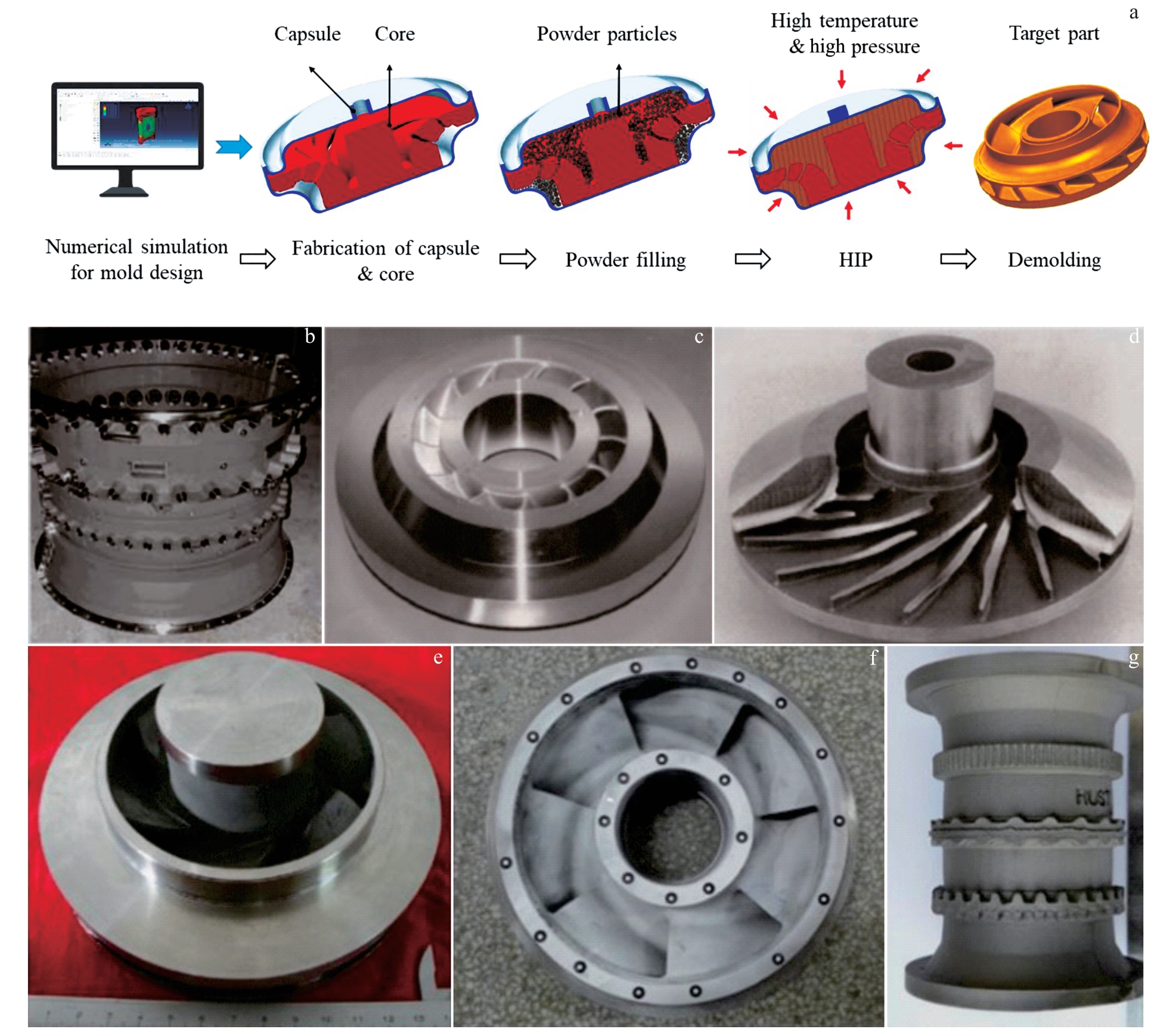 摘要:热等静压结合模具控形技术可实现复杂高性能零件近净成形,型芯是控制成形零件内部结构精度的关键。目前型芯主要采用金属材质,但金属型芯存在高温高压变形控形不准、酸腐蚀去除效率低环境不友好、异种元素扩散污染零件、成形粉末易嵌入导致表面质量差等问题,阻碍热等静压向复杂内腔结构零件成形发展。陶瓷型芯材料化学活性低、与金属元素不易互扩散、高温硬度与刚度高不易变形、碱性条件脱芯效率高,有望解决金属型芯引起的上述问题。本文依据铸造用陶瓷型芯领域的代表性文献和研究进展,重点分析了热等静压用陶瓷型芯力学性能和溶失性能间的协同关系。详细介绍和比对了氧化硅基、氧化铝基、氧化钙基、氧化镁基陶瓷用于热等静压型芯的力学性能、溶失性能、抗吸湿性等性能优化思路,以及其复杂高精度结构成形、烧结与后处理方法,并在此基础上展望了陶瓷型芯在热等静压近净成形工艺中的应用难点与发展方向。