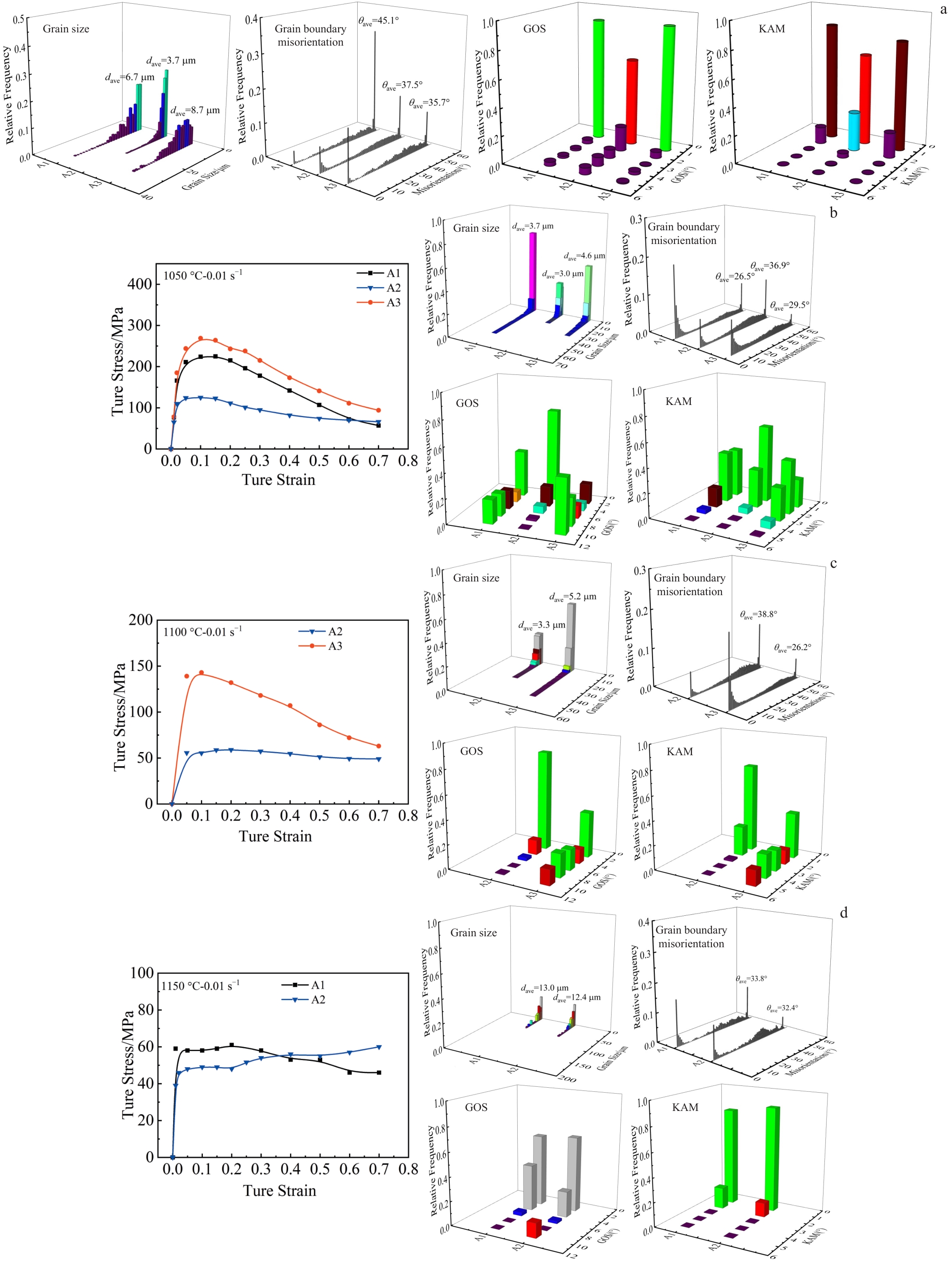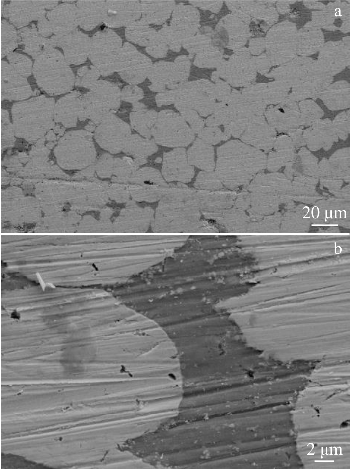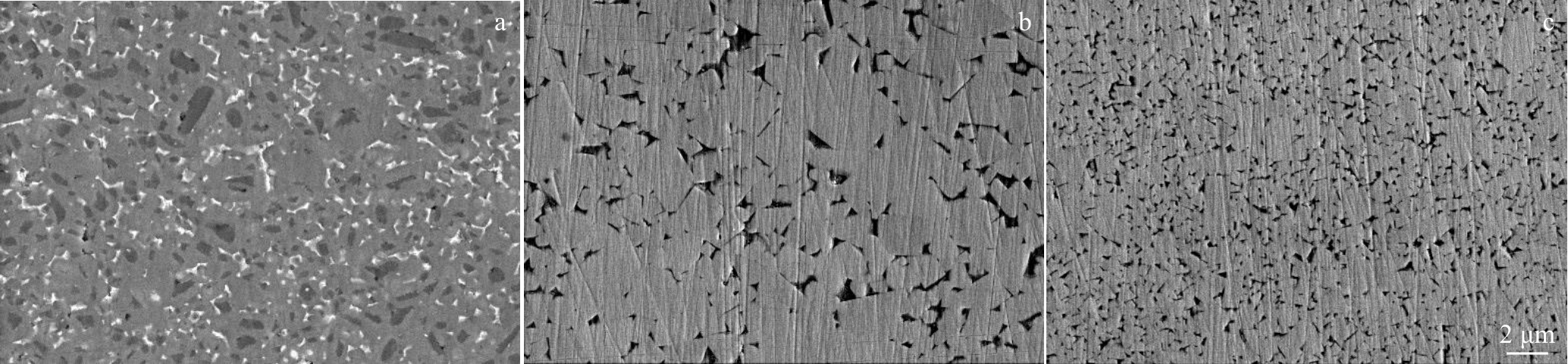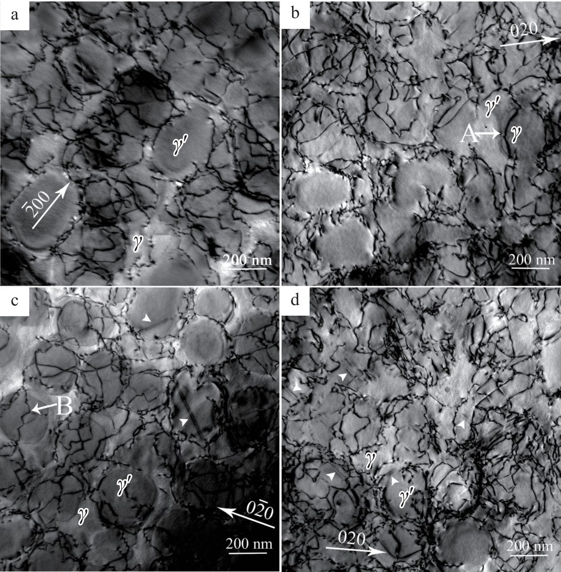 摘要:研究了热等静压(HIP,A1)、热等静压+1100 ℃热挤压(A2)、热等静压+1150 ℃热挤压(A3)3种不同热变形条件下的热压缩曲线和变形组织。结果表明:1100 ℃挤压的A2样品具有均匀的γ+γ′双相细晶粒组织,1050和1100 ℃条件下均表现出良好的热变形性能。在较大应变范围内,A2样品的真应力-真应变曲线保持了硬化-软化平衡状态,变形后平均晶粒尺寸5 μm。热等静压态A1样品和1150 ℃挤压A3样品在1050 ℃仍处于变形软化阶段,组织为原始粗大晶粒和细小再结晶晶粒的混合项链晶,样品的再结晶形核机制主要为应变诱发晶界弓弯形核。1150 ℃?0.001 s-1条件下,初始组织对热变形行为和变形后组织的影响相对较小,变形后组织为完全再结晶的晶粒。细晶组织有利于最大化合金的热变形潜力。通过合理地调控变形机制,可以获得细小均匀的变形组织。
