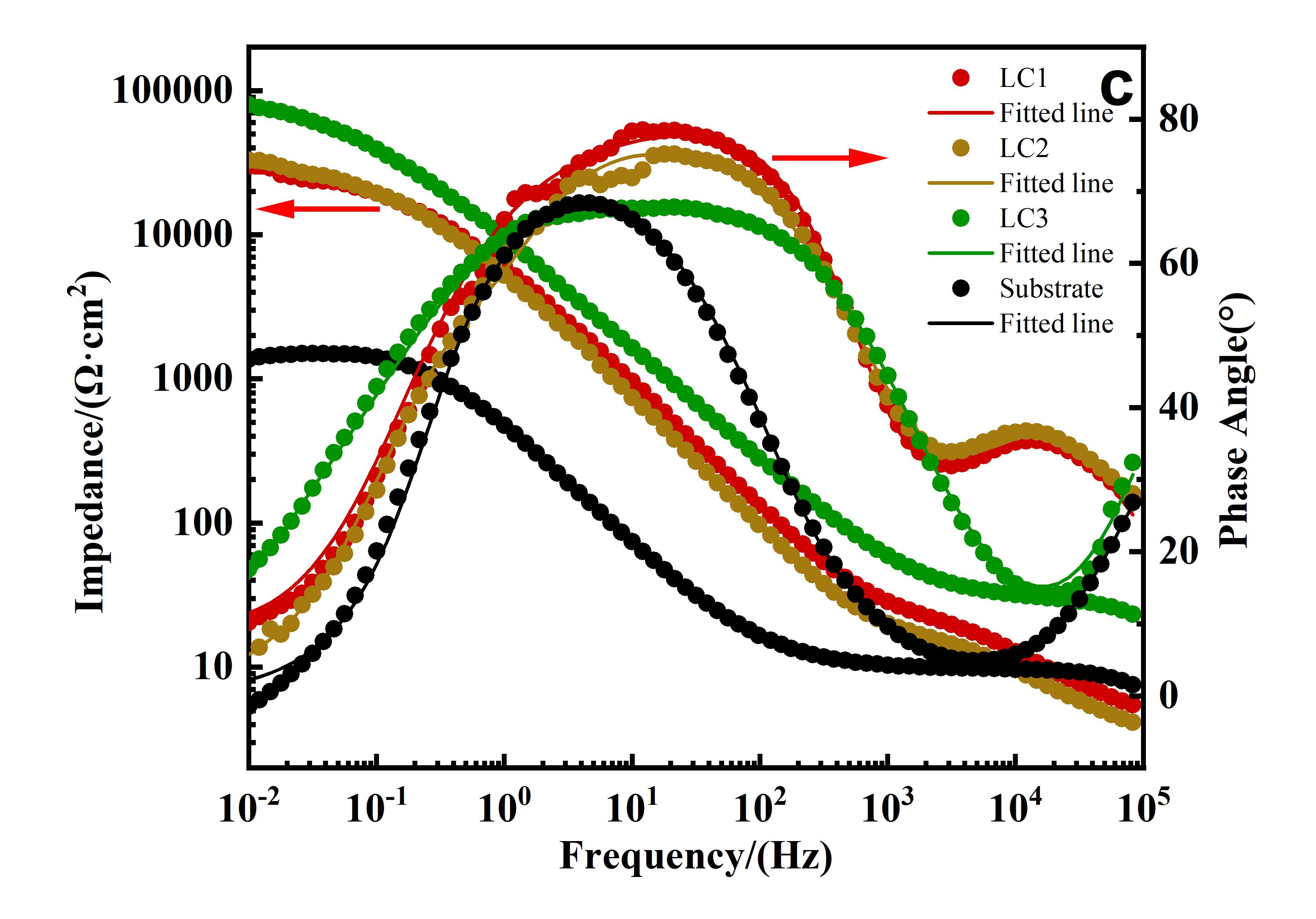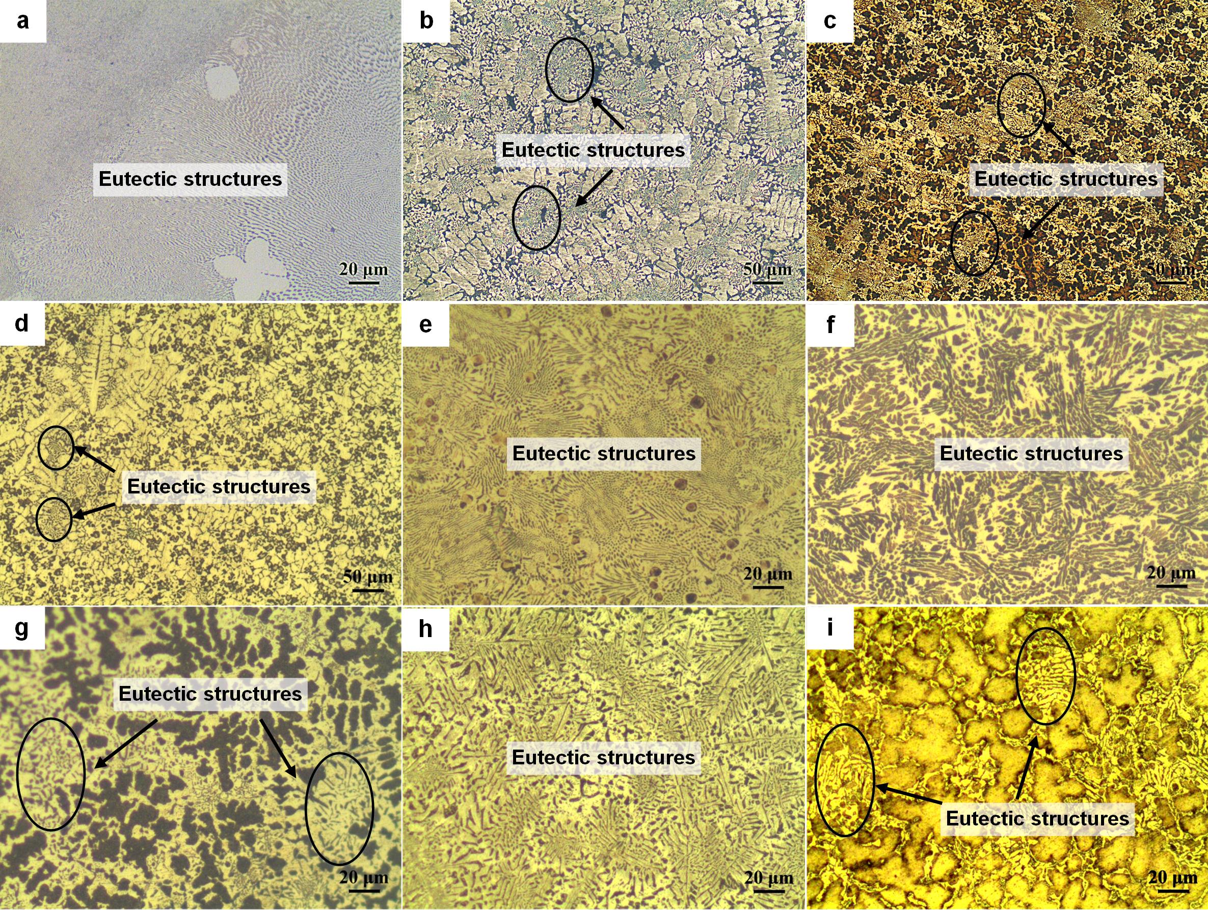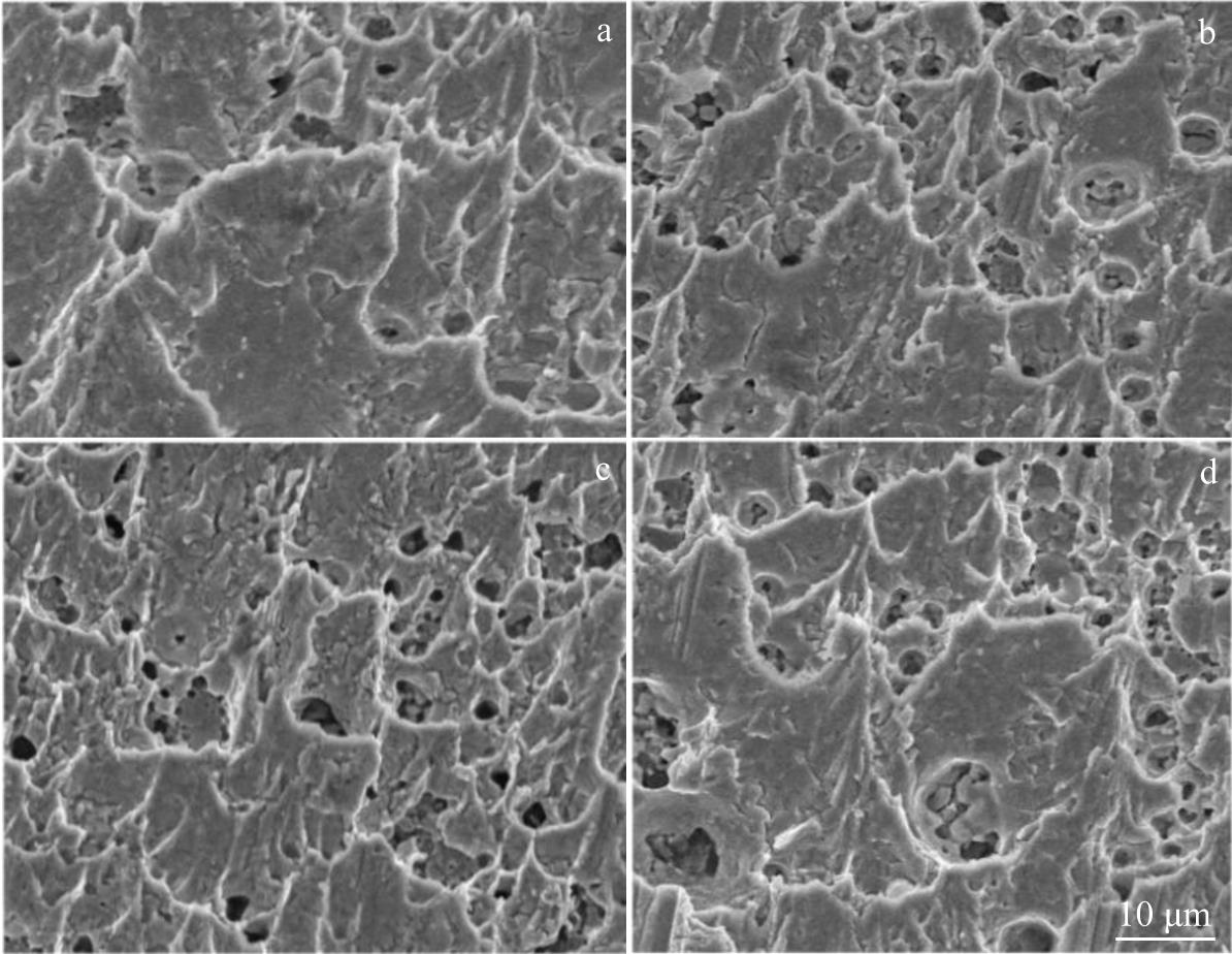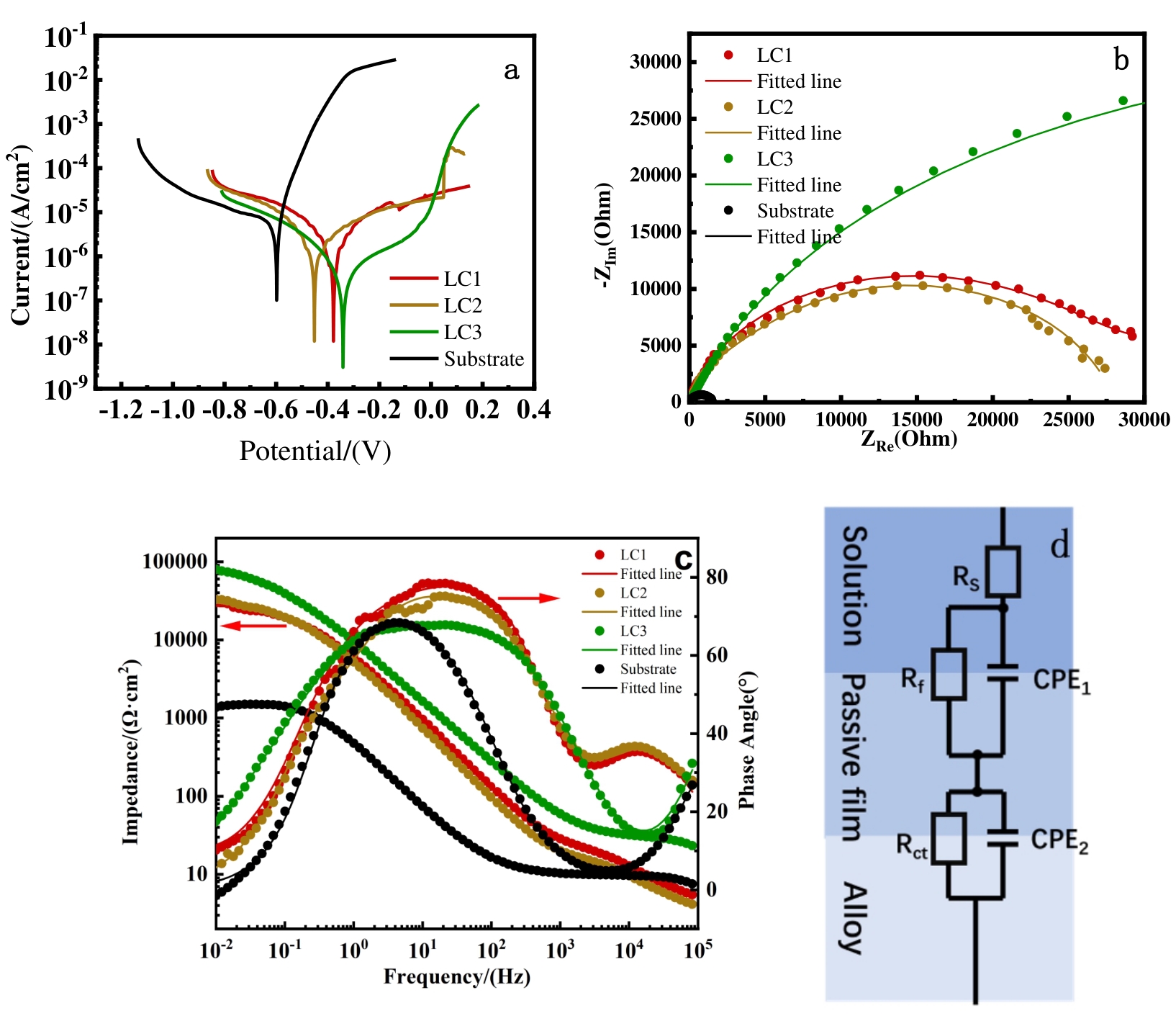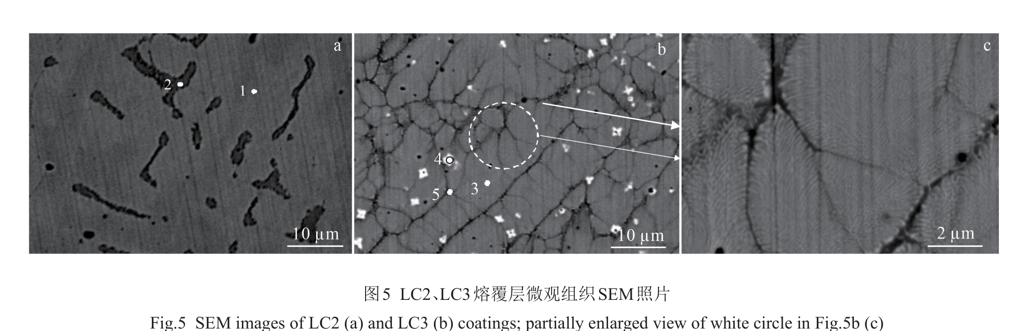 摘要:本工作采用激光熔覆技术在38CrMoAl表面制备中高熵合金涂层,研究了在CoCrNi系列合金中加入Al、Si、Fe、Nb等元素对合金涂层物相、组织和元素分布的影响,并对涂层的硬度、摩擦学和电化学性能进行分析表征。结果表明,CoCrNi合金是面心立方(fcc)晶体结构,Al、Fe的加入促使体心立方(bcc)相的形成;继续加入Nb、Si元素后七元合金涂层中形成了Laves/bcc共晶+富Nb的复合相,并且组织得到明显细化。CoCrNi系中高熵合金涂层综合性能均优于38CrMoAl基体。相较于CoCrNi和 AlCoCrFeNi合金涂层,AlSiCoCrFeNiNb涂层的硬度、耐磨性和耐蚀性能都有较大提升:表层硬度为713.3 HV0.1,是基体的3.24倍;磨损机制主要为轻微的磨粒磨损和黏着磨损,平均摩擦系数为0.52,磨损率为115.73×10-12 mm3/(N·m),比基体减少了64.4%;自腐蚀电位Ecorr=–0.3392 V,自腐蚀电流密度Icorr=0.472 μA·cm-2。