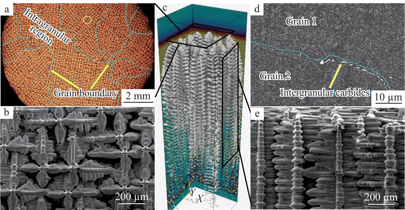 摘要:定向凝固高温合金因具有较高的高温强度和抗蠕变性能、耐腐蚀和抗氧化性能,以及良好的组织稳定性和铸造性能,广泛应用于工业燃气轮机等先进动力推进系统的涡轮叶片等部件。燃气轮机用定向凝固高温合金通过调整不同固溶强化、沉淀强化和晶界强化元素的比例,由第1代发展到第4代定向凝固合金。其晶内主要由γ相、γ?相组成,在晶界处存在碳化物、硼化物等能够钉扎晶界的析出相。在这些强化相的共同影响下,镍基定向凝固高温合金具有较好的随温度而改变的拉伸性能和抗蠕变性能。本文结合定向凝固高温合金在燃气轮机的应用现状,从成分特征、组织结构特征入手,进一步分析了其性能特征,并对未来定向凝固高温合金的研究进行了展望。