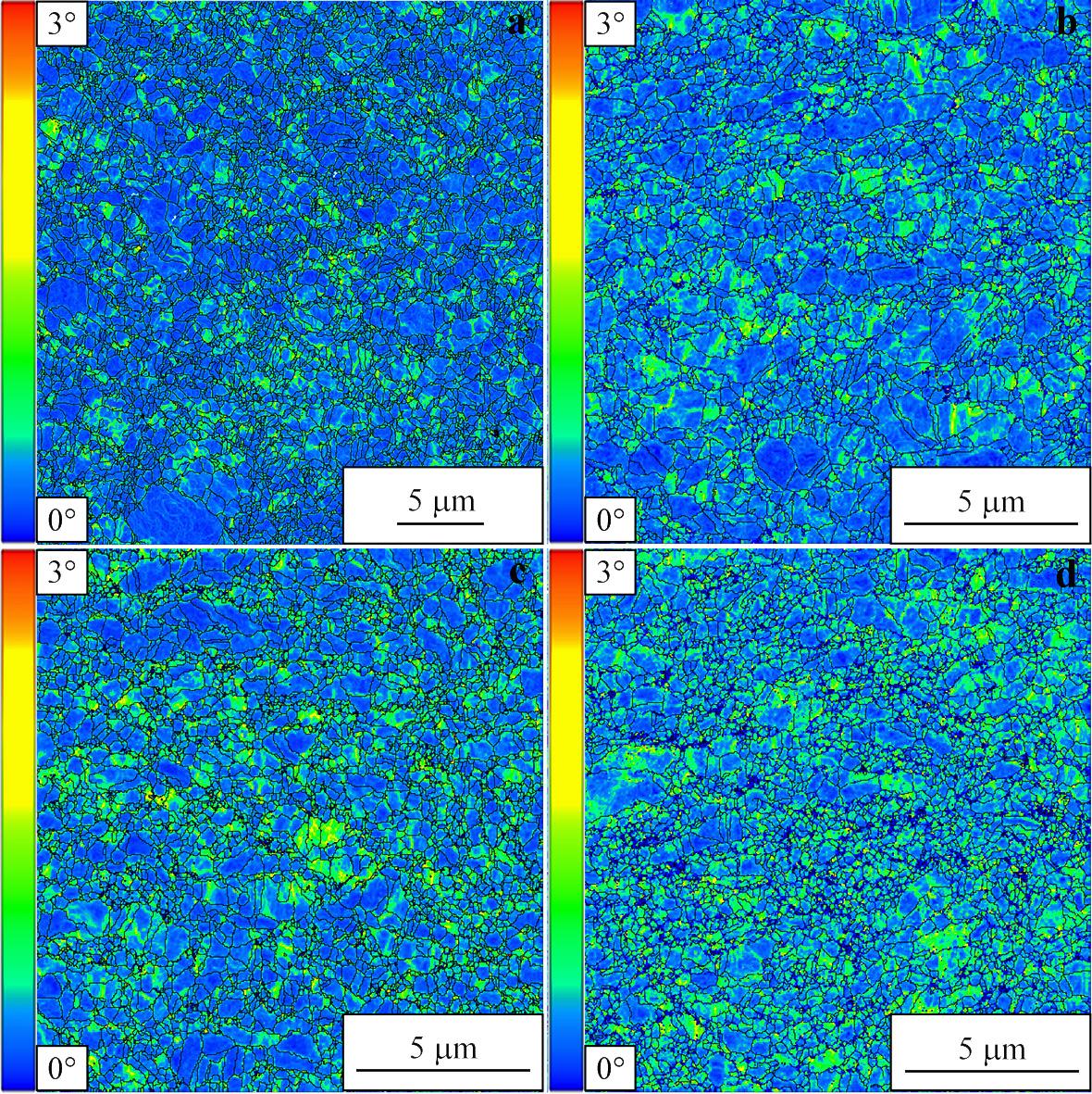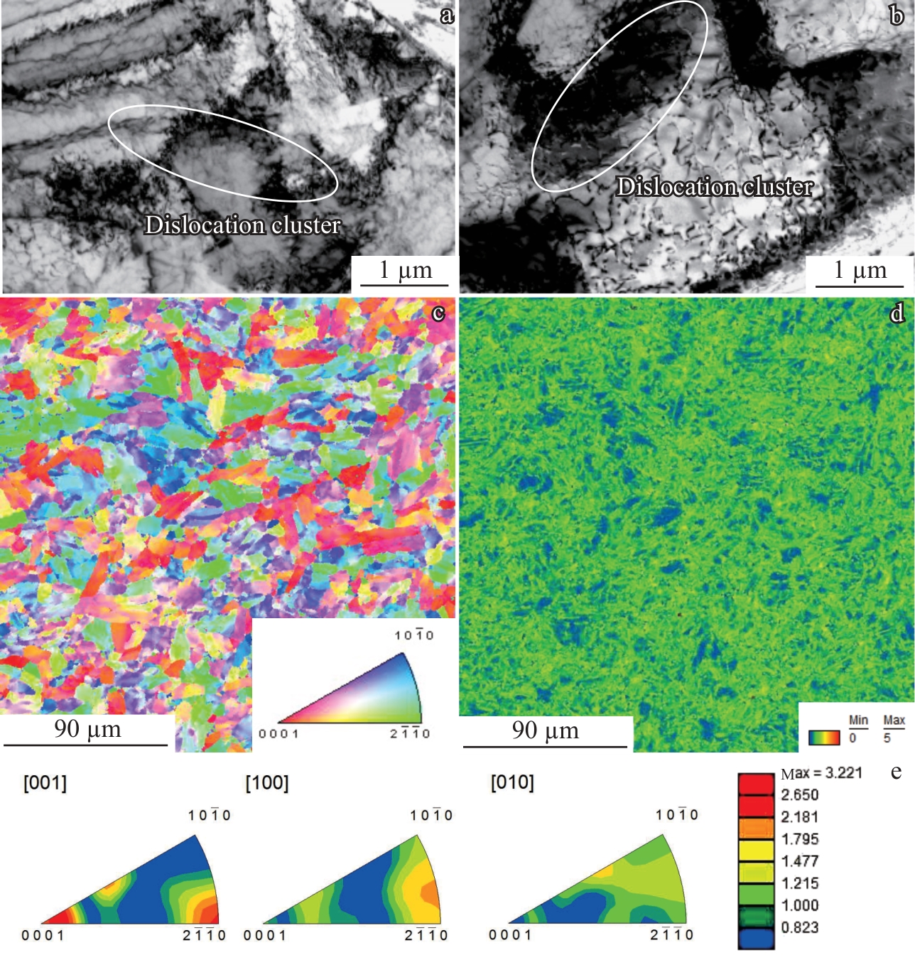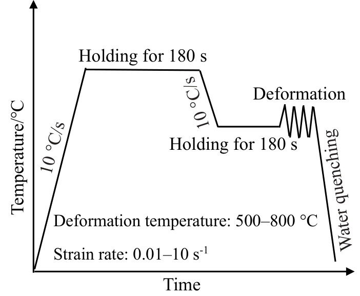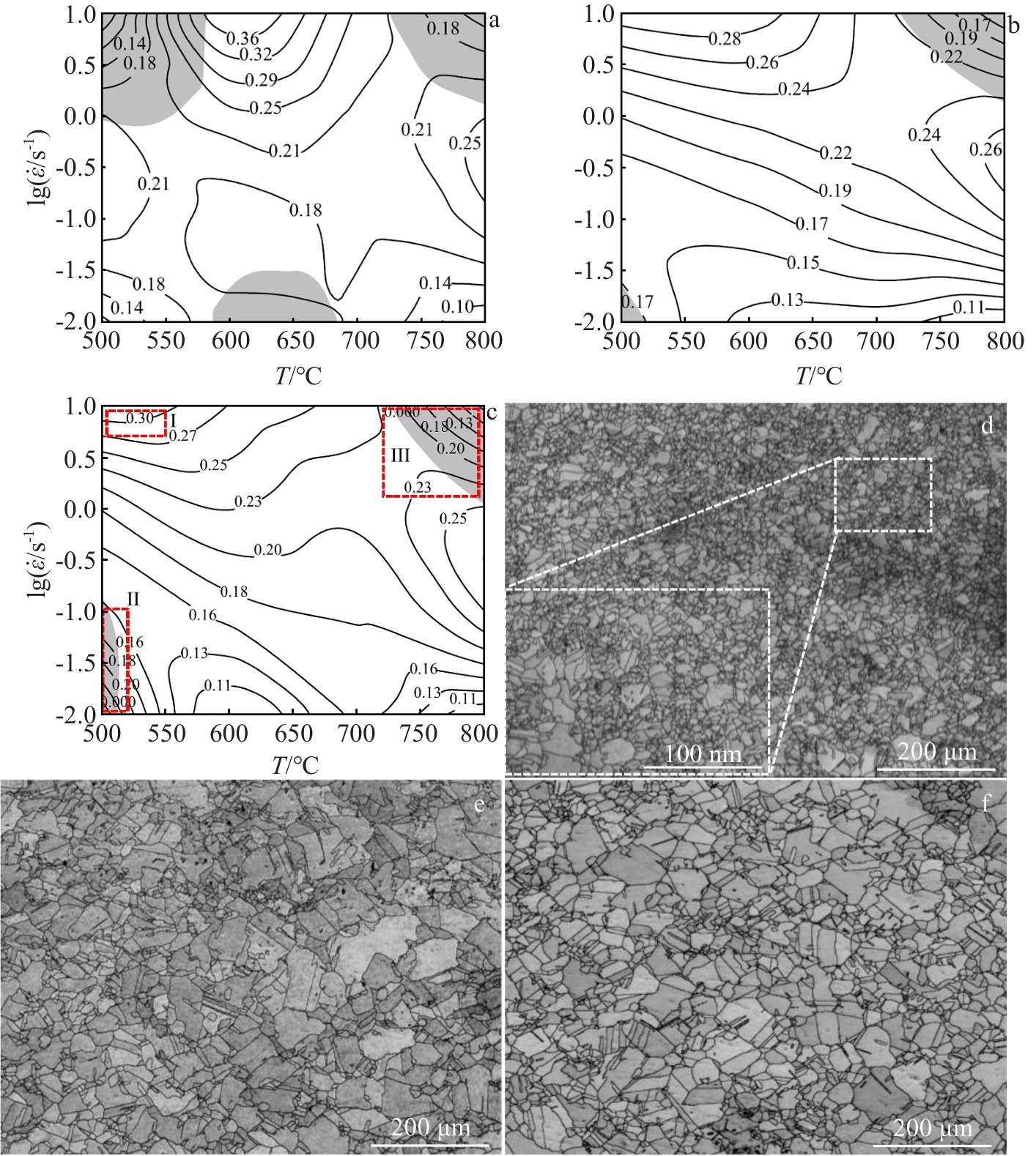 摘要:在变形量70%的条件下,通过Gleeble-3500热模拟试验机研究了电解铜在500~800 ℃和0.01~10 s-1范围内的热变形行为。分析电解铜在热变形过程中各变形参数下的真应力-真应变曲线,建立了应变为0.5时的本构方程。在Prasad提出的动态材料模型基础上建立了不同应变下的加工图。同时,采用电子背散射对压缩后的试样进行微观组织观察与分析。结果表明:电解铜在高温塑性变形过程中对变形温度和应变速率表现出较强的敏感性,随着温度的升高和应变速率的降低,流变应力逐渐减小。根据加工图确定了电解铜的加工条件为变形温度600~650 ℃,应变速率5~10 s-1。电解铜在高温塑性变形过程中发生了不连续动态再结晶,在低温高应变速率下,晶粒明显细化。