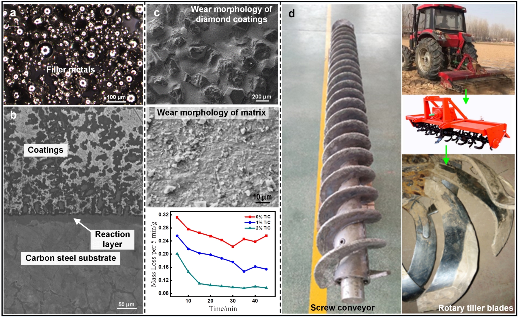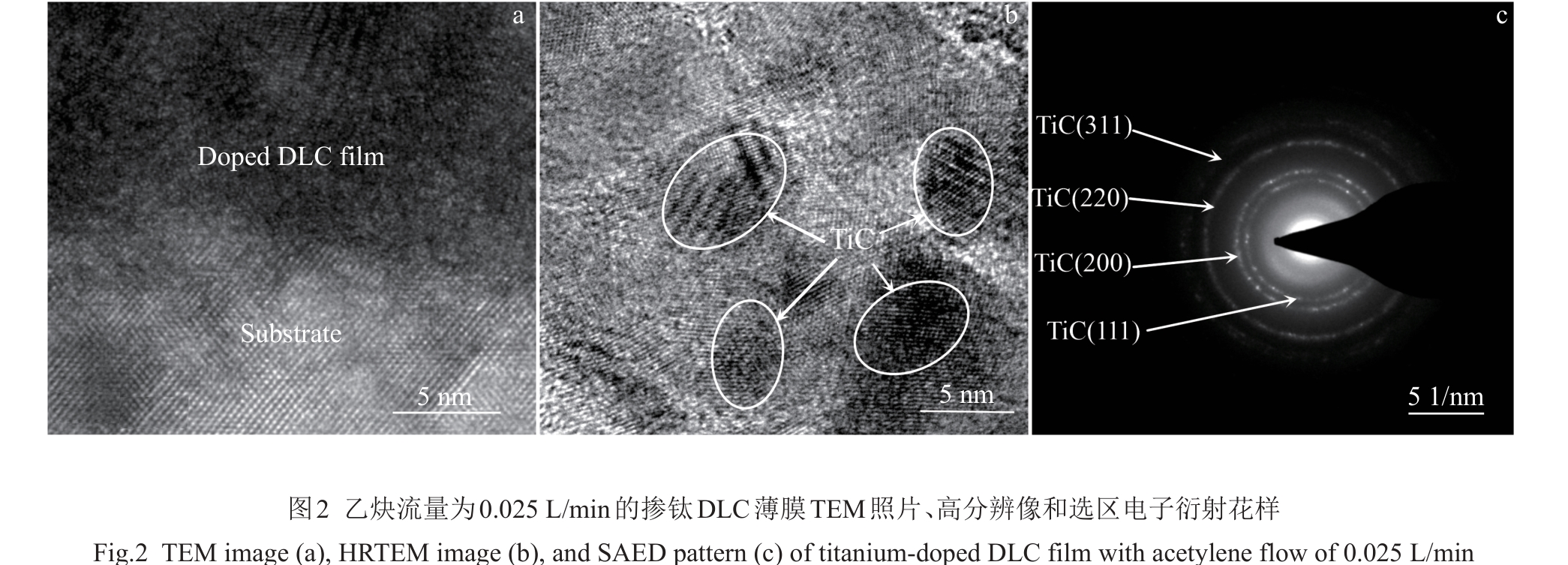 摘要:本研究基于表面工程与复合多元结构设计理念,采用微波等离子体增强磁控溅射技术在钛合金螺纹紧固件表面制备了掺钛造金刚石(diamond-like carbon, DLC)薄膜,通过调控乙炔流量制备不同结构和性能的掺钛DLC复合薄膜。利用透射电子显微镜分析掺钛DLC薄膜微观形貌,通过XRD、拉曼光谱仪、台阶仪、纳米压痕仪、摩擦实验机等分析掺钛DLC复合薄膜的组织结构、残余应力、纳米硬度、膜基结合力和摩擦磨损特性。研究结果显示,掺钛DLC薄膜中生成了TiC晶相,合适乙炔流量能够有效降低薄膜的内应力,薄膜中sp3键的比例随着乙炔流量的增大逐渐降低。乙炔流量为0.025 L/min的掺钛DLC复合薄膜的硬度(H)和弹性模量(E)较高,H/E和塑性指数(H3/E2)最大,具有较高的韧性,可以抵抗压头的划擦,因此划痕中薄膜保持良好的附着,同时具有最优异的耐磨损性能,可有效提高钛合金紧固件的使用寿命。