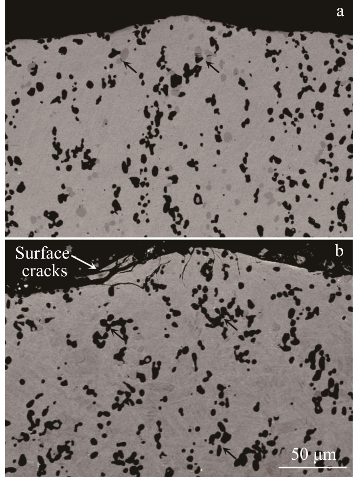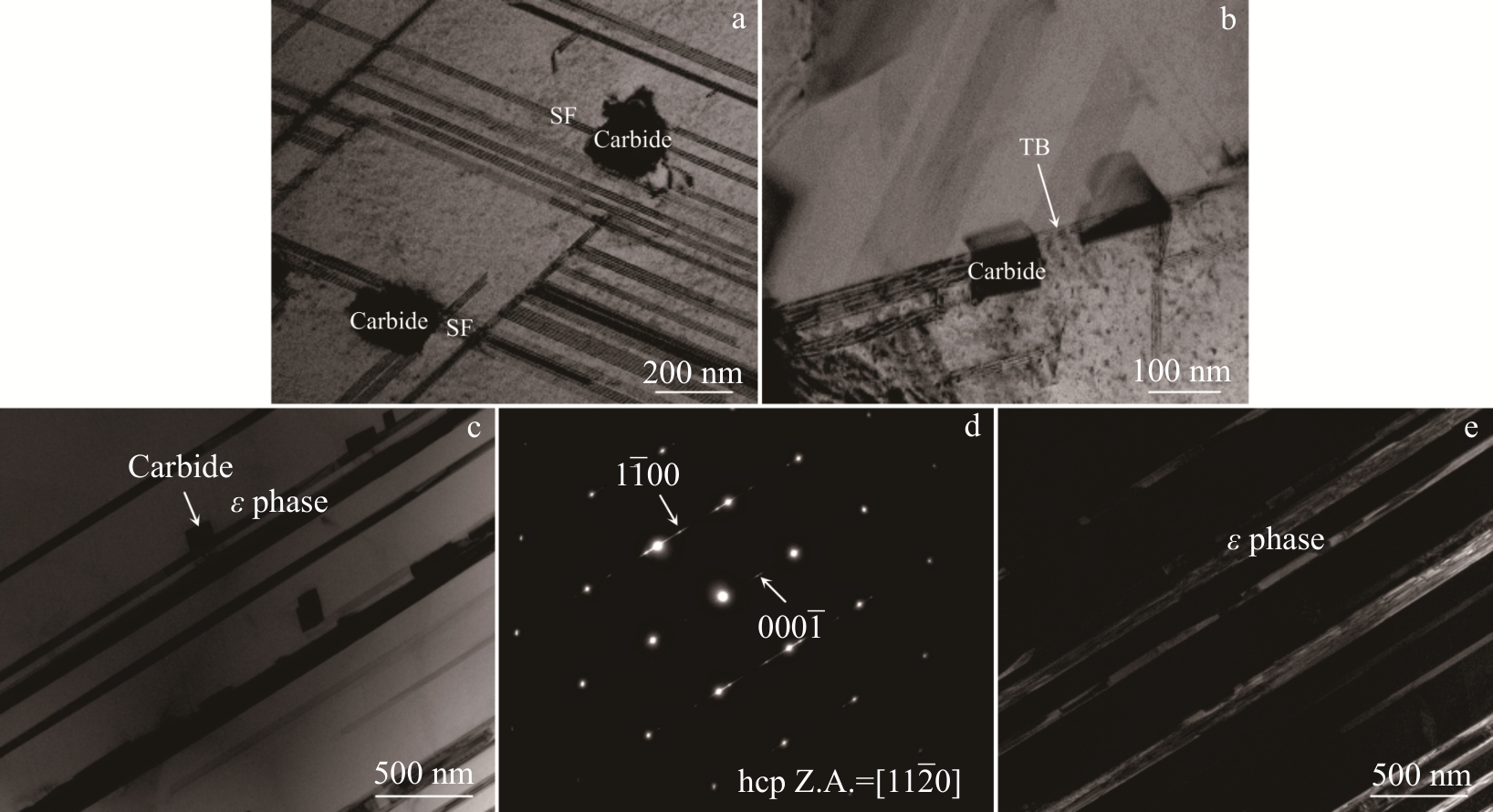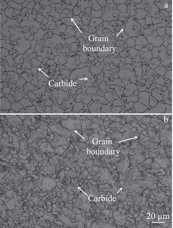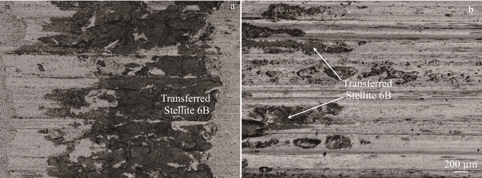 摘要:试验测定了固溶和固溶+时效态Stellite 6B合金室温环境下的冲击韧性和与GH5605合金配副滑动磨损行为,利用Thermal-Calc软件、OM、SEM和TEM等方法分析研究了其固溶和时效态微观组织、冲击断口、磨损表面和截面特征。结果发现,固溶后进行时效处理显著降低了Stellite 6B合金的磨损率,使其磨损量减少了约70%;但时效态合金的冲击韧性仅为固溶态的30%。分析表明,固溶Stellite 6B合金的磨损机制主要是黏着磨损,黏着结合层在其基体内剪断剥离;时效处理增加了马氏体相变倾向,显著提高了抗黏着磨损能力,磨损机制为少量黏着磨损+长时疲劳磨损。由于晶界碳化物是影响时效态合金冲击韧性的主要因素,增加基体马氏体相变倾向、减少碳化物总量并抑制二次碳化物沿晶界析出是综合改善Stellite 6B合金抗黏着磨损性能和冲击韧性的工艺及成分优化方向。