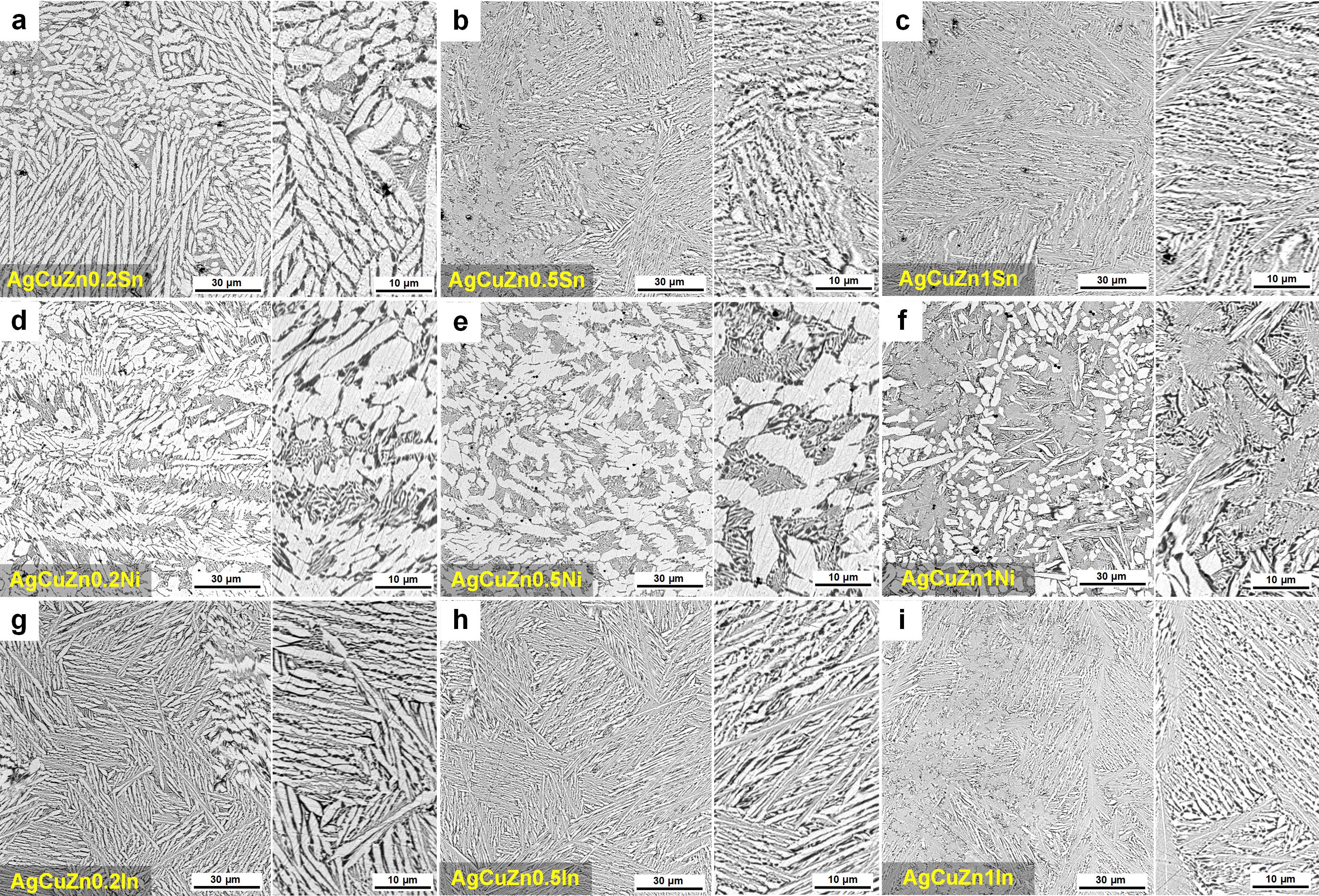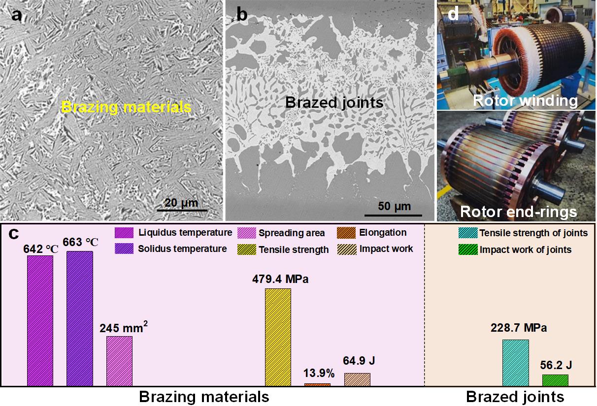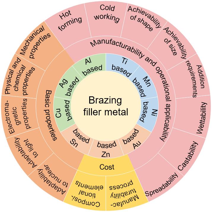 摘要:钎焊材料应用广泛,在异质结构连接中发挥着工业万能胶的作用。新结构和新材料层出不穷,所需要的新型钎焊材料越来越多。研究钎料成分优化设计方法,形成钎料系统性设计准则意义重大。从应用钎料基本性能、成形加工性和综合成本三维视角出发,阐明了钎料成分设计的基本规则。本研究中钎料本构性能包括钎料机械性能、物理化学性能、电磁性能、耐蚀性能与钎焊作业时钎料的润湿性和流铺性。成型加工性包括熔炼、铸造工艺,挤压、轧制、拉拔、制环工艺,制粒、制粉和非晶微晶成型工艺。成本指材料价值和制造成本之和。提高钎料综合性能需要全面系统考量设计指标,突出钎料特色要聚焦相应技术指标,二元或三元共晶组织可以有效提高钎料流铺性,固溶体组织有利于钎料成形。采用所提出的设计准则,设计了典型的Ag基、Cu基、Zn基、Sn基钎料,并在重大科学工程中得到成功应用。