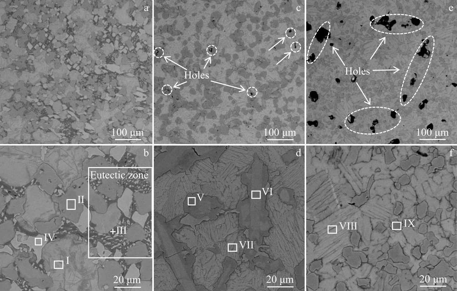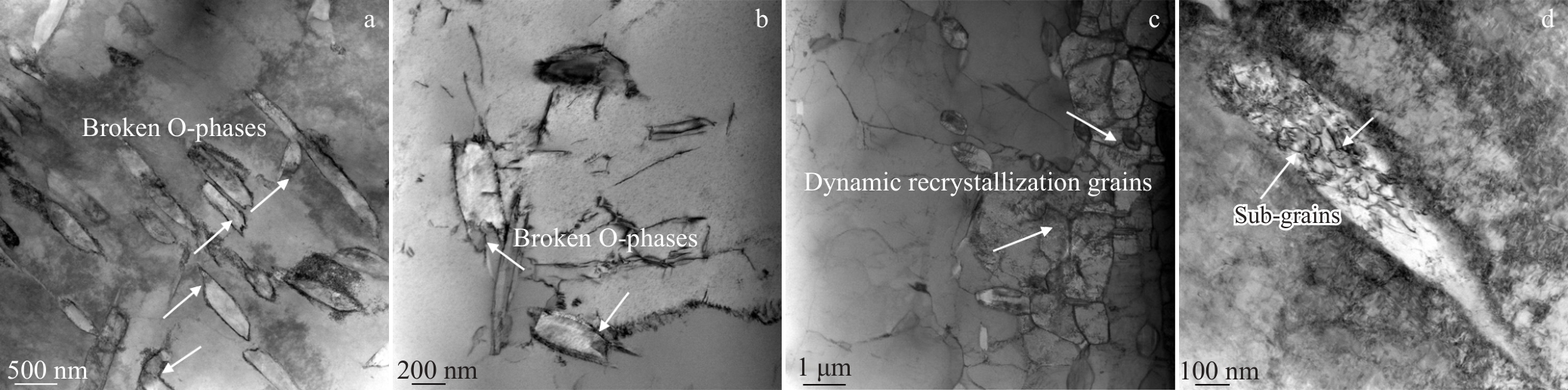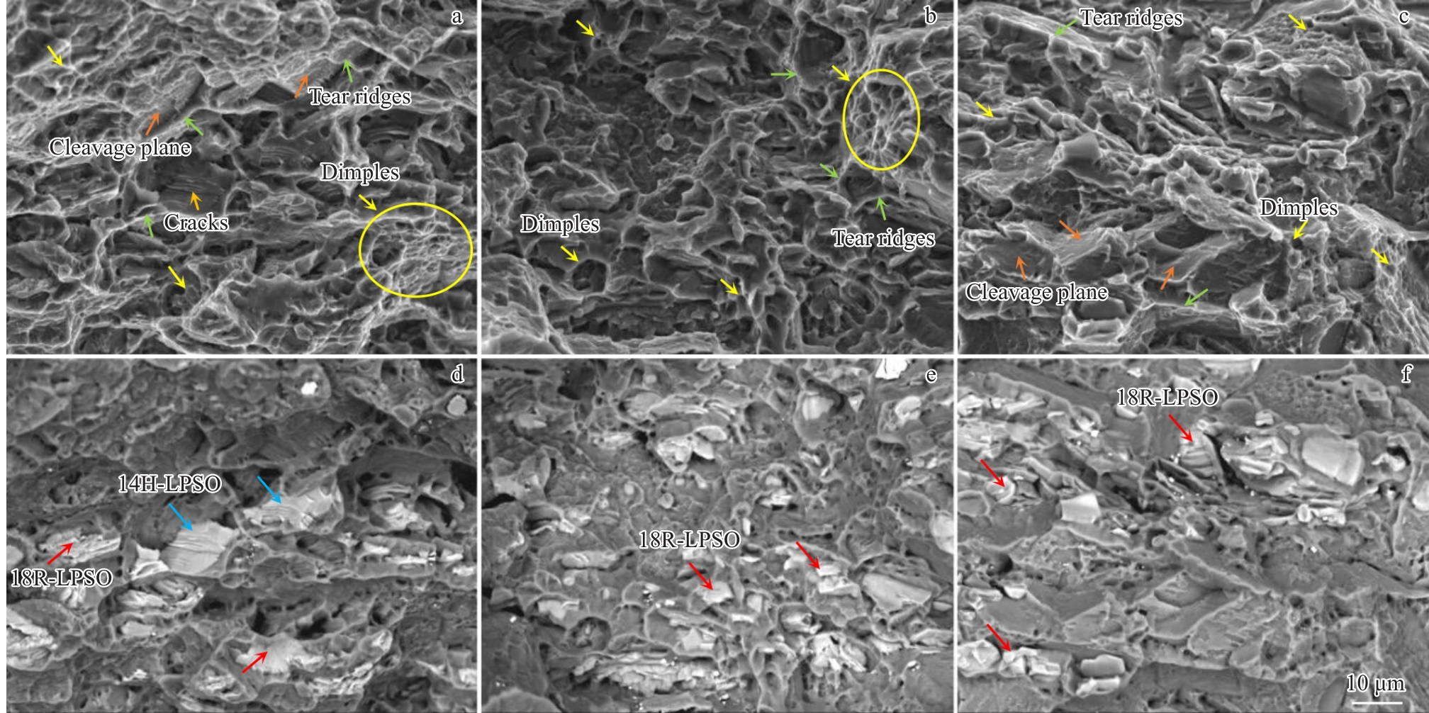 Abstract:The effects of solid solution and aging treatments on the microstructural evolution and hardness of the GWZ932 alloy in the rolled state were investigated by means of optical microscope, X-ray diffractometer, Vickers hardness tester, scanning electron microscope, transmission electron microscope, and high-angle annular dark-field scanning transmission electron microscope. The results show that the alloy microstructure in the rolled state mainly consists of α-Mg, massive 18R-LPSO phase, lamellar 14H-LPSO phase, rare-earth-rich phase and Zn-Zr phase. The lamellar 14H-LPSO is almost completely dissolved into the matrix by solid solution treatment at 500 ℃ for 2 h; the elongated acicular 14H-LPSO is precipitated from the α-Mg matrix after 4 h of solid solution, and its volume fraction gradually increases with the extension of time; the volume fraction of acicular 14H-LPSO reaches 16% after 6 h of solid solution; the acicular 14H-LPSO phase dissolves and re-precipitates the lamellar 14H-LPSO (about 14.9 μm in length and 8.2 μm in width), and a small amount of undissolved acicular 14H-LPSO phase grows to form rod-like 14H-LPSO (23.4 μm in length and 1.98 μm in width). Increasing the solid solution temperature to 520 ℃, the solute atom diffusion rate is accelerated, thus the complete dissolution and re-precipitation time of lamellar 14H-LPSO is advanced to 1 and 2 h, respectively, and the size of the re-precipitated lamellar 14H-LPSO phase (12.6 μm in length, 5.1 μm in width) is smaller than that of the re-precipitated one after solid solution at 500 ℃ for 8 h. Precipitation and transformation do not occur during solid solution treatment at 520 ℃, indicating that the precipitation and dissolution of the acicular 14H-LPSO phase and its content are affected by the solid solution temperature and time. The age-hardening curves reach peak hardness under conditions of 520 ℃, 4 h+225 ℃, 64 h. On this basis, the age-hardening behaviour of the alloy after solution treatment at 520 ℃ for 4 h was investigated and the results show that the alloy reaches peak hardness after age treatment at 225 ℃ for 64 h. The room-temperature tensile strength (UTS), yield strength (YS) and elongation (EL) of the alloy under peak aging conditions are 396.3 MPa, 274 MPa, and 12.7% increase by 23.8%, 7.4%, and 69.3%, compared to those of the rolled state, respectively. The excellent strength and plasticity of the alloys arise from the precipitation of a columnar β'' phase (about 28.9 nm in length and 8.9 nm in width with an average area fraction of about 11.7%) and a basal 18R-LPSO/γ'' phase in the α-Mg matrix.