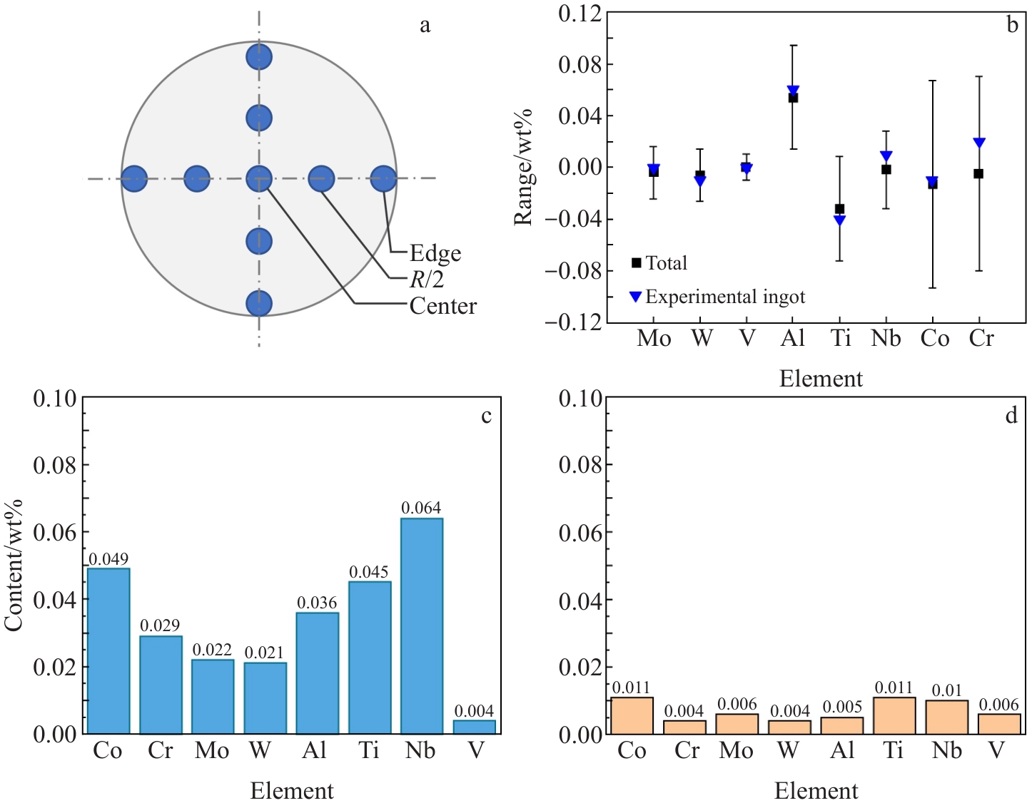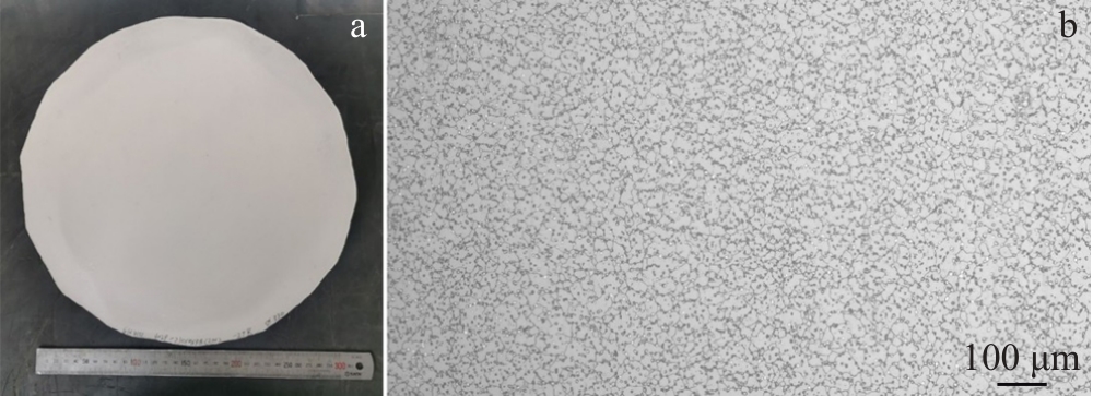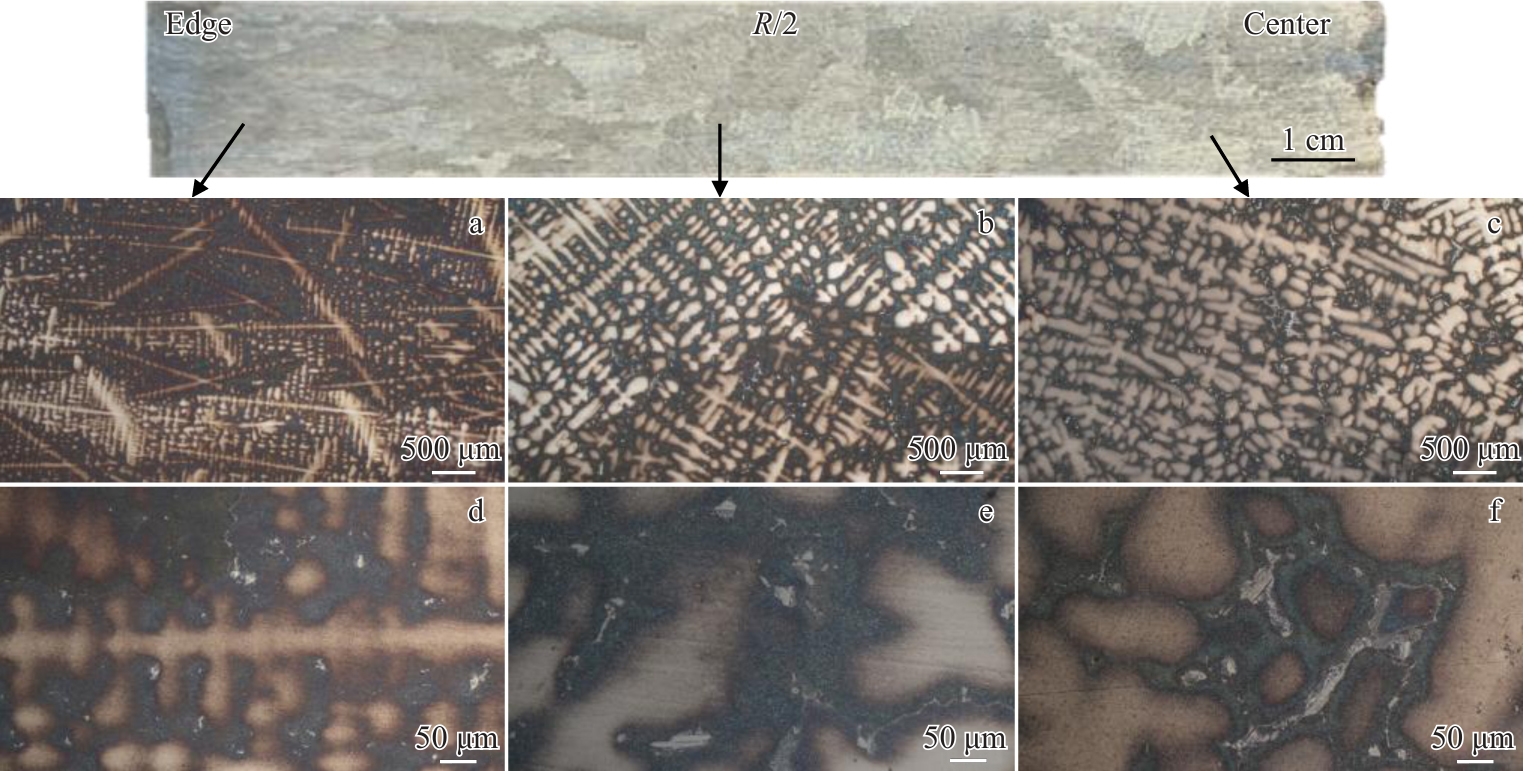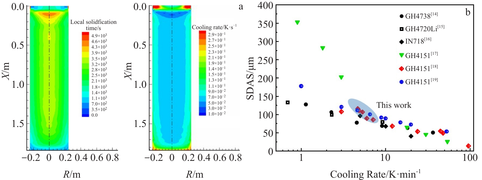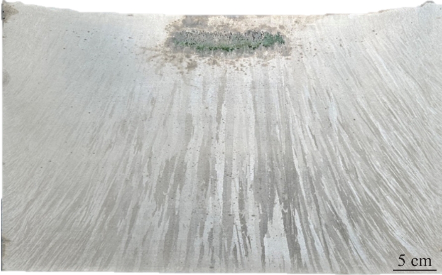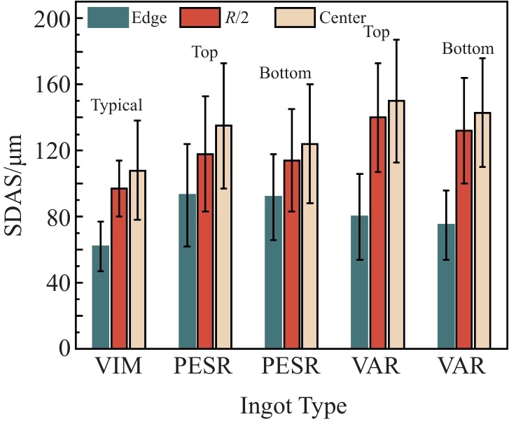 Abstract:GH4151 is a new type of wrought superalloy used for aero-engine turbine discs. This superalloy has high-content strengthening elements, complex solidification behavior, and high cracking tendency, making it difficult to produce ingots with large size. In this study, the 2-ton GH4151 superalloy ingot with a diameter of 508 mm was prepared by the triple melting process. The solidification microstructure of the ingot was analyzed, and the composition uniformity of the ingot was evaluated. Industrial experiment show that a crack free ingot can be obtained, and the secondary dendrite arm spacings from the ingot edge to the center are 80 and 150 μm, respectively. The composition at the top and bottom of the ingot shows a good uniformity in transverse sections. The range of elements Co, Cr, W, and Mo is within 0.05wt%, and the range of the element Nb is lower than 0.07wt%. However, the variation for Al and Ti are relatively large, due to the melting loss in the axial direction. After homogenization, the segregation coefficients of the alloying elements can be controlled between 0.8 and 1.2. Superalloy bars with a diameter of 300 mm were prepared through free forging. The microstructure, properties, and flaw detection of the bars can meet the technical requirements, verifying that the prepared ingot has satisfactory metallurgical quality.