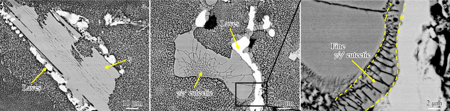 Abstract:Waspaloy alloy is widely used in aerospace applications, particularly in gas turbines operating under extreme service conditions. The effects of solid solution duration and temperature on the microstructure and mechanical properties of a Waspaloy low-pressure turbine (LPT) case in in-service aero-engines were investigated via on-site metallographic replication techniques and laboratory verification tests. The results show that excessive solid solution treatment (1010 °C/11 h) has no adverse impact on the microstructure or grain size of the LPT cases. The alloy exhibits low sensitivity to solid solution duration. As the solid solution duration is prolonged from 4 h to 20 h, the grain size remains unchanged, and the grain morphology remains essentially consistent. Only a gradual decrease in the number of twins in the microstructure and a gradual increase in proportion of fine strengthening phases are observed. In contrast, the alloy is highly sensitive to solid solution temperature. When the solid solution temperature increases from 1010 °C to 1040 and 1070 °C, the grain size increases from Grade 7.5 to Grade 6.5 and to grade 3.0, respectively. Simultaneously, the primary strengthening phases within austenite grains are fully replaced by secondary ones. Additionally, M23C6 carbides at γ phase grain boundaries transition from isolated island-like morphologies (at low temperature) to elongated strip-like morphologies (at high temperature). Simultaneously, both the quantity and size of the intragranular MC carbides significantly increase. The microhardness and mechanical properties of the alloy are predominantly governed by the scale of strengthening phases and grain size. With the prolongation of solid solution duration, the microhardness, tensile strength, and yield strength progressively increase. However, as the solid solution temperature rises, these properties increase first and then decrease.