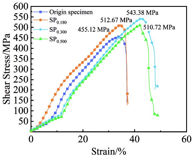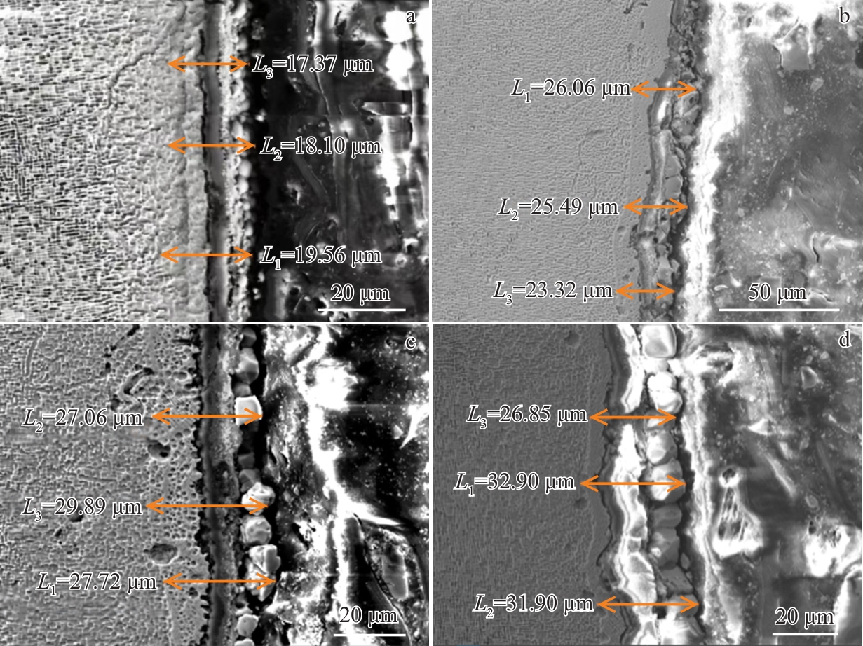 Abstract:Based on the surface shot peening treatment of Hastelloy X, this study investigated the impact of shot peening on the interfacial element diffusion and properties of wide-gap brazing joints. The microstructure and mechanical properties of wide-gap brazing joints obtained from Hastelloy X surfaces without shot peening and those treated with shot peening using ball sizes of 0.180, 0.300, and 0.500 mm were compared. SEM and EDS were used to analyze the diffusion layer structure and element distribution characteristics. The results indicate that the grain refinement effect from shot peening strengthening treatment promotes the diffusion of the melting-reducing element Si in Hastelloy X. When the shot size is 0.300 mm, the diffusion coefficient of Si in the brazing joint structure is the highest of 1.83×10-8 mm2·s-1; at this time, the diffusion layer is the thickest of 224.97 μm in thickness; the interface shear strength of the wide-gap brazing joint is the greatest of 543.38 MPa, which shows a 19.39% increase compared to that of the non-shot-peened sample. Additionally, theoretical calculations were conducted to determine the impact of different grain sizes under three shot peening processes on the diffusion coefficient of Si element. Theoretical calculations are combined with experimental data to elucidate the diffusion mechanism of Si in the microstructure of wide-gap brazing joints.