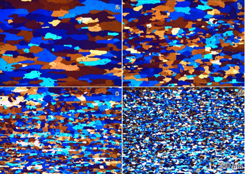 Abstract:Metallographic microscope, electron backscatter diffractometer, transmission electron microscope, scanning electron microscope, X-ray diffractometer, and room-temperature tensile, tearing, and fatigue crack extension experiments were used to investigate the effect of the four final cold-rolling reductions (13%、23%、46%、68%) after intermediate annealing on the grain morphology and damage resistance of the Al-3.9Cu-0.74Li-0.68Mg alloy sheets. The results indicate that with increase in cold-rolling reduction after intermediate annealing, complete recrystallization occurs in the sheets after solid solution treatment, leading to a significant reduction in the average grain size and aspect ratio. The grains tend to become more equiaxed. The primary precipitates in the aged alloy are T1 phase, and the size, number density, and volume fraction of T1 phase show little variation among the four reduction levels. Quantitative calculations of the contributions of different strengthening mechanisms to the yield strength reveal that the strengthening of the alloys with the four reduction levels is mainly attributed to the precipitation strengthening of T1 phase, contributing 335.79?366.54 MPa to the yield strength. With the increase in cold-rolling reduction, the fatigue crack growth rate of the sheets increases, resulting in deteriorated fatigue performance, while the fracture toughness shows an upward trend. Fine grains are beneficial for improving fracture toughness but detrimental to fatigue performance.