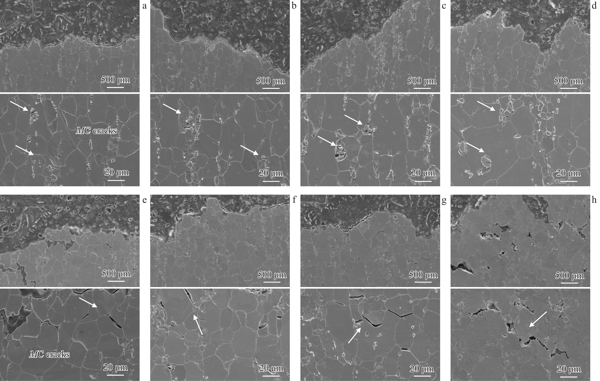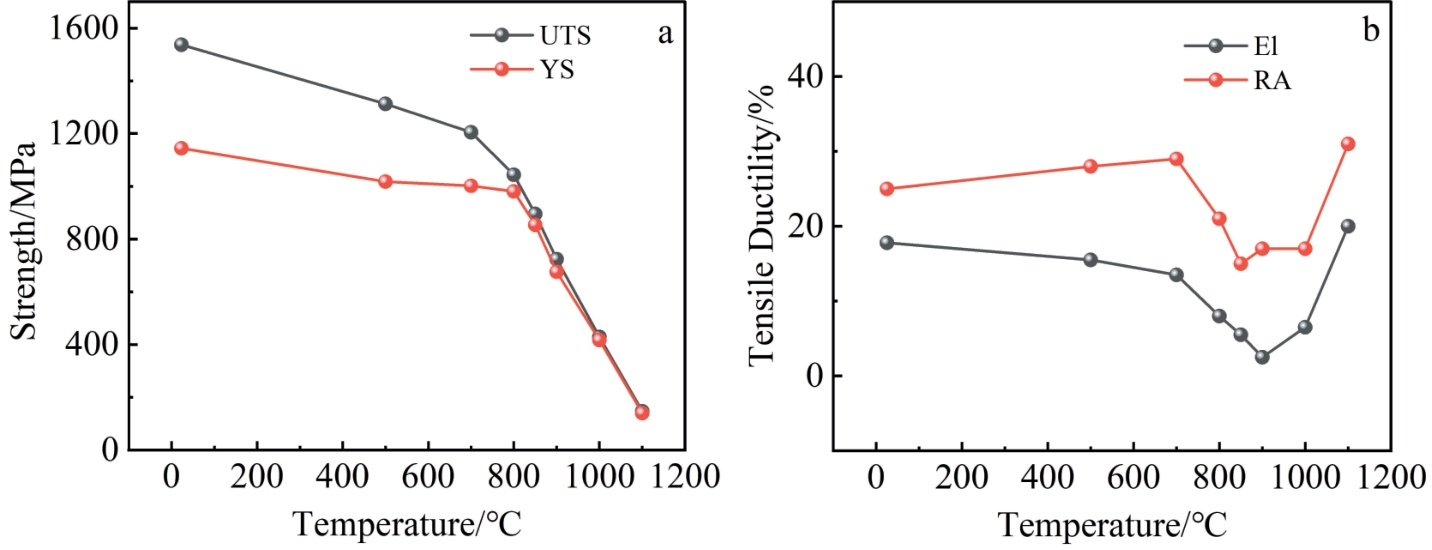 Abstract:Tensile properties, deformation mechanism, and fracture behavior of the GH4975 superalloy were investigated using optical microscope, scanning electron microscope, electron backscatter diffractometer, transmission electron microscope, and other advanced characterization techniques. The results show that the deformation mechanism of the alloy transitions from strong coupling dislocation shear at low temperatures to stacking fault and microtwin formation at intermediate temperatures. At temperatures higher than 850 °C, the dislocation bypass mechanism is activated and gradually dominates the dislocation movement with the increase in temperature. Carbide cracking dominates the failure of the alloy at low temperatures. As the temperature increases, the grain boundary strength decreases. Therefore, grain boundary cracks become the primary crack sources. At temperatures above 800 °C, the reduction in grain boundary strength and the activation of the dislocation bypass mechanism are the primary reasons for the rapid decline in alloy strength.