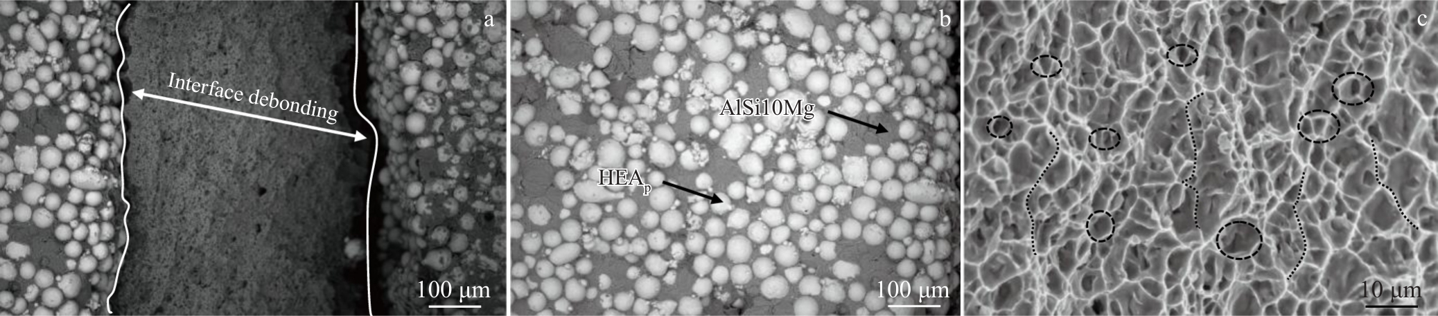 Abstract:Inspired by the nacreous structure of shells, layered HEAP/Al-Al composites with varying framework thicknesses (0.3, 0.4, and 0.5 mm) were fabricated using selective laser melting (SLM) combined with pressure infiltration. The results indicate that the layered composites exhibit an intact internal structure, and a well-bonded interface between the reinforcement phase (HEAP/Al) and the aluminum matrix, without the formation of interfacial reaction products. With increasing framework thickness, the flexural strength of the composites significantly improves, while the compressive strength decreases first and then increases. Additionally, the compressibility is notably enhanced. Among them, the composite with a 0.5 mm framework shows the best overall performance, with a flexural strength of 228 MPa, a compressive strength of 385 MPa, and a compressibility of 20.8%. Three-point bending tests reveal that the layered HEAP/Al-Al composites exhibit a mixed ductile-brittle fracture mode, primarily characterized by the debonding of high-entropy alloy particles and tearing of the aluminum matrix, with the main crack propagating perpendicular to the aluminum framework. An increase in framework thickness leads to longer crack deflection paths, while mechanisms such as multi-crack propagation and microcrack diffusion effectively suppress the propagation of the main crack, thereby enhancing the overall strength and toughness of the composite. Finite element simulation results are consistent with experimental observations, confirming the inhibitory effect of the framework structure on main crack propagation. This study provides theoretical support for the structural design and mechanical performance optimization of heterogeneous composite materials.