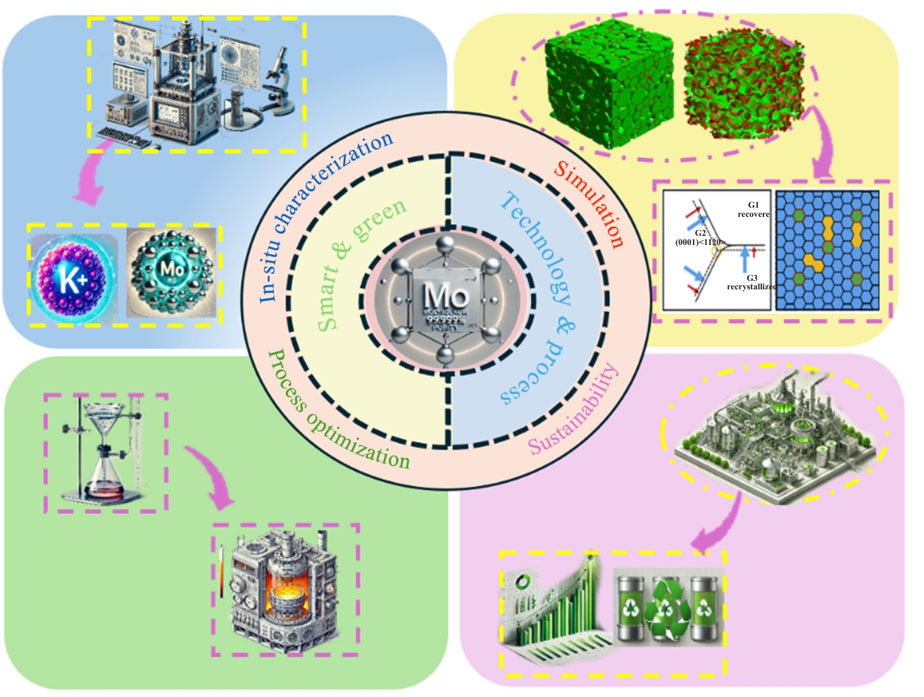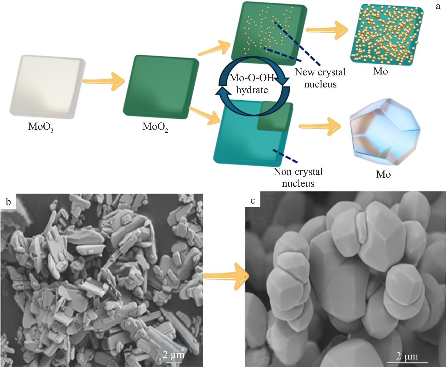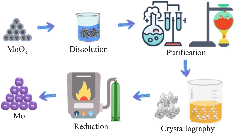 Abstract:High-purity molybdenum powder, owing to its excellent high-temperature mechanical properties, electrical and thermal conductivity, and corrosion resistance, has been widely applied in aerospace, electronic devices, nuclear energy, and powder metallurgy. This paper systematically reviewed the preparation methods of high-purity molybdenum powder, including hydrogen reduction, carbothermal reduction, spray pyrolysis, and low-temperature molten salt-assisted reduction. The effects of different preparation techniques on the purity, particle size distribution, morphological evolution, and sintering performance of molybdenum powder were analyzed. Among existing methods, hydrogen reduction is extensively applied, and research suggests that tuning reduction conditions can significantly influence impurity removal and morphological consistency. Additionally, emerging techniques, such as spray pyrolysis and low-temperature molten salt-assisted reduction, exhibit promising potential in particle size control, spheroidization, and nanostructuring, thereby enhancing powder flowability and sintering densification. Future research should further optimize precursor selection and process parameters to enhance the purity, particle size uniformity, and morphological control of molybdenum powder, meeting the growing demand for high-performance molybdenum materials in advanced manufacturing.