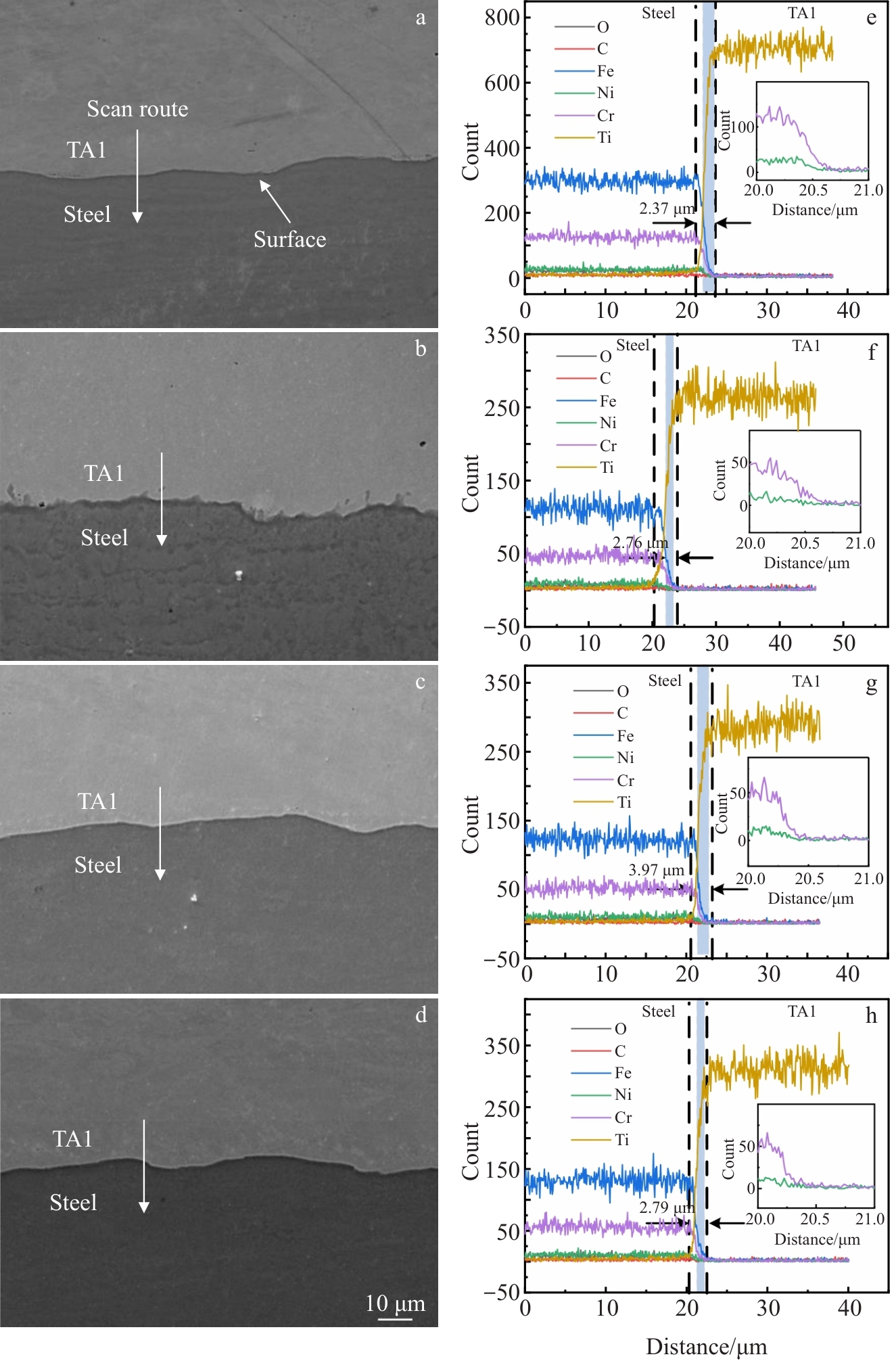 Abstract:Underwater local dry laser cladding (ULDLC) is a key technique for in-situ repair of nuclear power equipment. In this study, an underwater laser remelting technique was proposed to further enhance the wear resistance of duplex stainless steel (DSS) coatings prepared by ULDLC. The effects of laser remelting heat input on the microstructure and wear resistance of DSS coating prepared by ULDLC were investigated. Results indicate that the microstructure of DSS coatings consists of Widmanst?tten austenite (WA), intergranular austenite (IGA), grain boundary austenite, secondary austenite (γ2), and ferrite. With the increase in laser remelting heat input, the content of IGA and WA gradually decreases, while the ferrite content increases. After laser remelting, γ2 is eliminated and the grain morphology of ferrite is transformed from flaky to equiaxed. Under optimal laser remelting parameters (a laser power of 3 kW, a laser spot diameter of 6 mm, and a laser scanning speed of 10 mm/s), the microhardness of remelted zone is 318.7 HV, which is increased by 25.7 HV, the friction coefficient decreases by 32%, and the wear volume is reduced by 55%. The significantly improved wear resistance is attributed to the synergistic effects of surface oxide-layer formation and ferrite grain refinement.