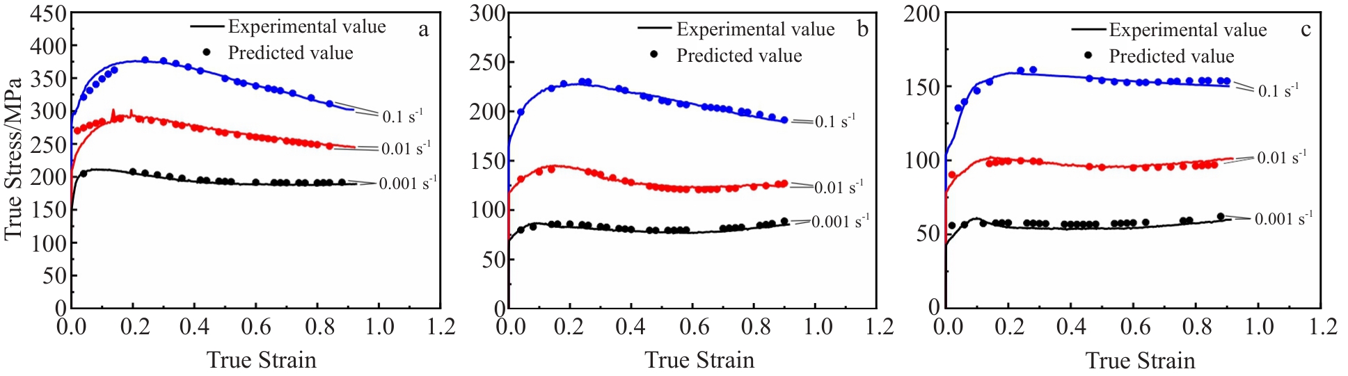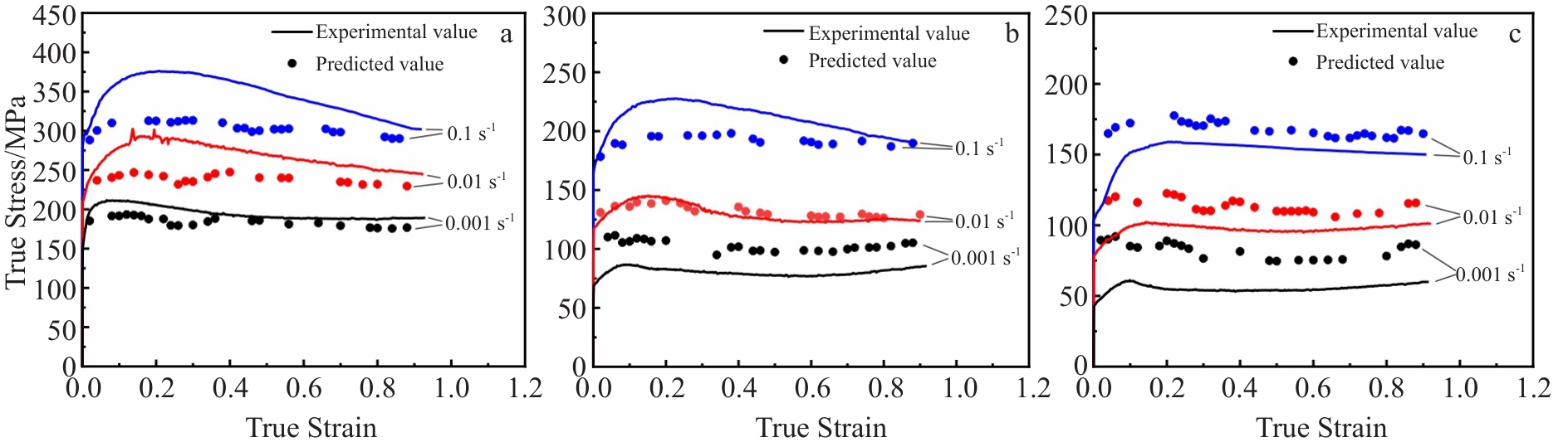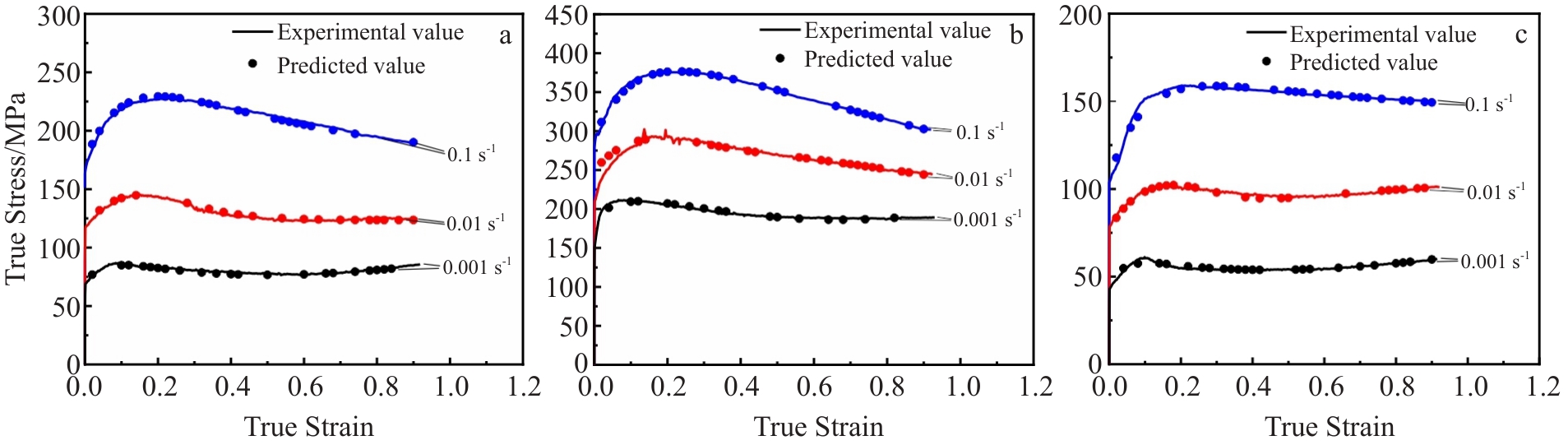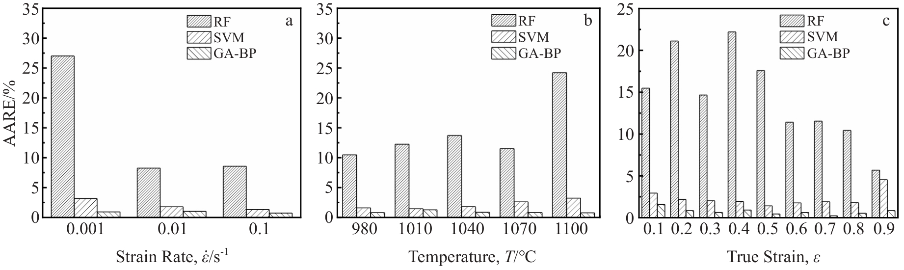 Abstract:Hot compression experiments were conducted on GH738 superalloy using Gleeble 3500 thermal simulation machine at deformation temperature of 980–1100 °C and strain rate of 0.001–0.1 s-1 to study the flow stress behavior of the alloy. Three machine learning algorithms, namely random forest (RF), support vector machine (SVM), and genetic algorithm-back propagation (GA-BP) neural networks, were employed to establish constitutive relationship models for the flow stress behavior of GH738 superalloy. Subsequently, these models were compared and analyzed in terms of their predictive accuracy. The results indicate that the flow stress of GH738 superalloy decreases with the increase in deformation temperature and the decrease in strain rate. The correlation coefficients for the RF, SVM, and GA-BP constitutive relationship models are determined as 0.921, 0.998, and 0.999, while the average absolute relative errors as 14.587%, 2.112%, and 0.901%, respectively. The results demonstrate that SVM and GA-BP constitutive relationship models have better prediction accuracy than RF model in predicting the flow stress behavior of GH738 superalloy. It can provide a theoretical basis for the calculation of deformation resistance and forging tonnage under different deformation conditions, and it can also provide reliable flow stress data for numerical simulation of forging process.