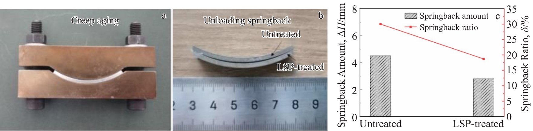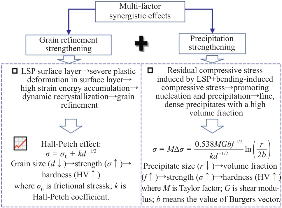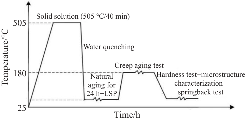Abstract:Hardness testing, microstructural characterization, and creep aging forming experiments were conducted to investigate the impact of laser shock peening (LSP) treatment on the creep aging behavior of 2195 Al-Li alloy and to evaluate its effect on the springback of single-curved components formed through creep aging. The results indicate that, compared to the creep-aged alloy without LSP treatment, the hardness of the creep-aged alloy with LSP treatment is increased by approximately 22%. Grain size is notably reduced from the surface to the middle layer of the plate, with the greatest decrement in surface layer (49 μm) and the least in the middle layer (4 μm). The T1 precipitate phase in the creep-aged alloy with LSP treatment exhibits a denser distribution, greater quantity, and finer grain size, compared with that without LSP treatment. Furthermore, the springback ratio of creep-aged sheets subjected to LSP treatment is significantly lower than that of untreated sheets, decreasing by about 37.6%. The enhancement in hardness is attributed to fine grain strengthening and substantial precipitation strengthening induced by LSP. The reduction in springback is ascribed to the increased creep deformation resulting from the combined effect of the compressive stress on the concave surface of the plate during bending and the residual compressive stress generated by LSP treatment.